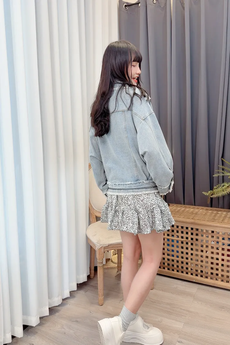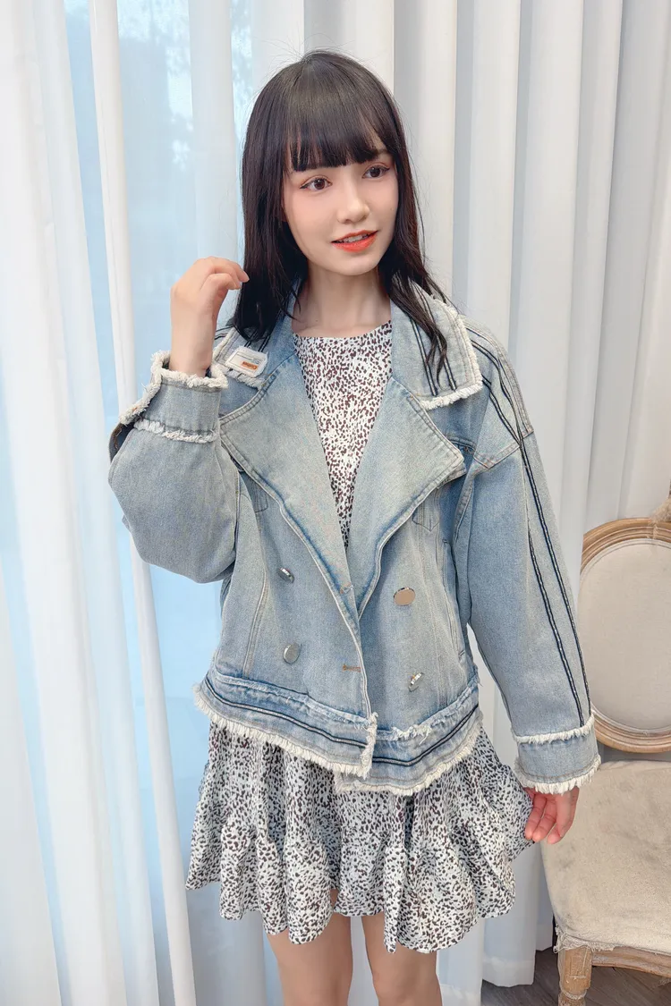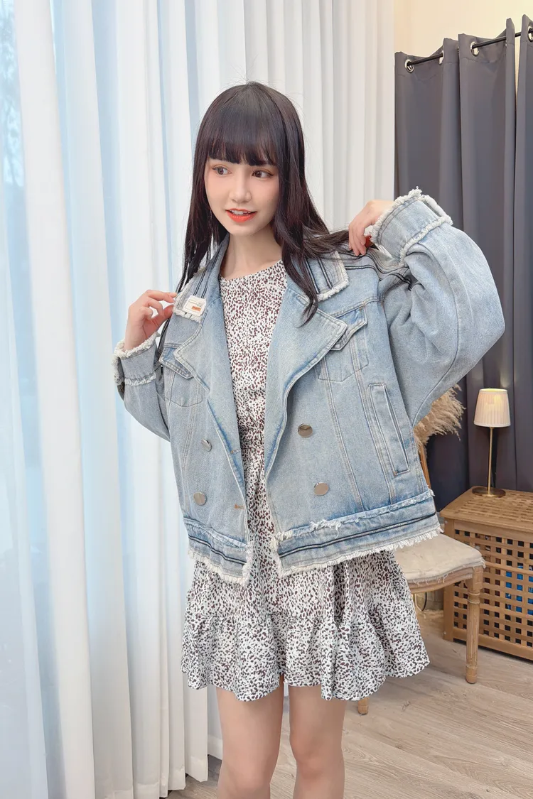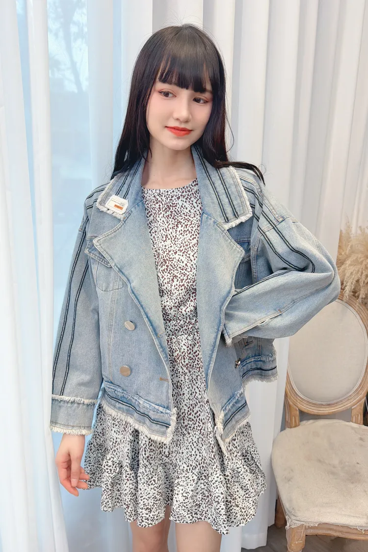滾線條毛邊牛仔外套/1色