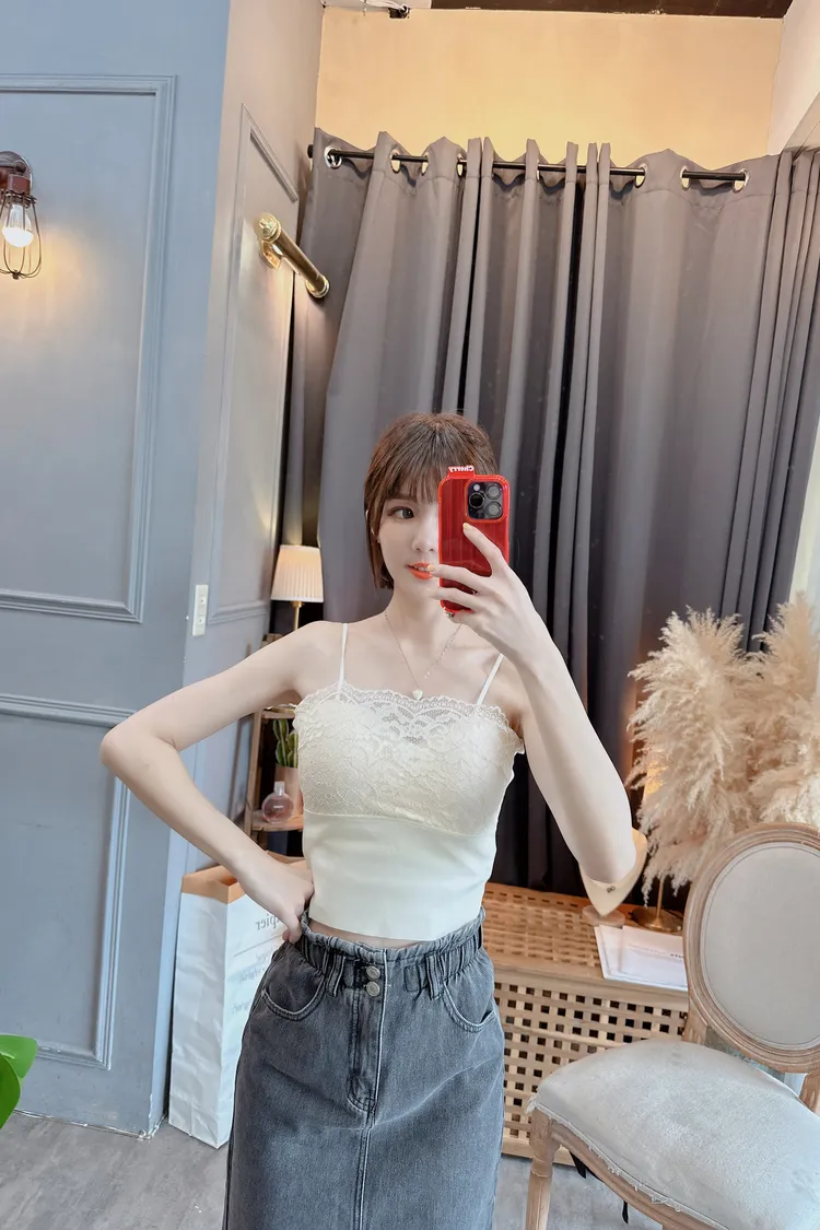 胸滾蕾絲罩杯背心/2色