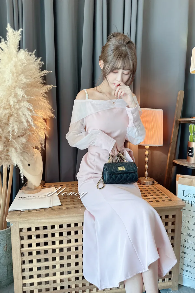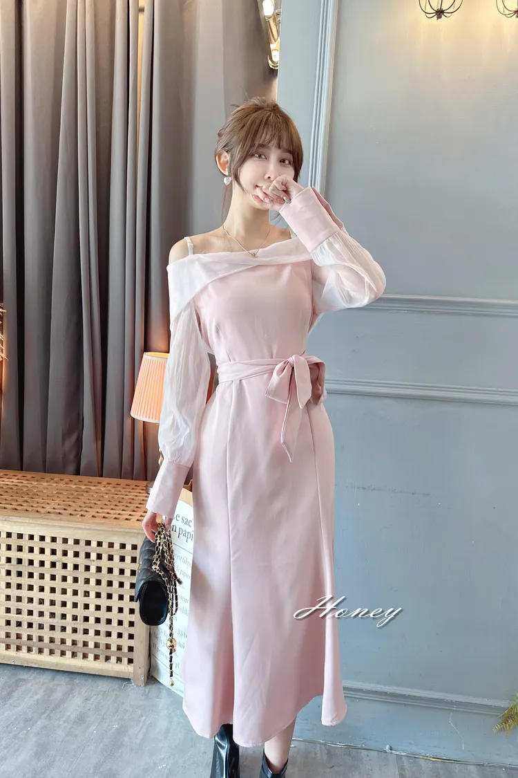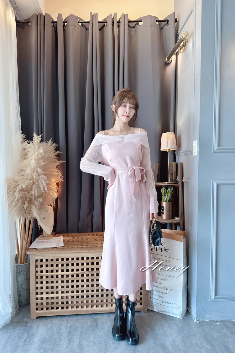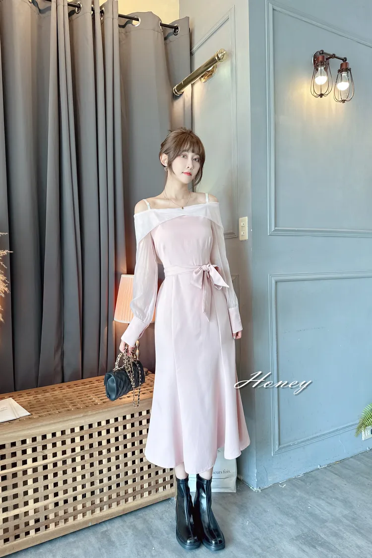 下翻領綁帶魚尾洋裝/2色