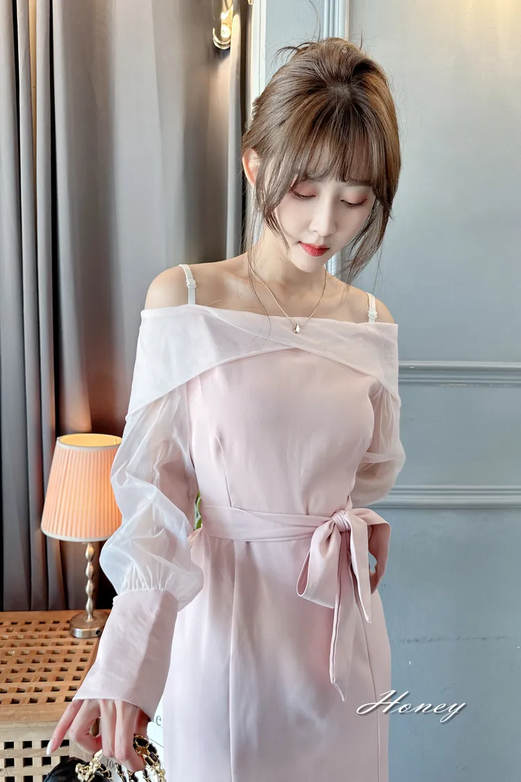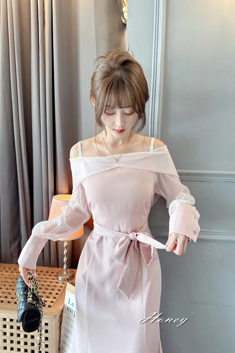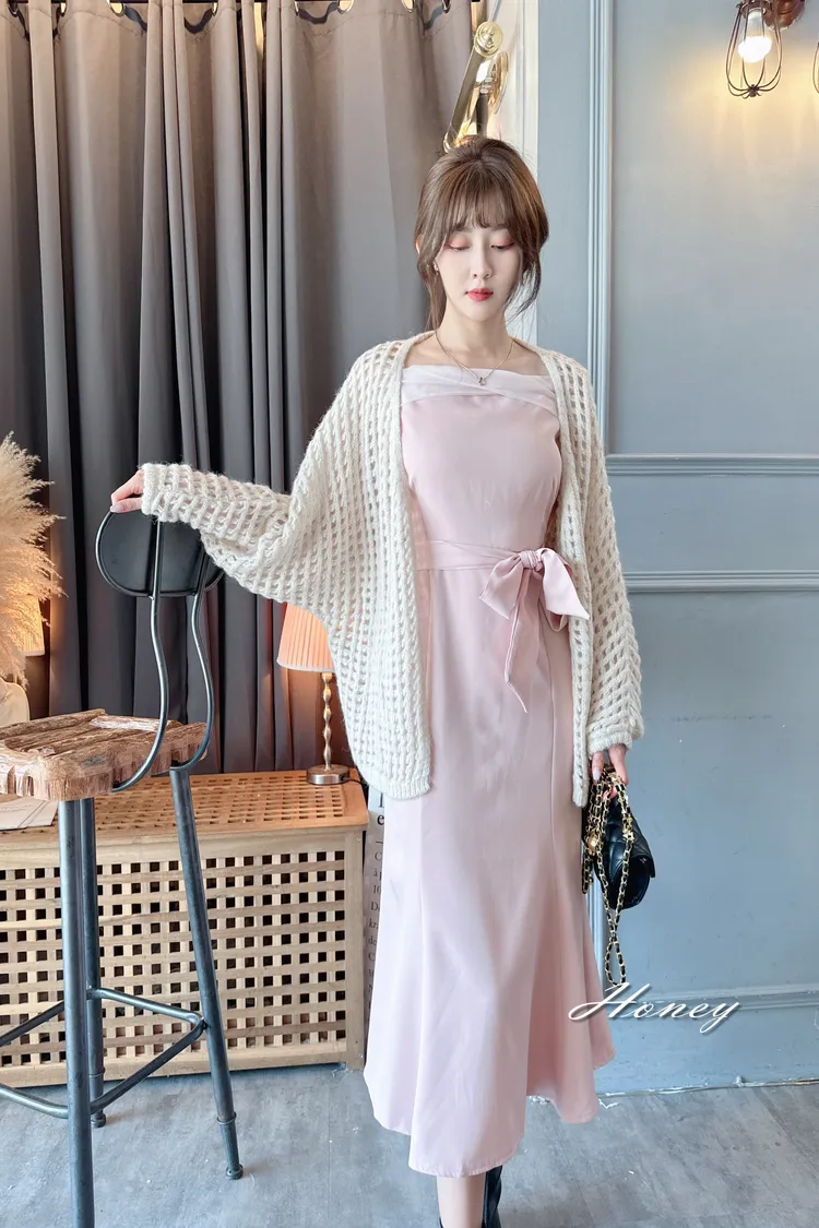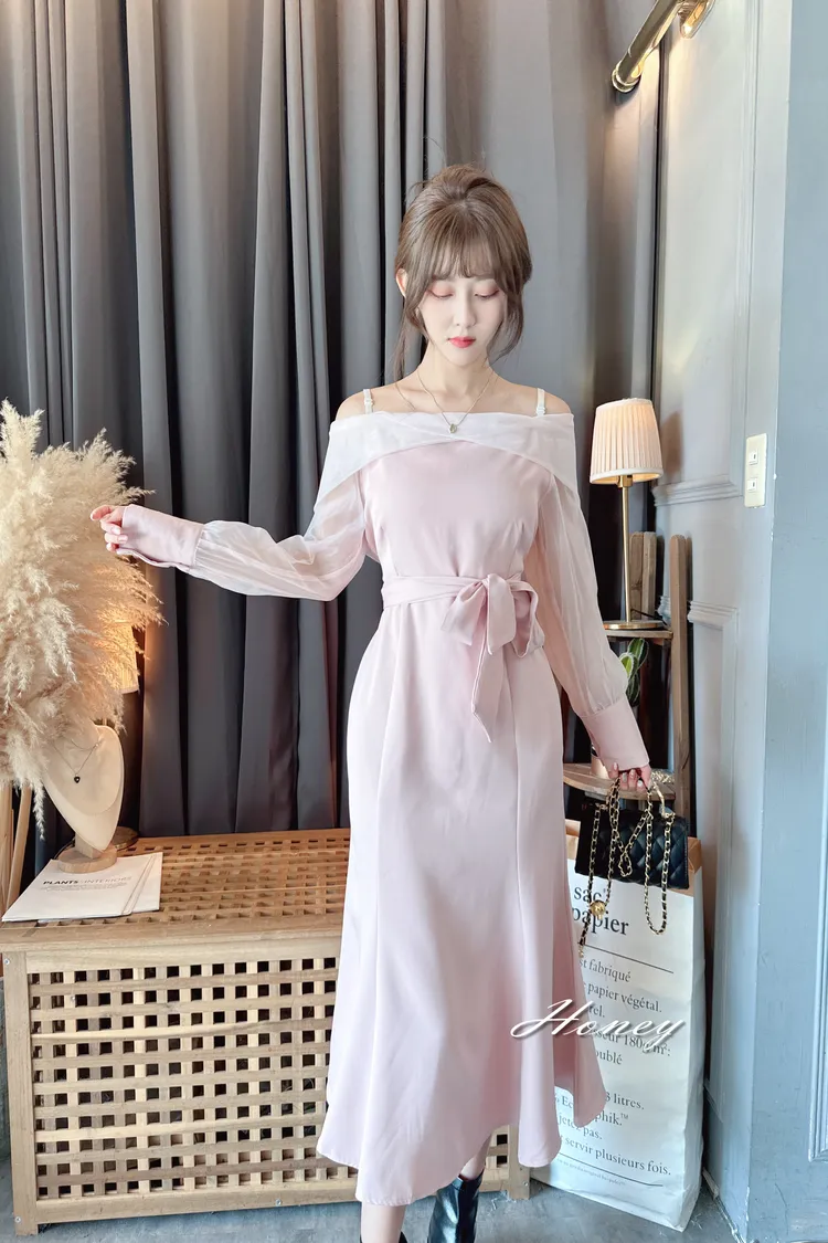 下翻領綁帶魚尾洋裝/2色