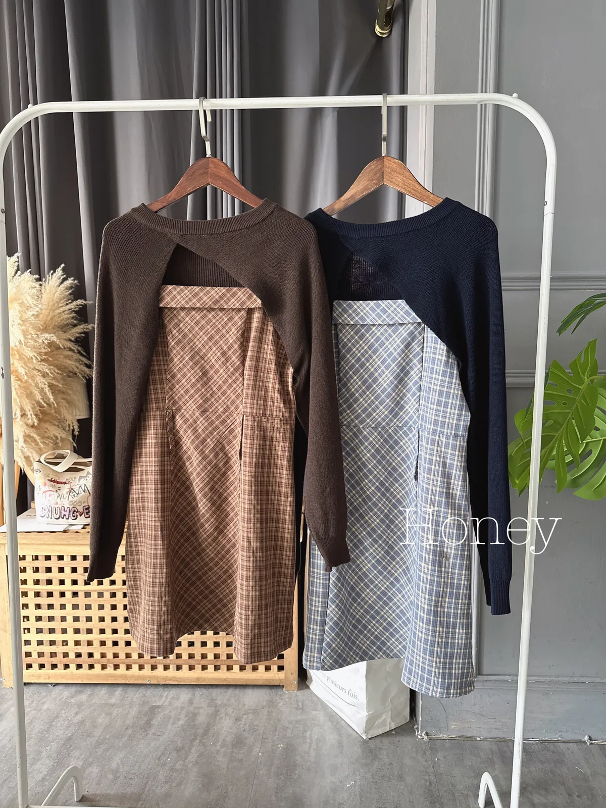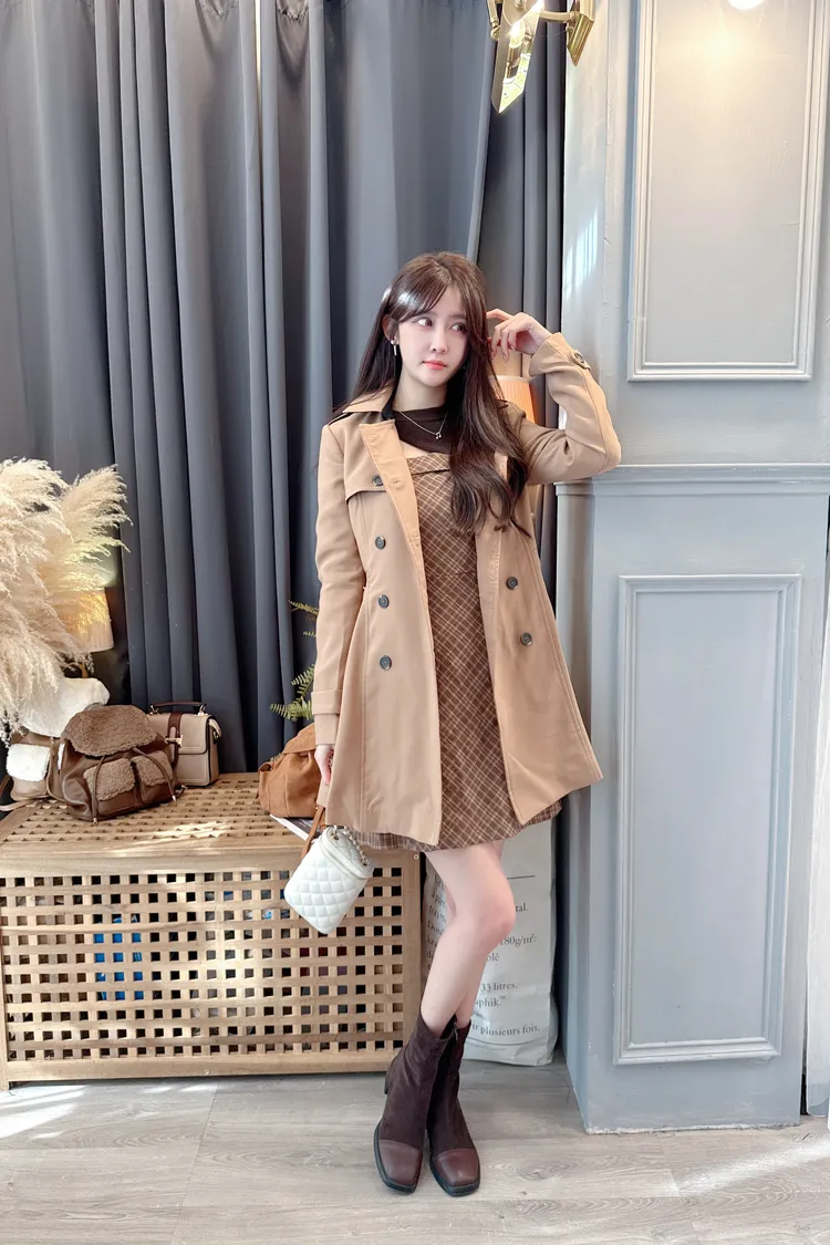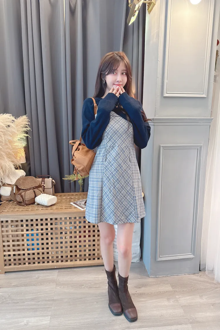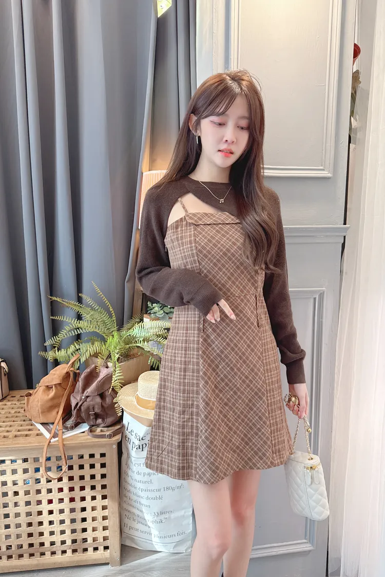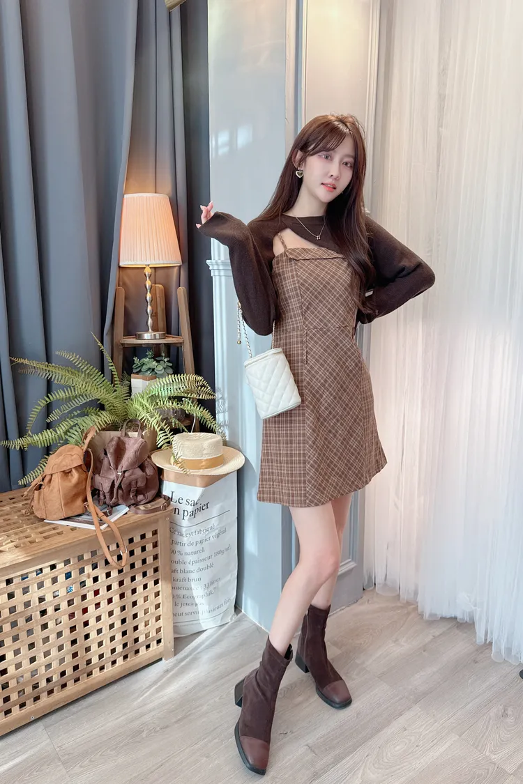 短版罩衫加格紋短洋套裝組/2色