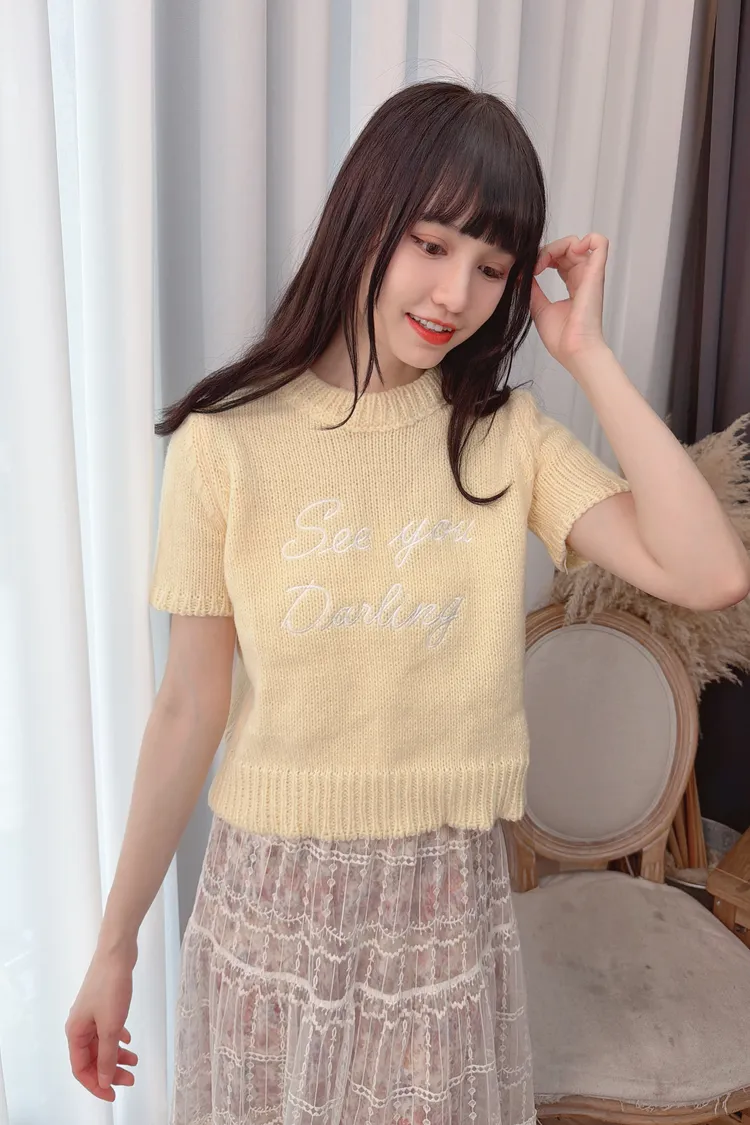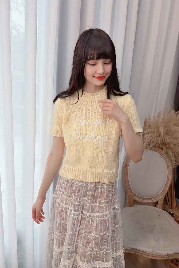 草寫字母針織上衣/1色