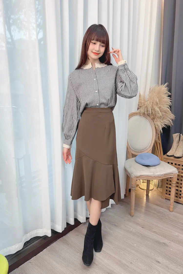 下擺雙層魚尾造型裙/1色