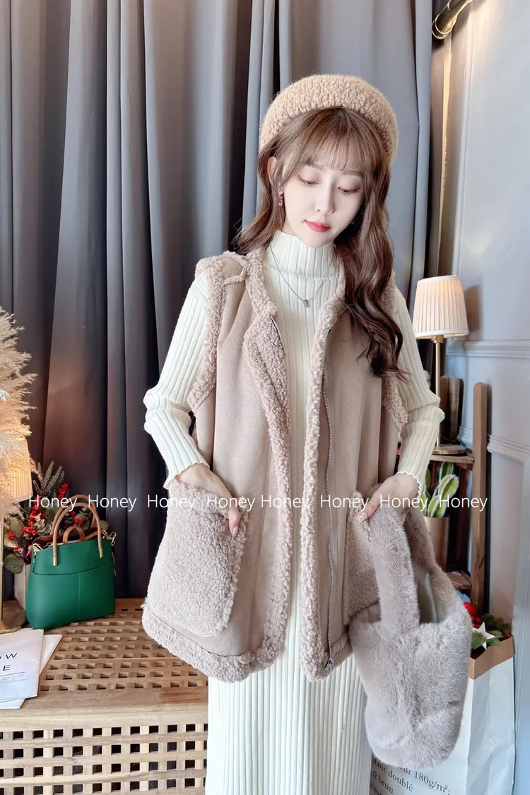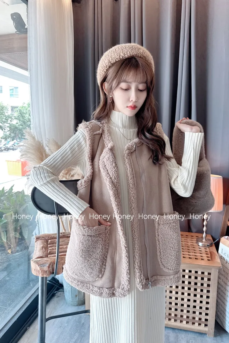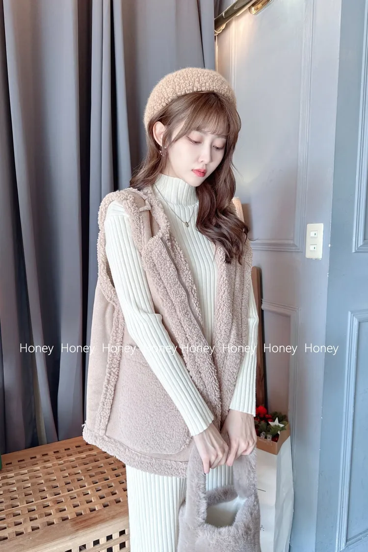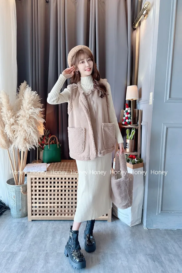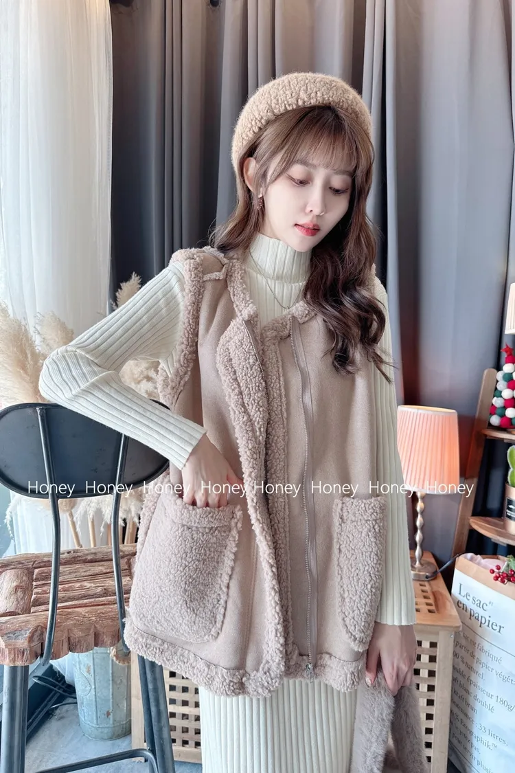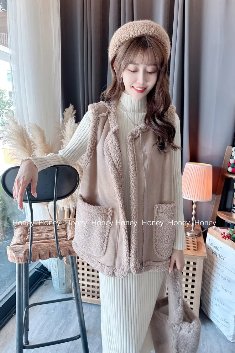 內裡毛毛麂皮背心/1色