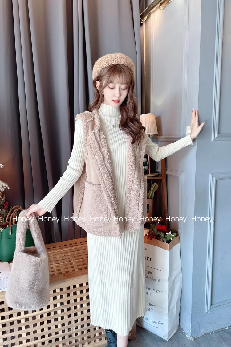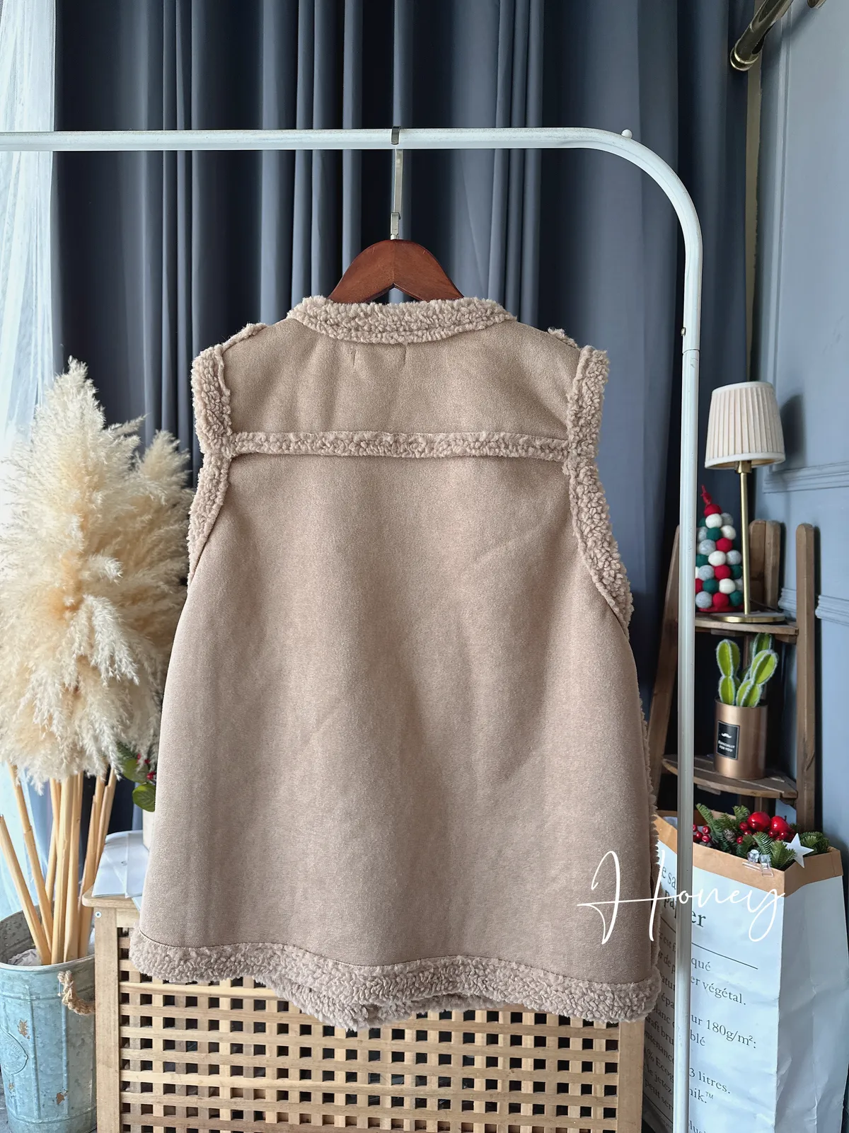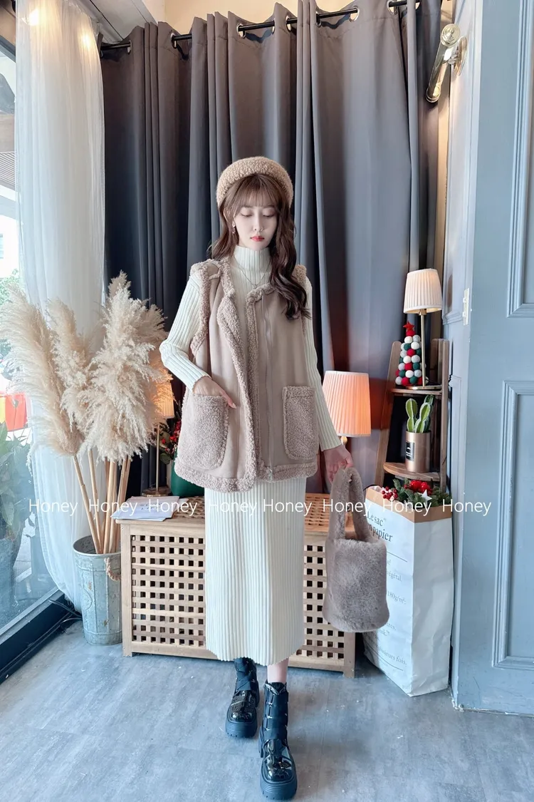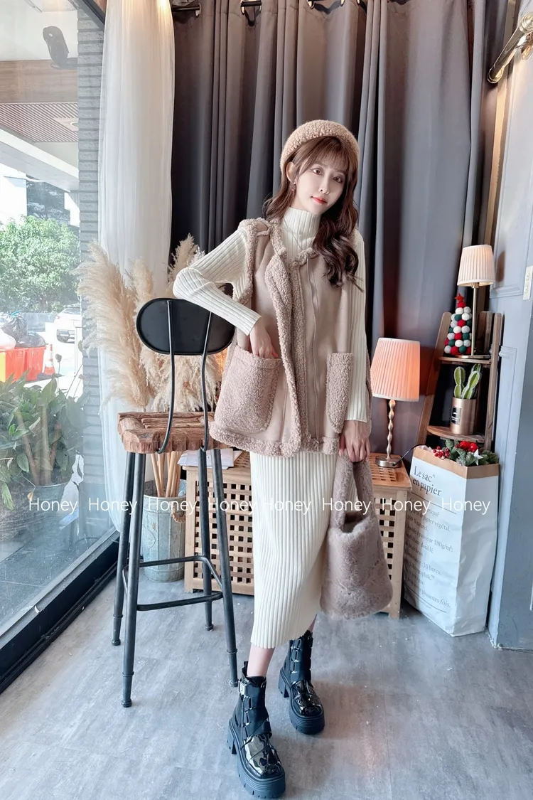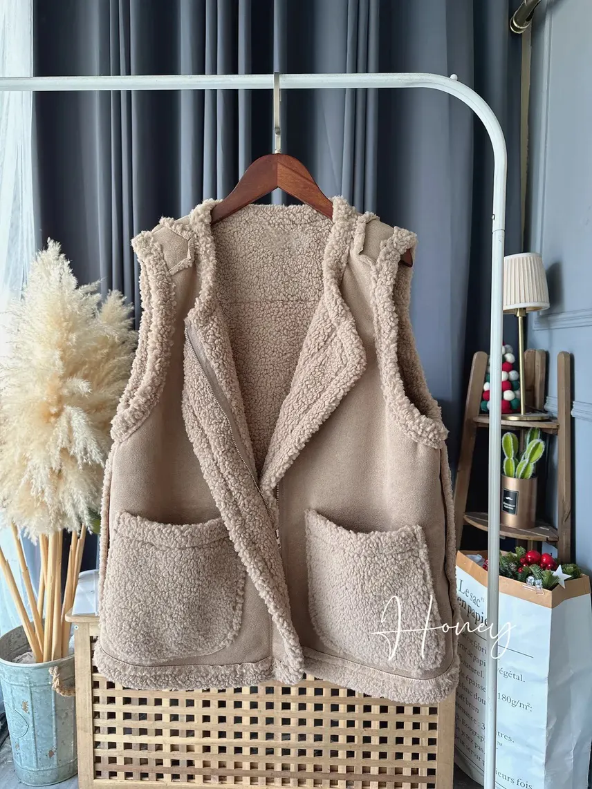 內裡毛毛麂皮背心/1色