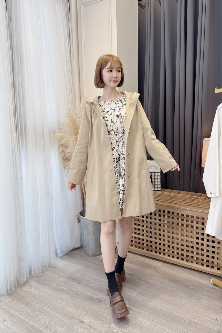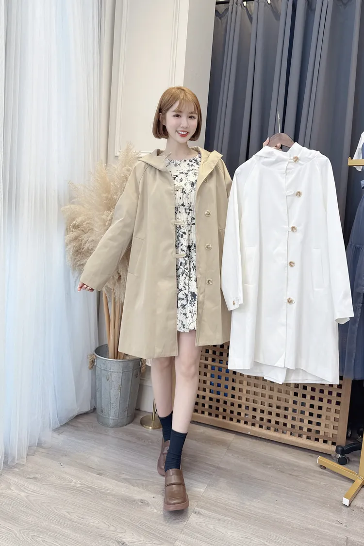 Q版長版連帽風衣外套/2色