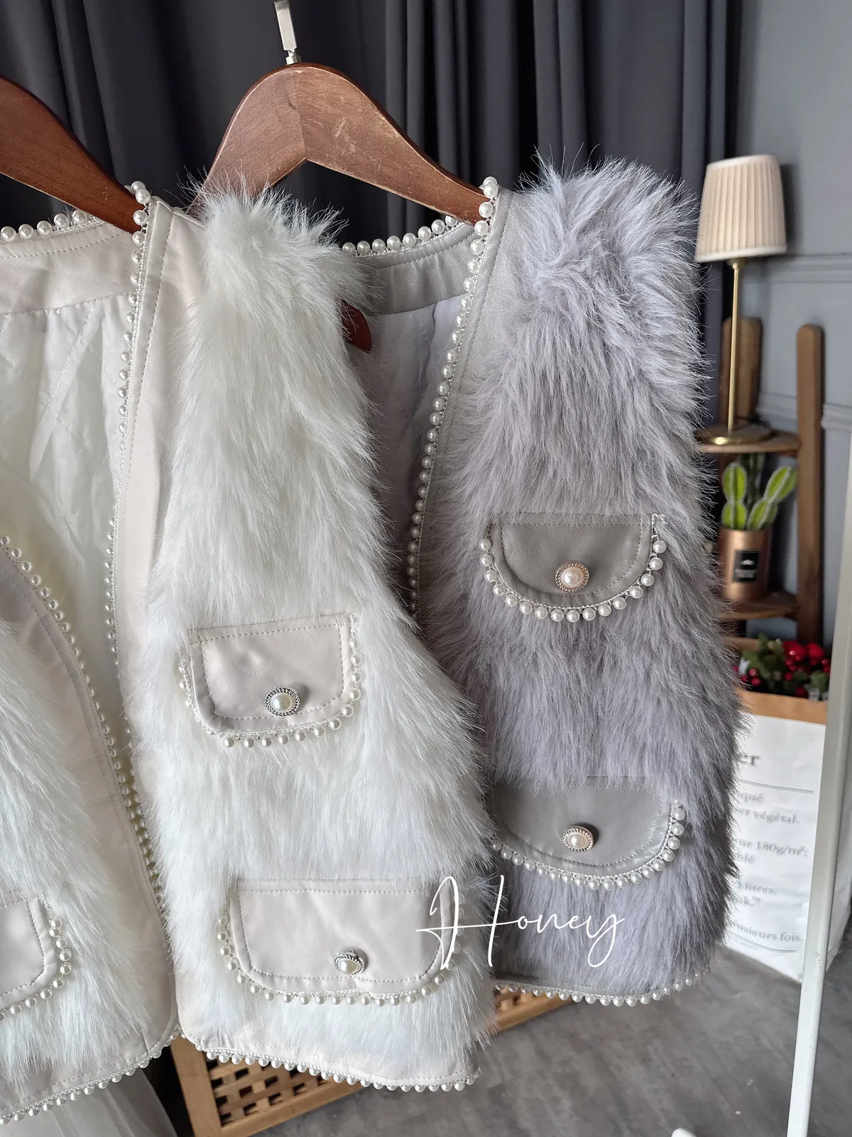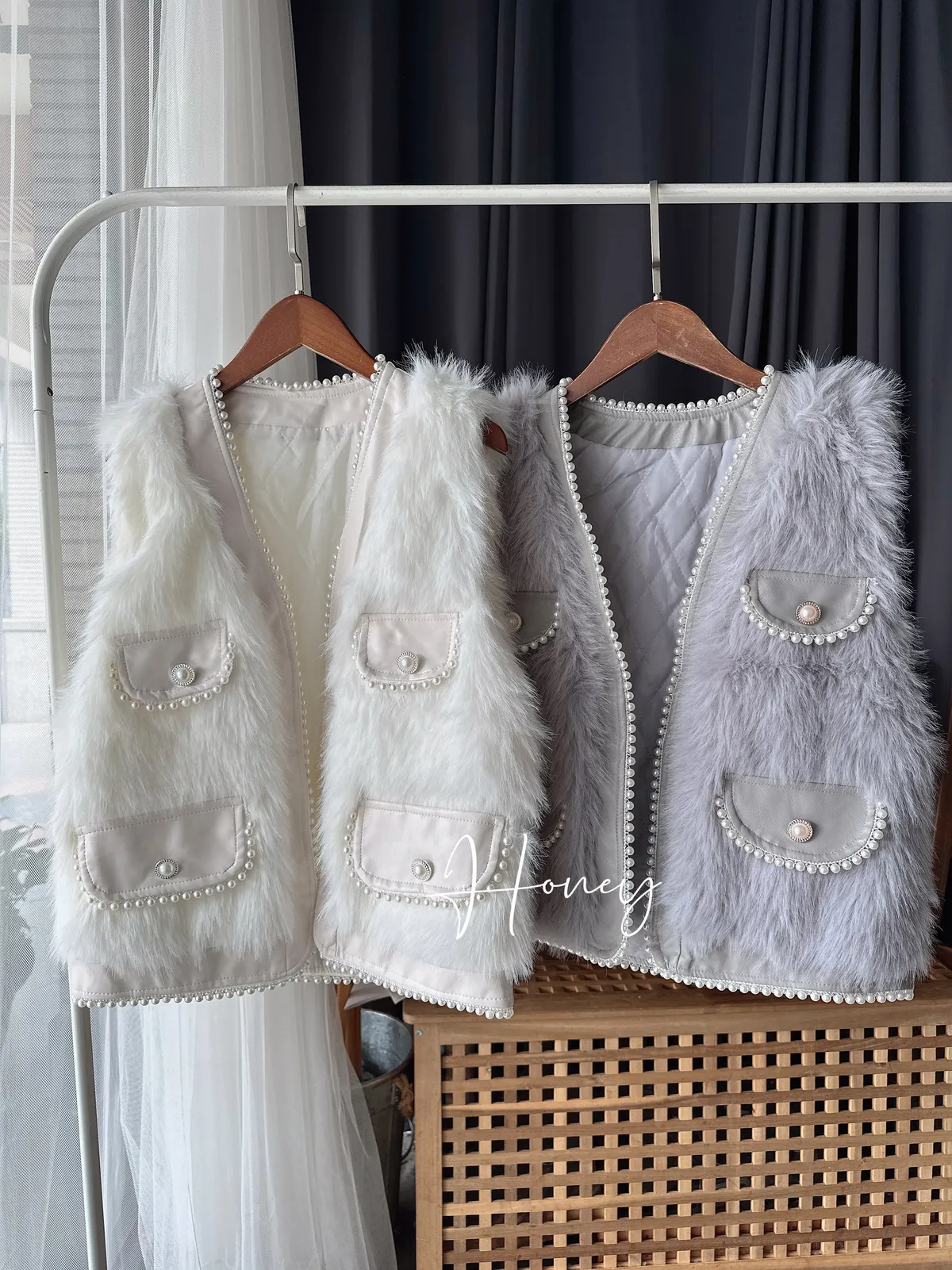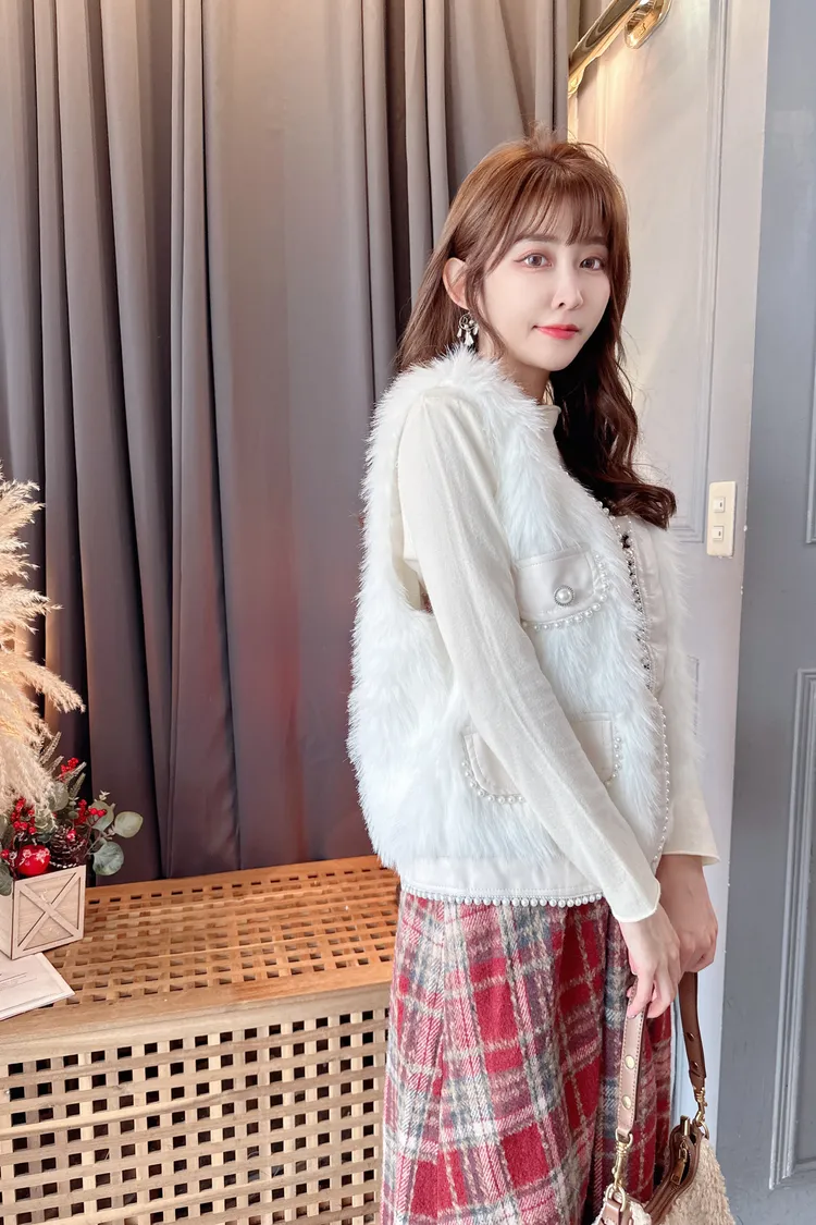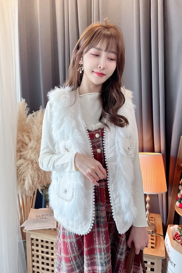 滾珍珠邊毛毛背心/2色