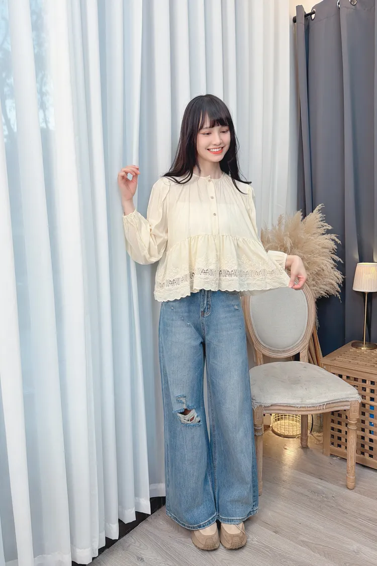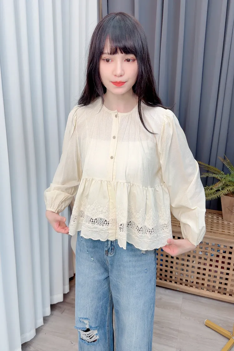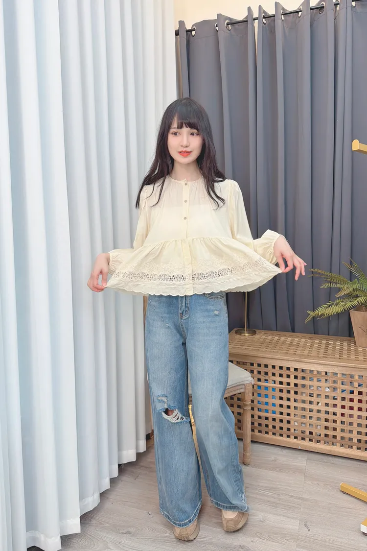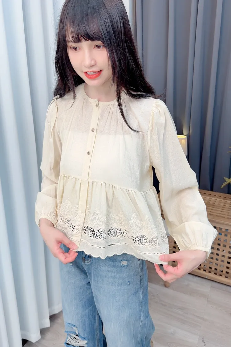 可愛布蕾絲短版上衣/1色