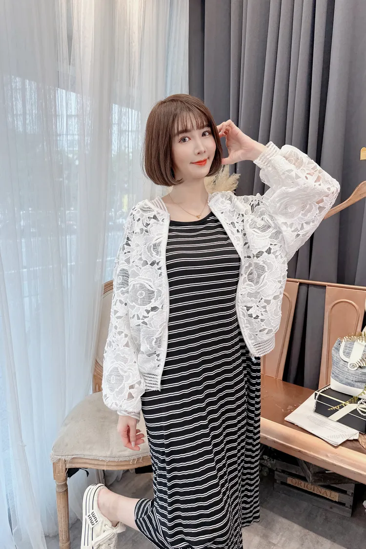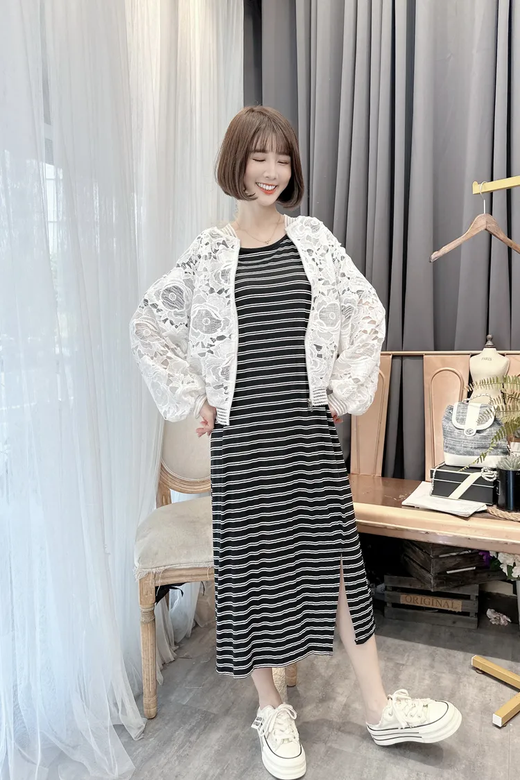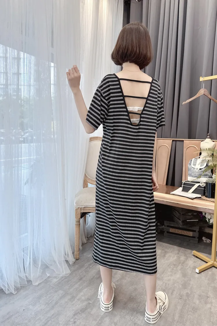 背鏤空造型條紋洋裝/1色
