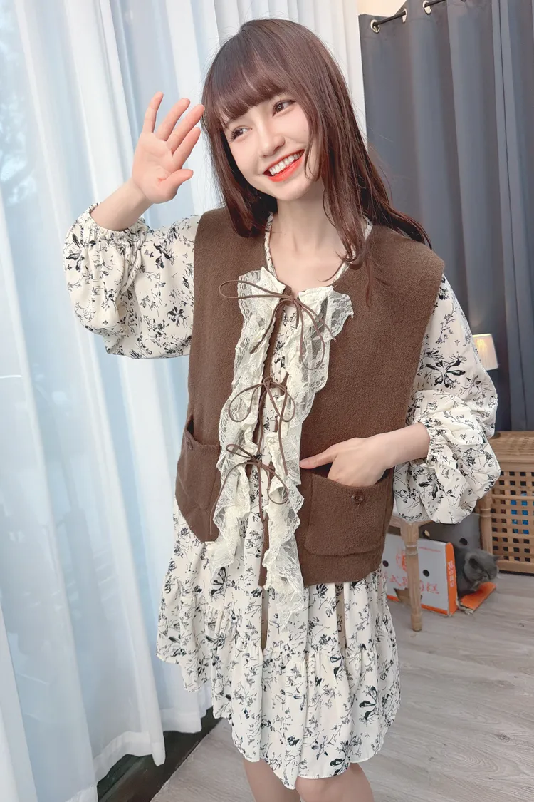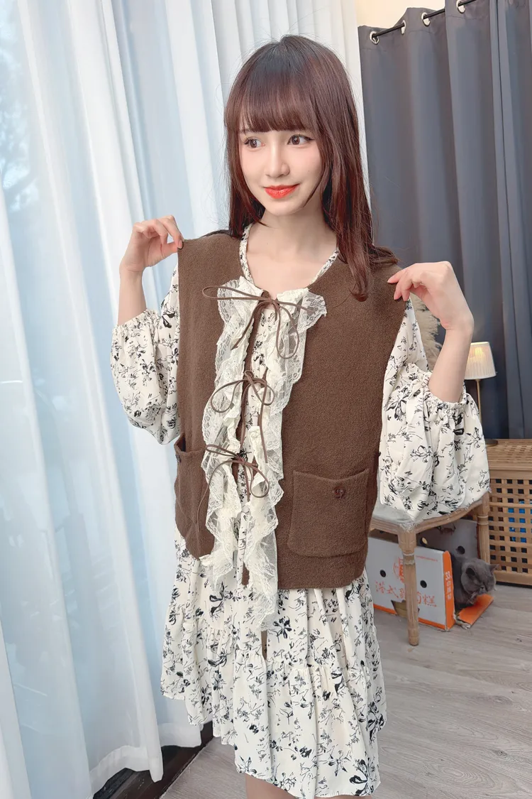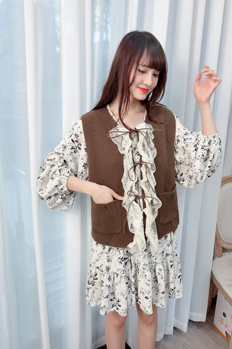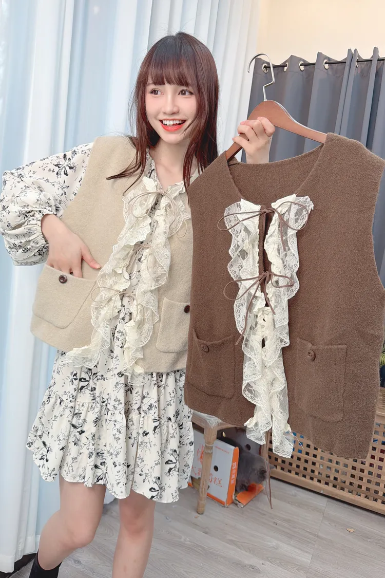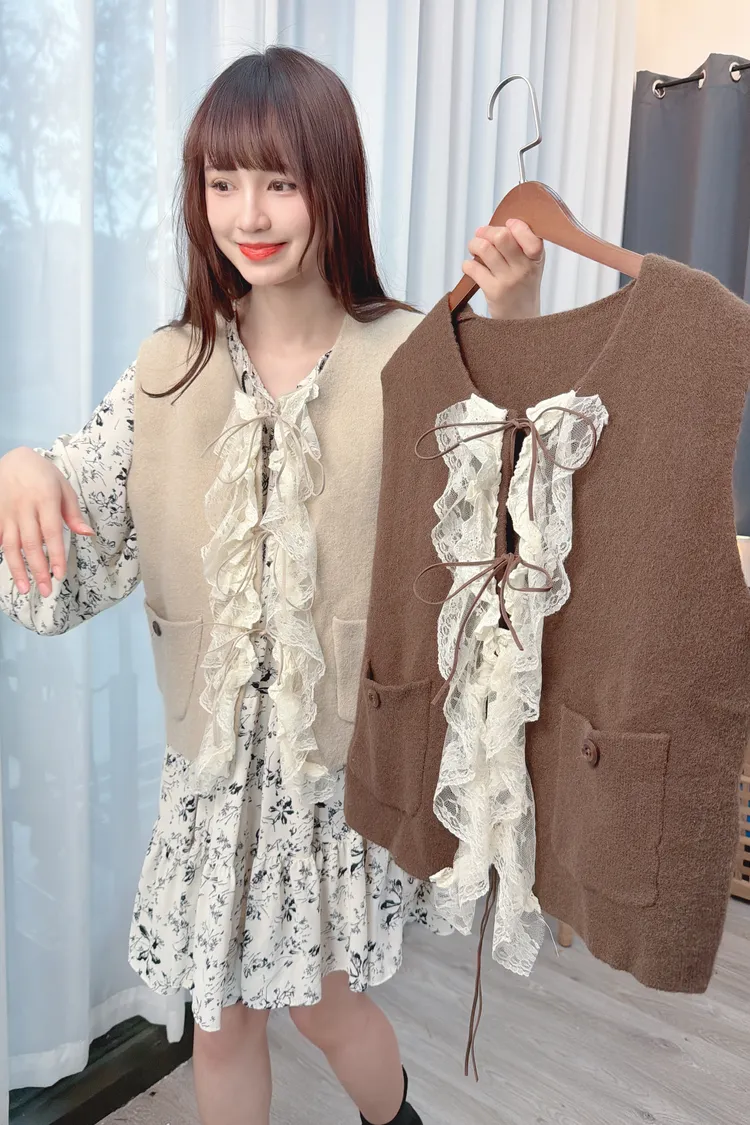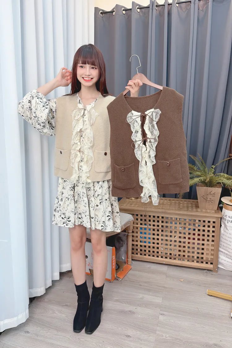 荷葉裝飾針織背心/2色