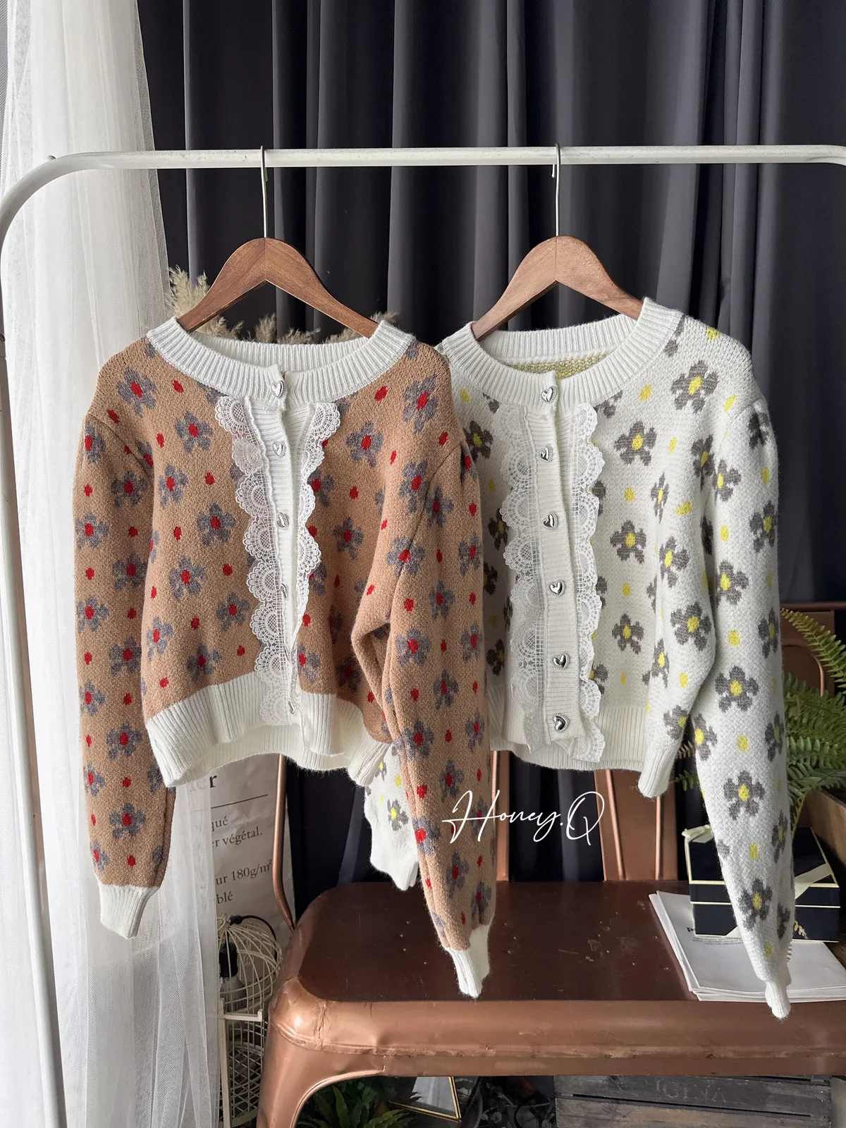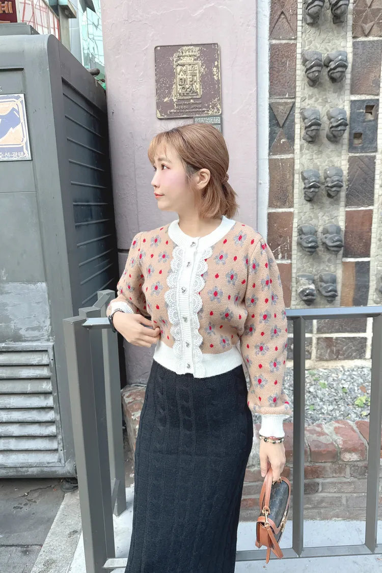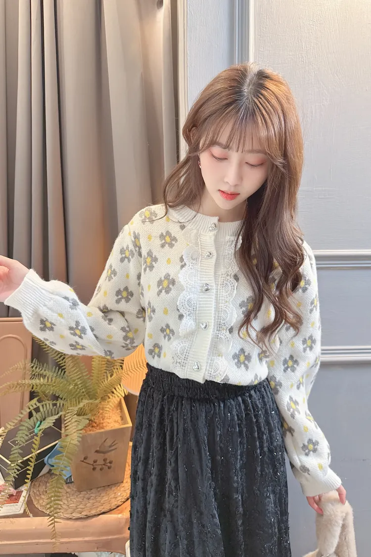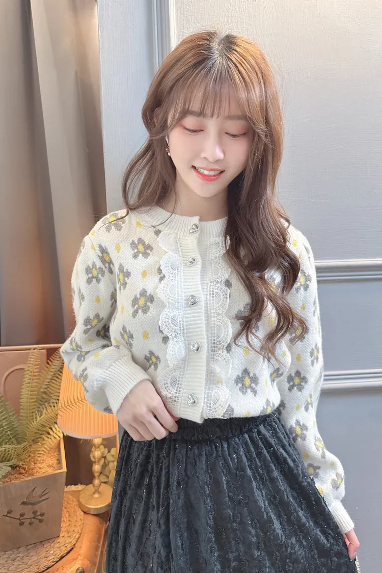 配色花朵蕾絲針織上衣外套/2色