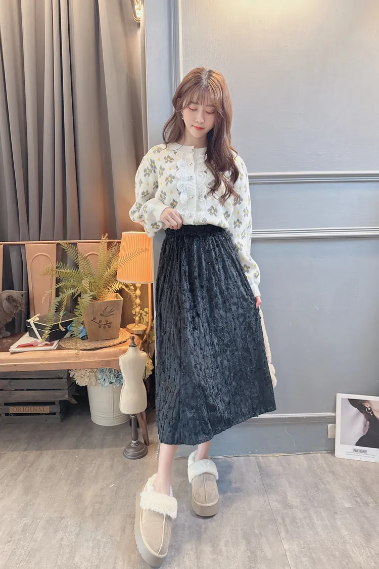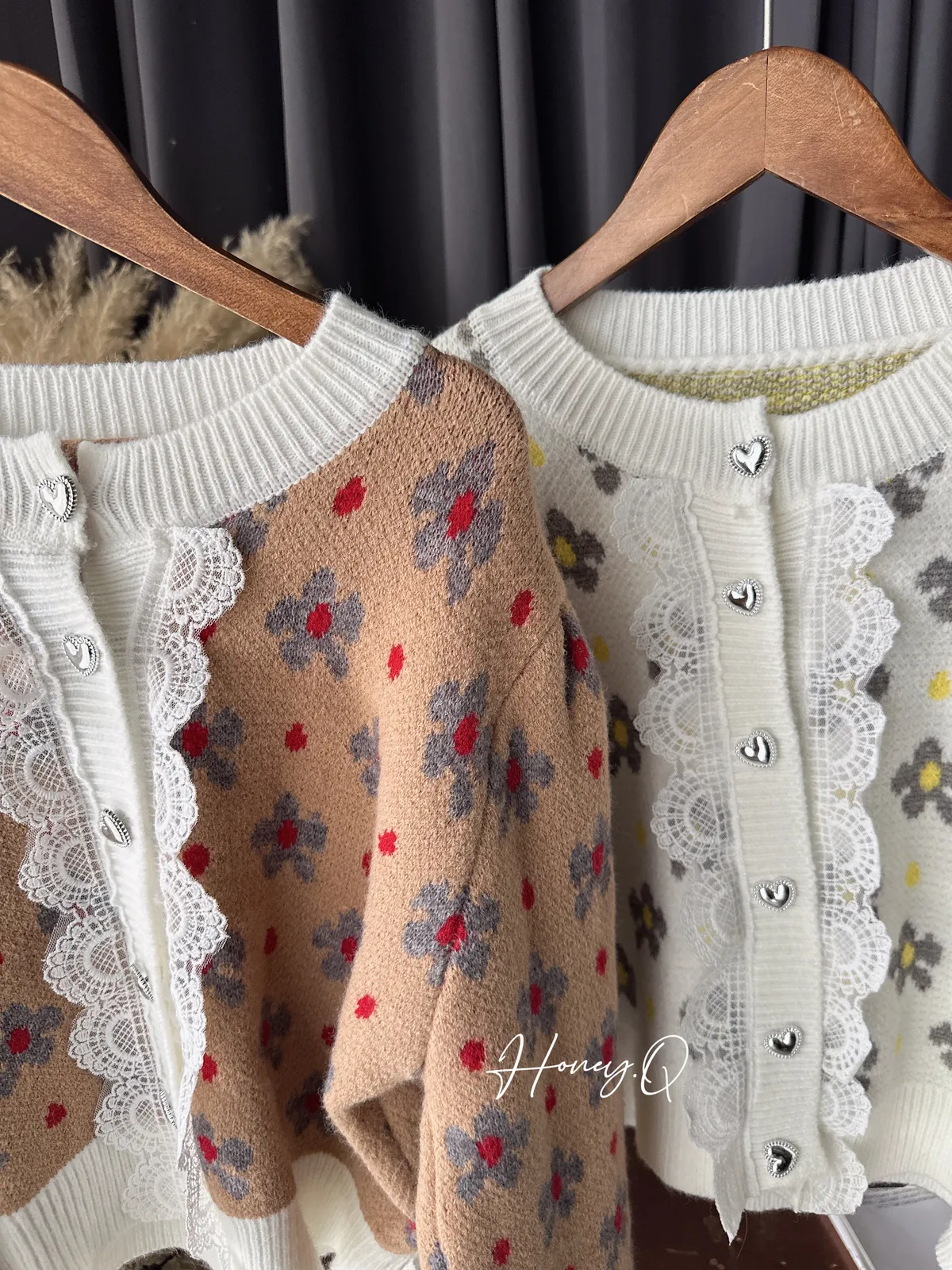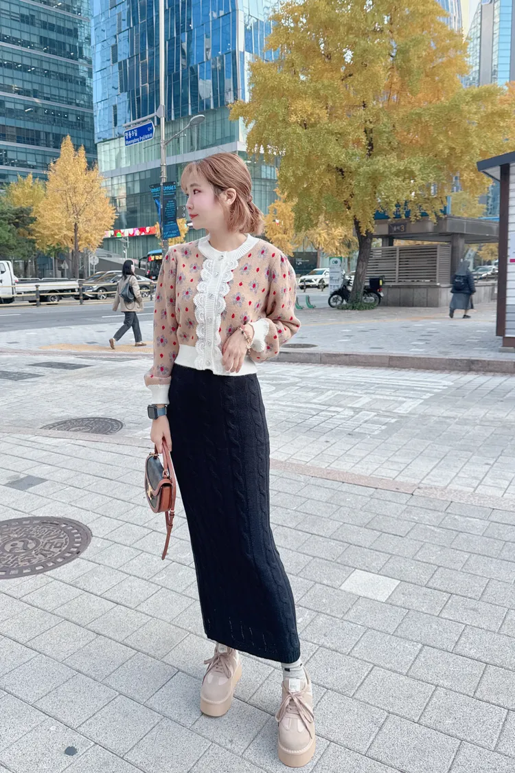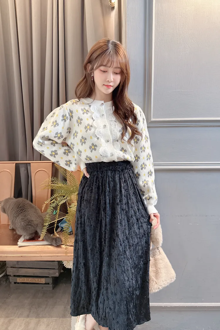 配色花朵蕾絲針織上衣外套/2色