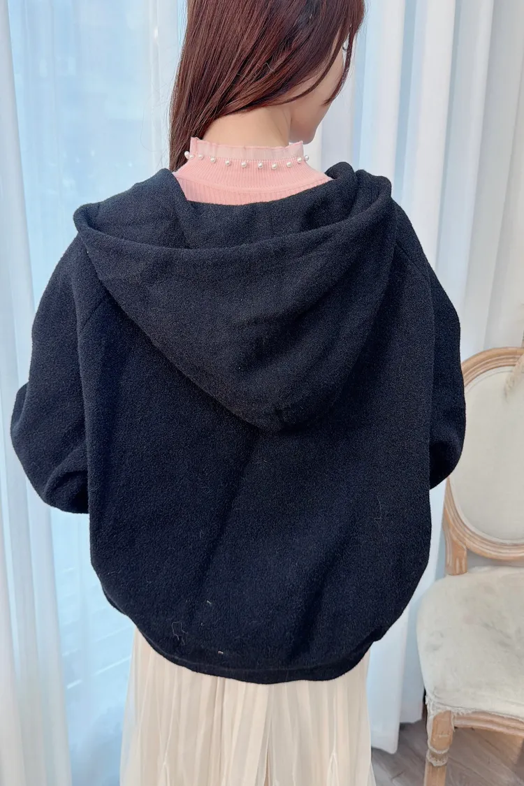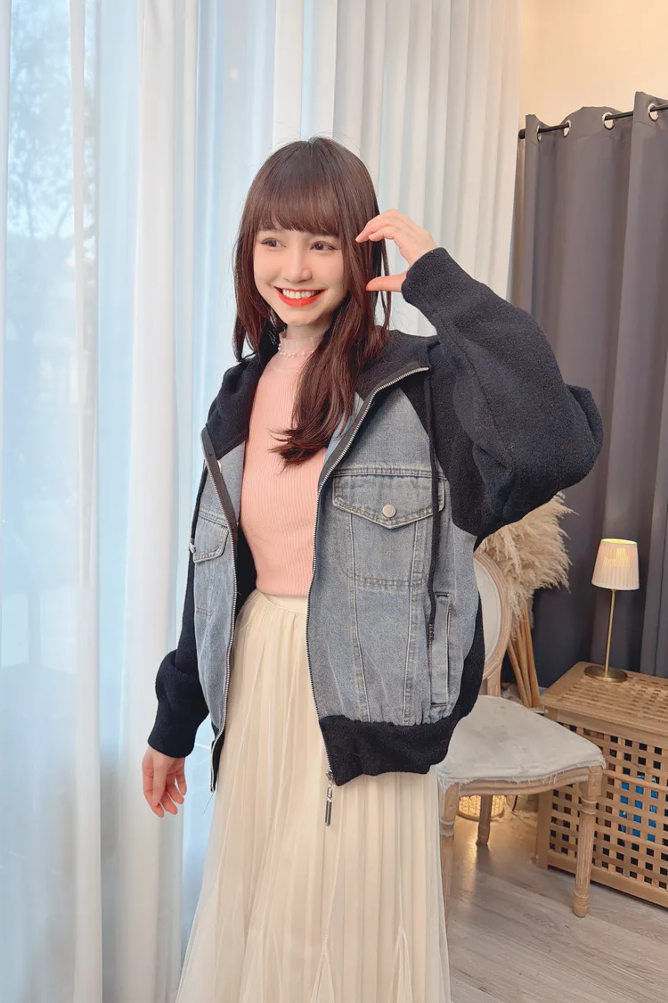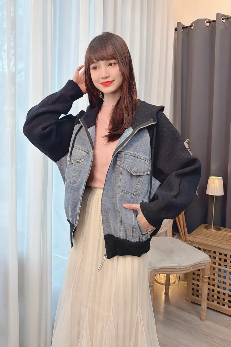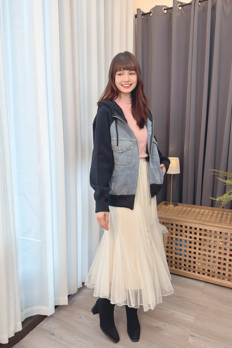 牛仔拼接連帽針織外套上衣/1色