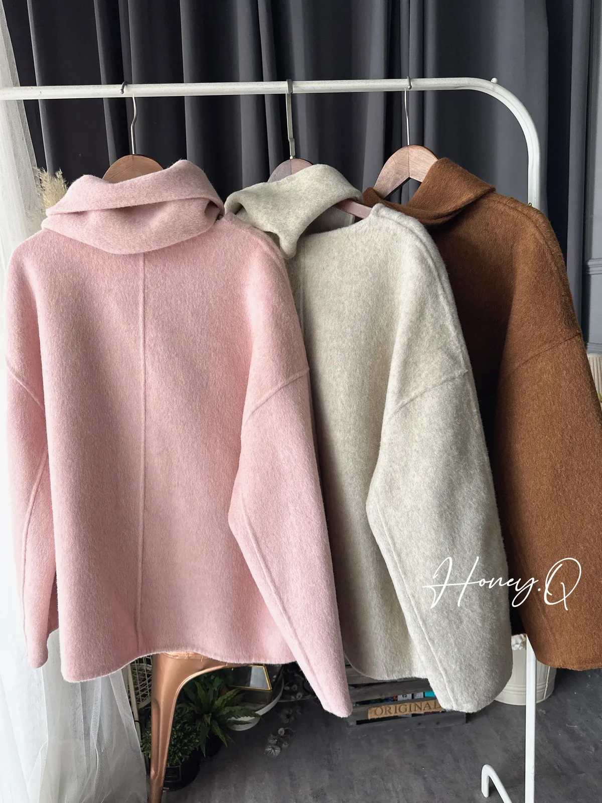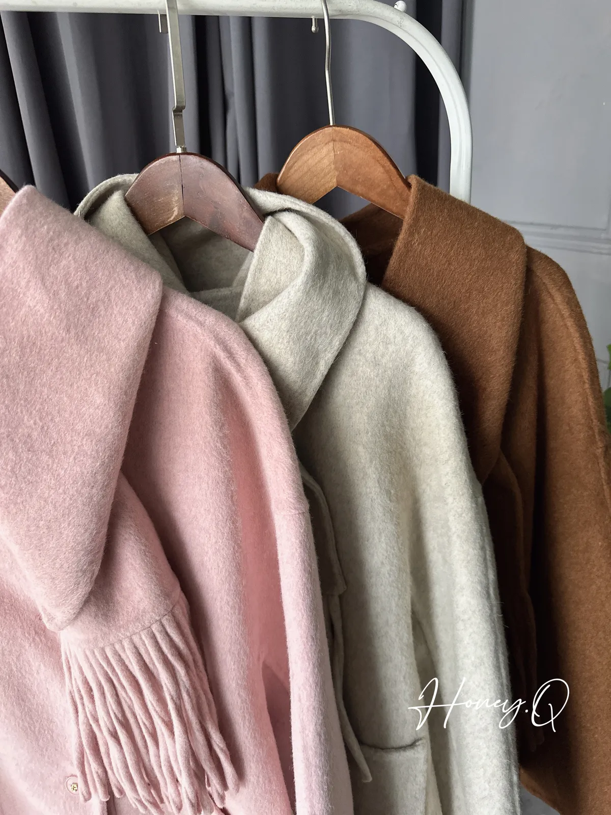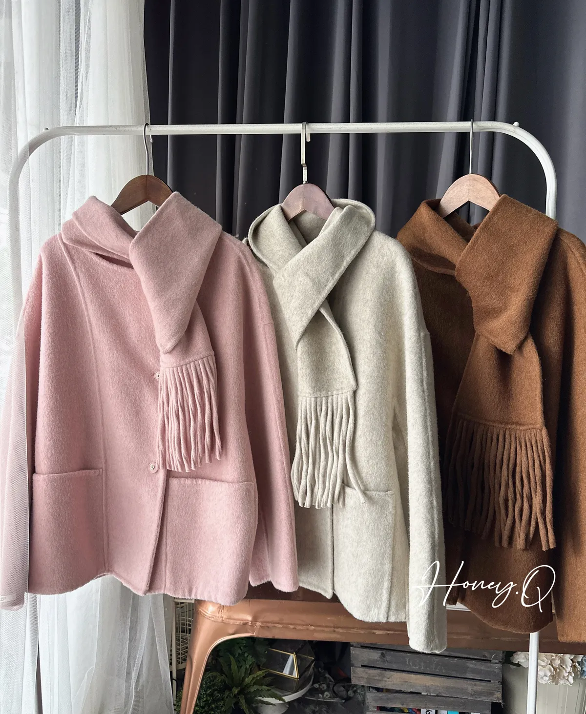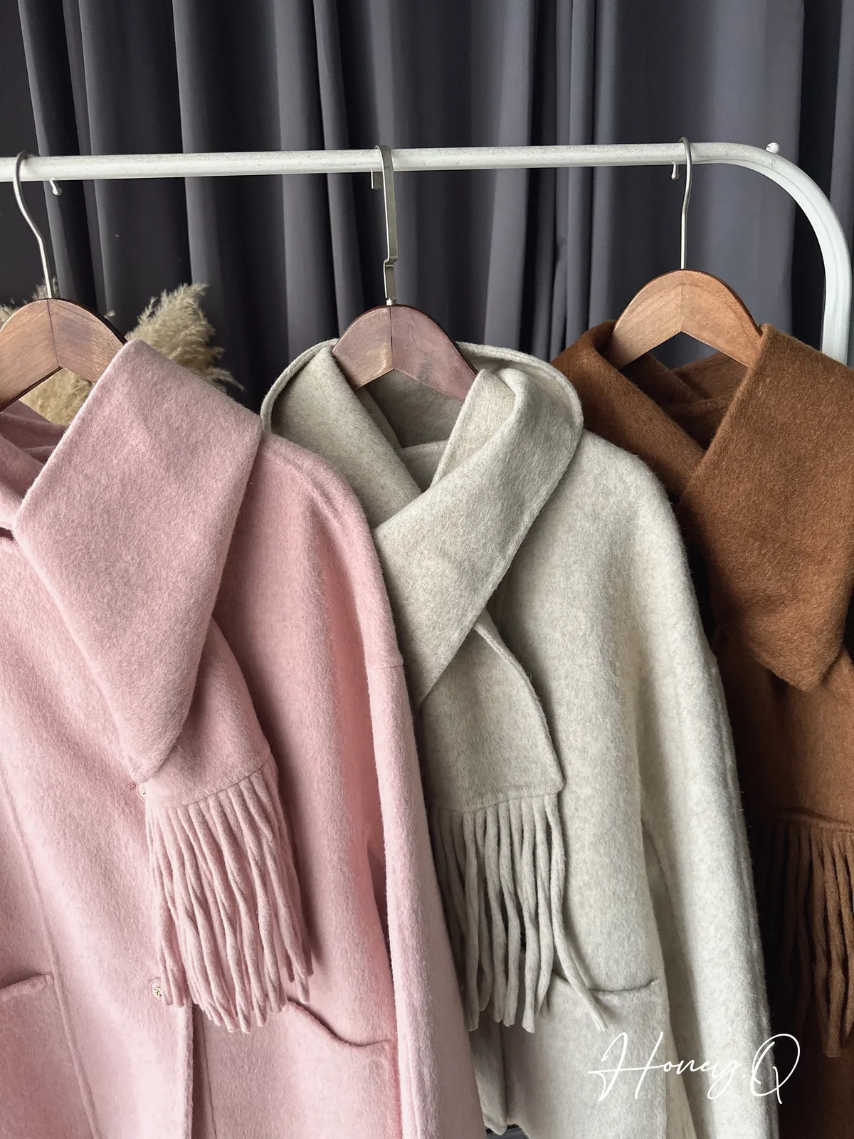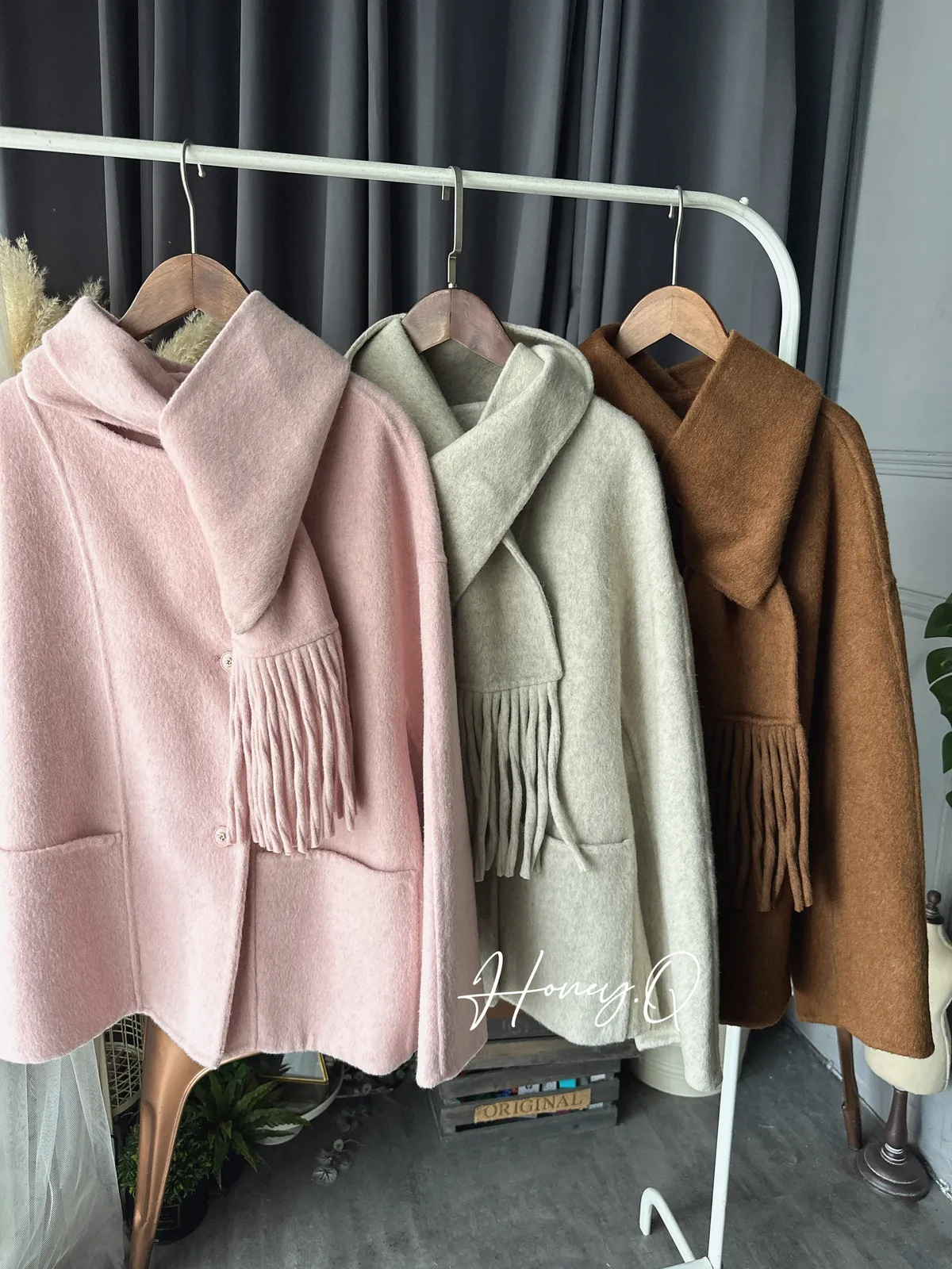 附圍巾手工羊毛大衣/3色