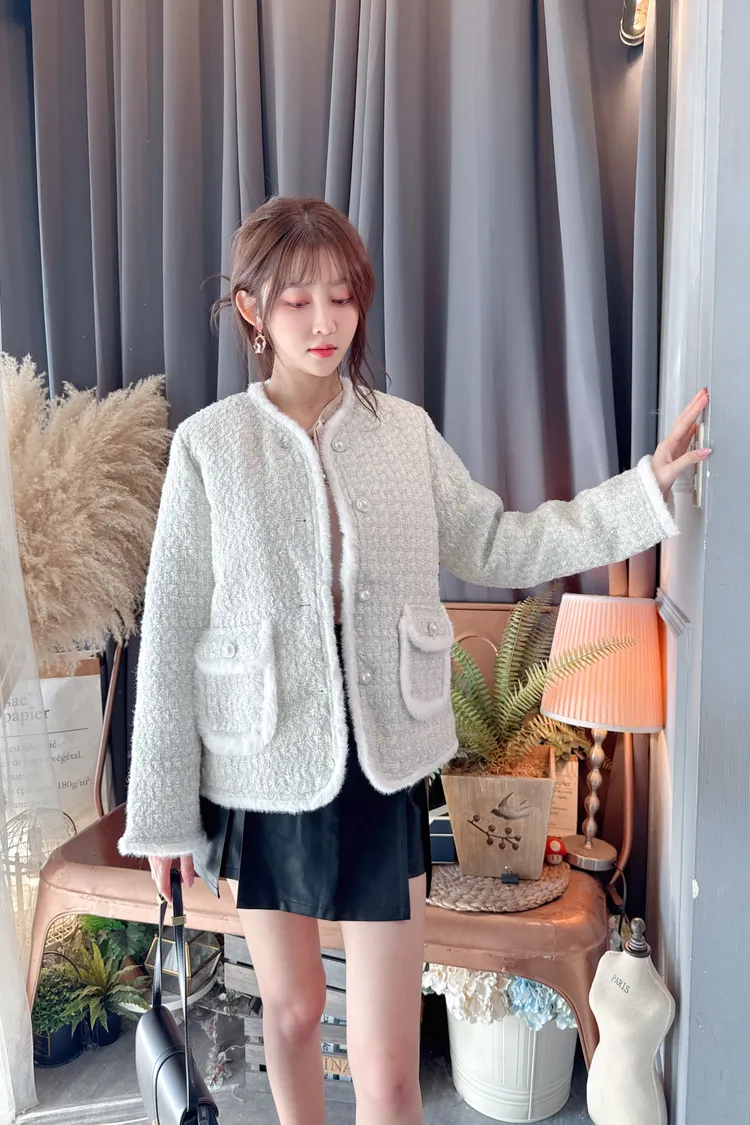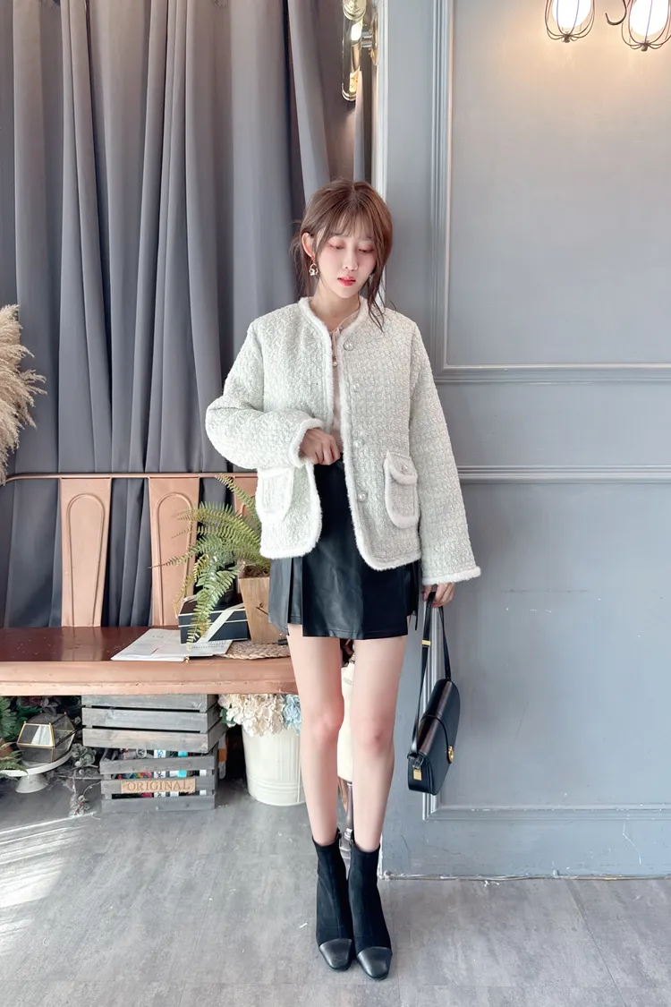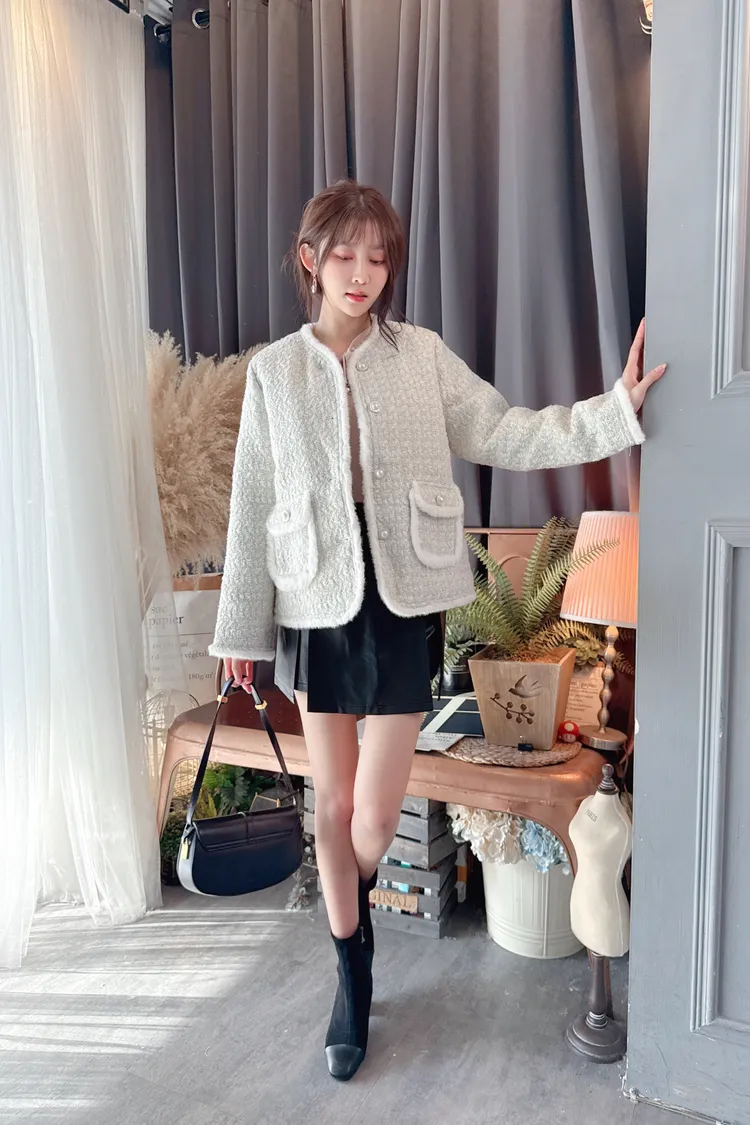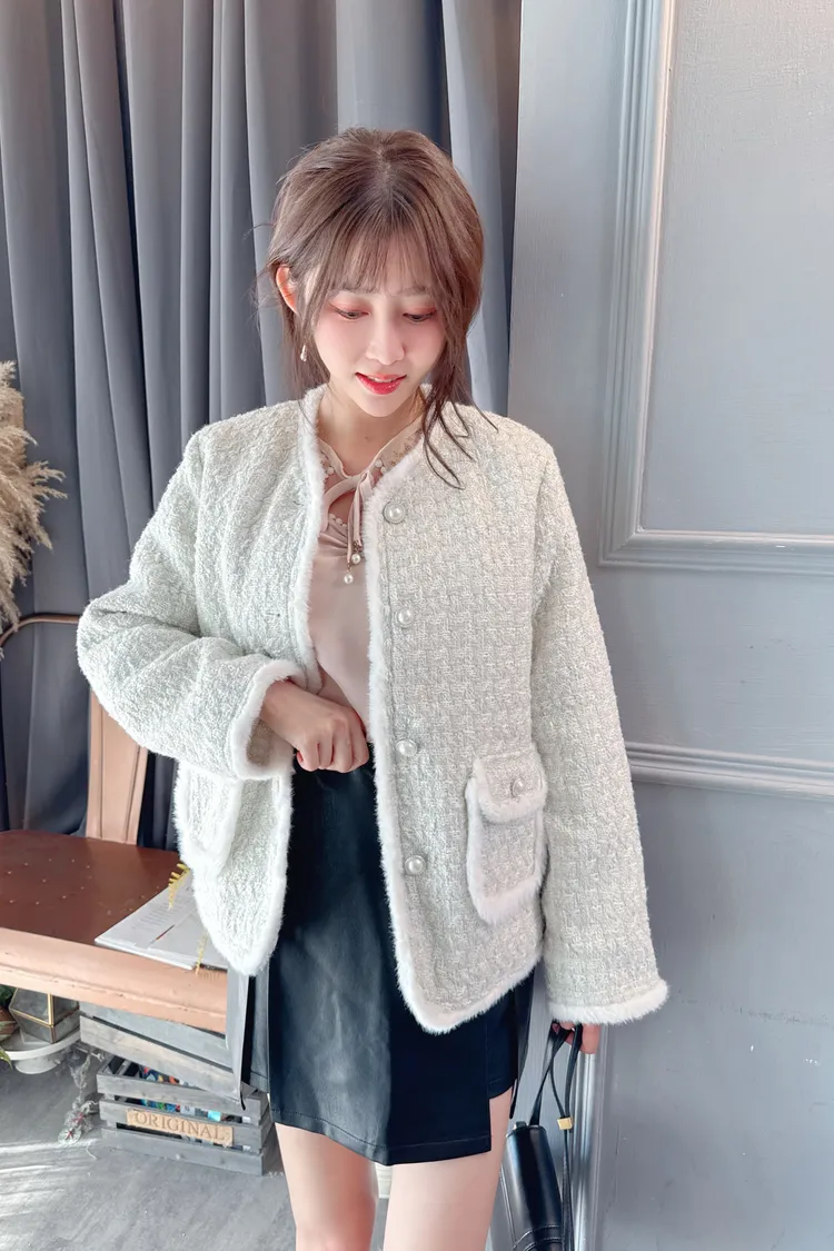 毛邊羽絨小香外套/1色