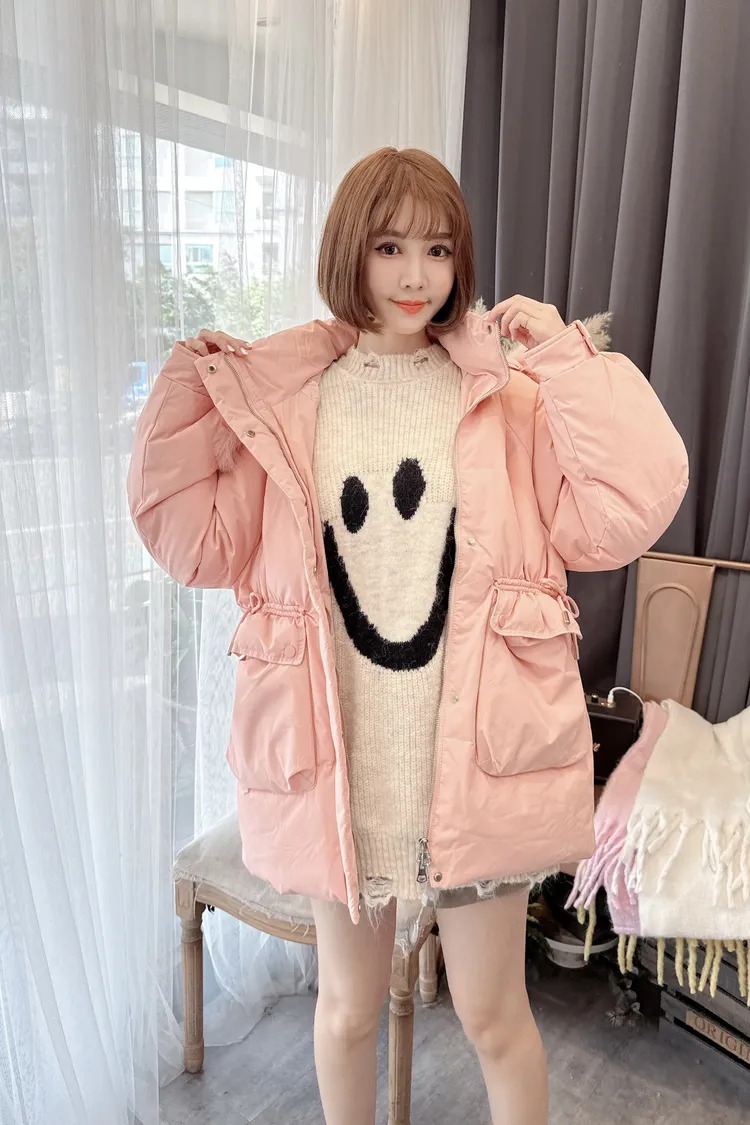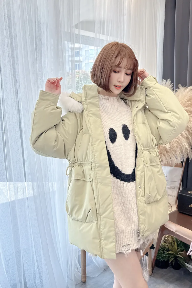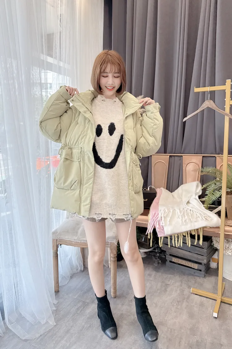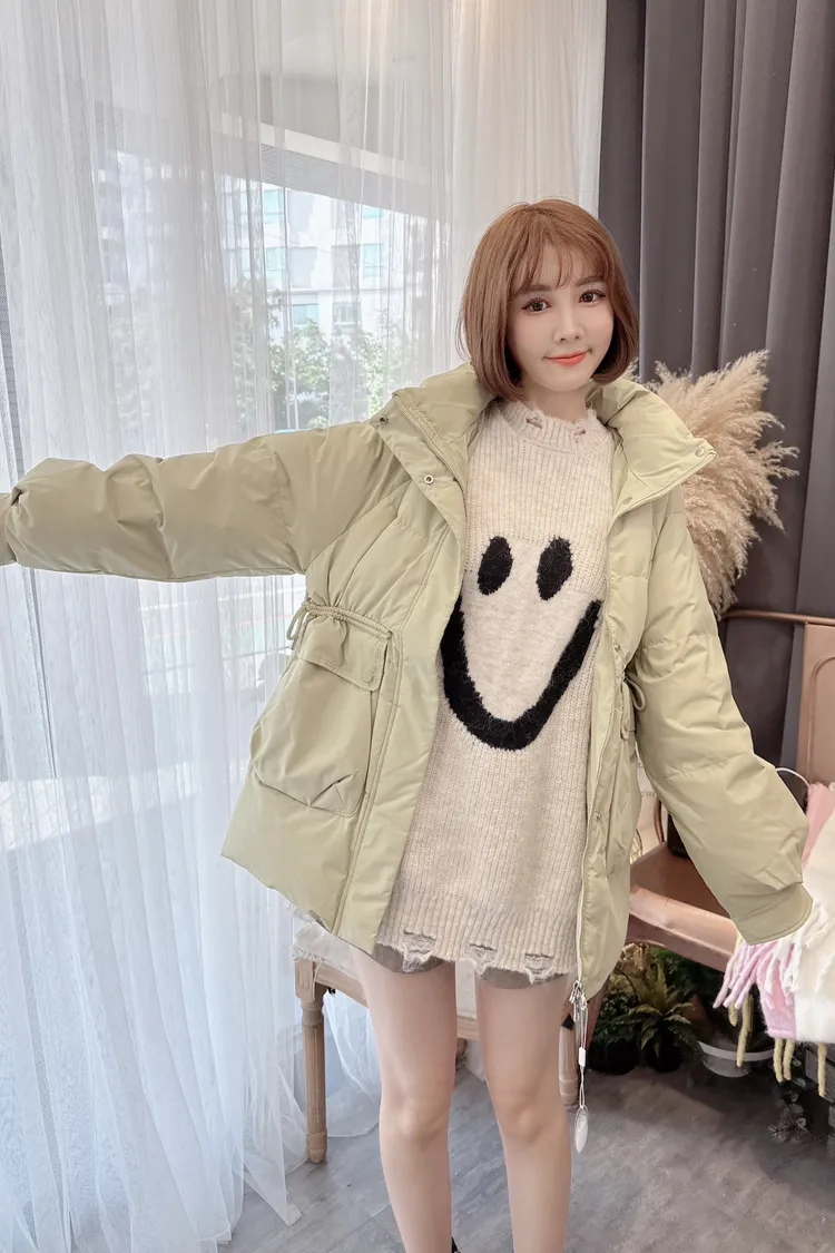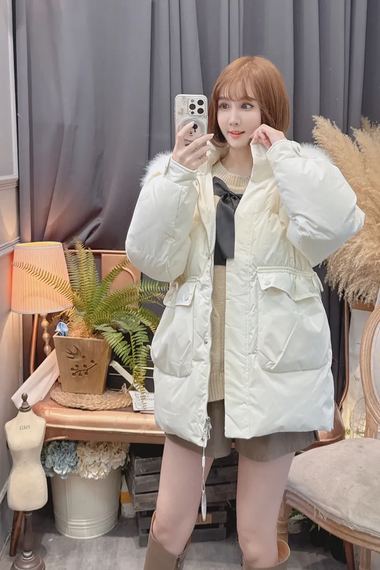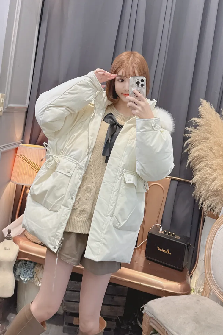 腰可綁蝴蝶結羽絨連帽外套/3色