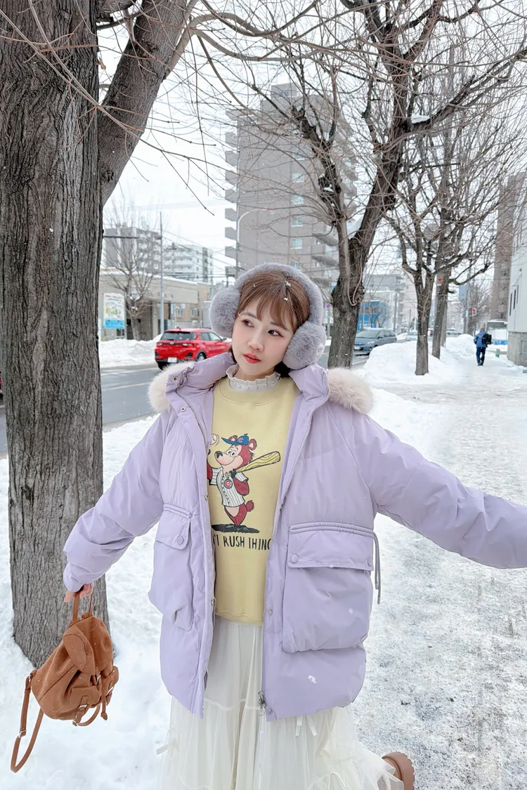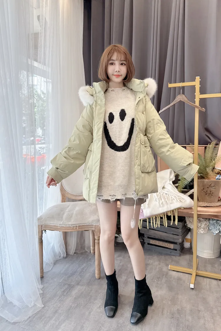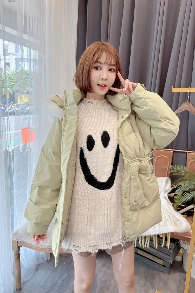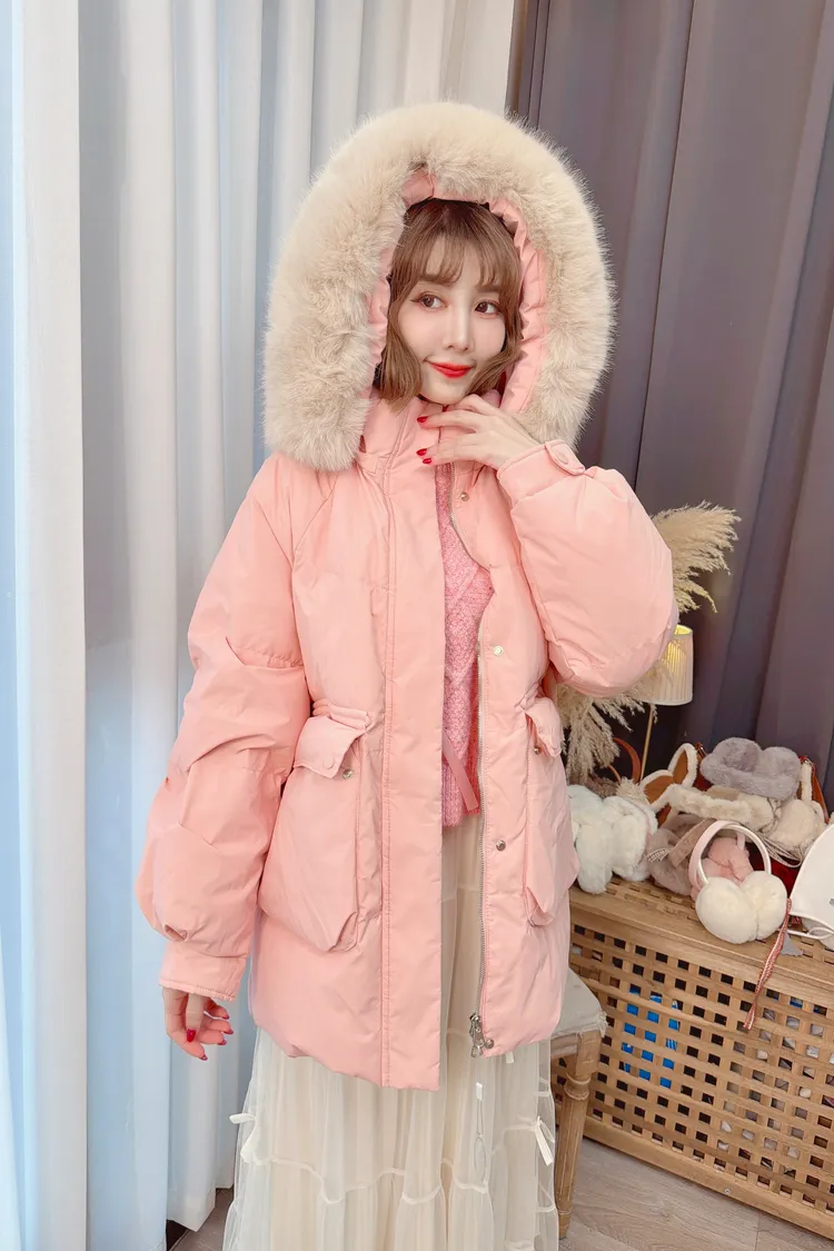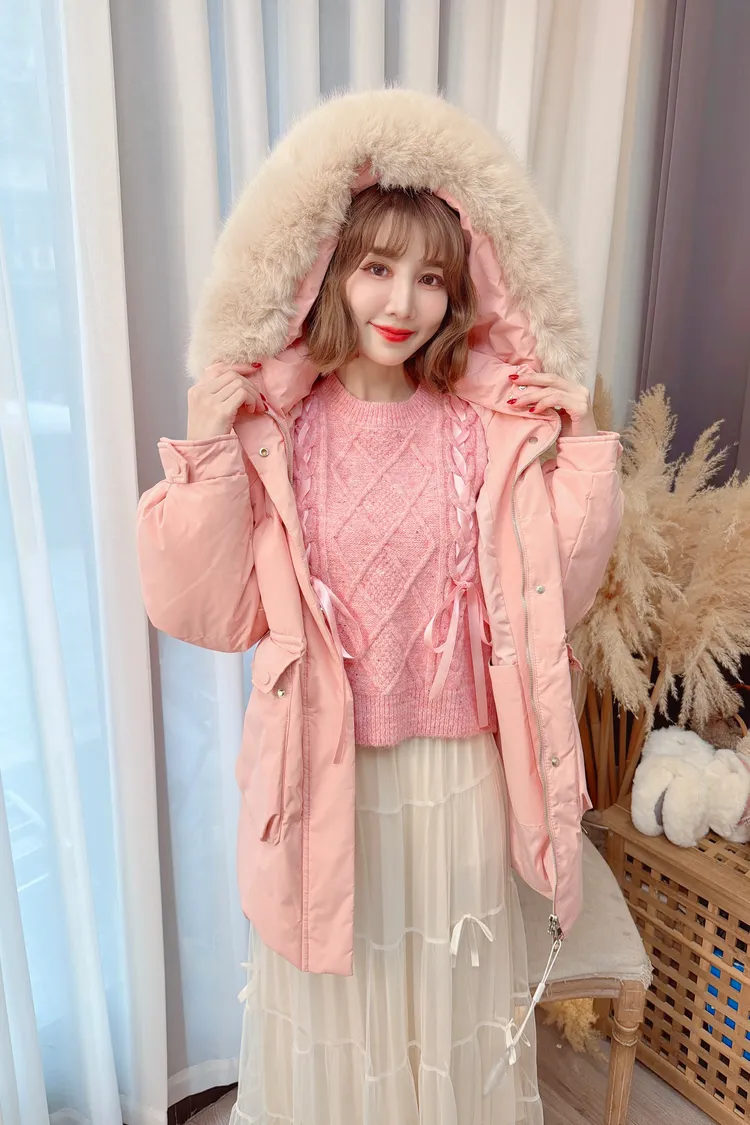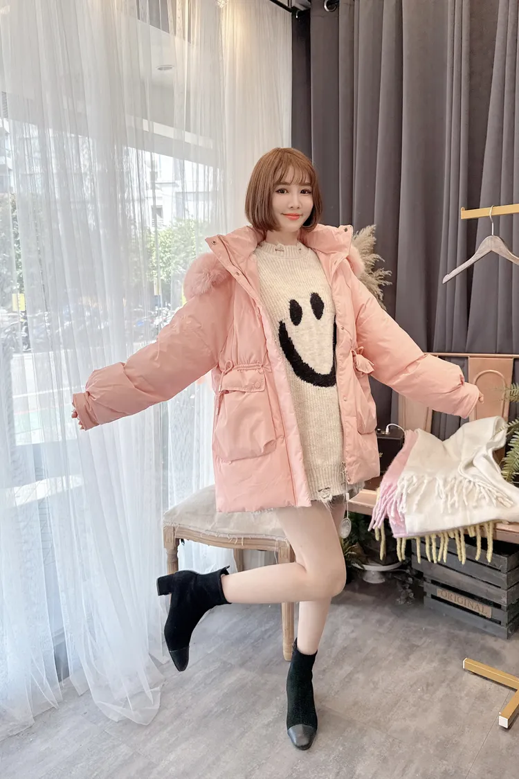 腰可綁蝴蝶結羽絨連帽外套/3色