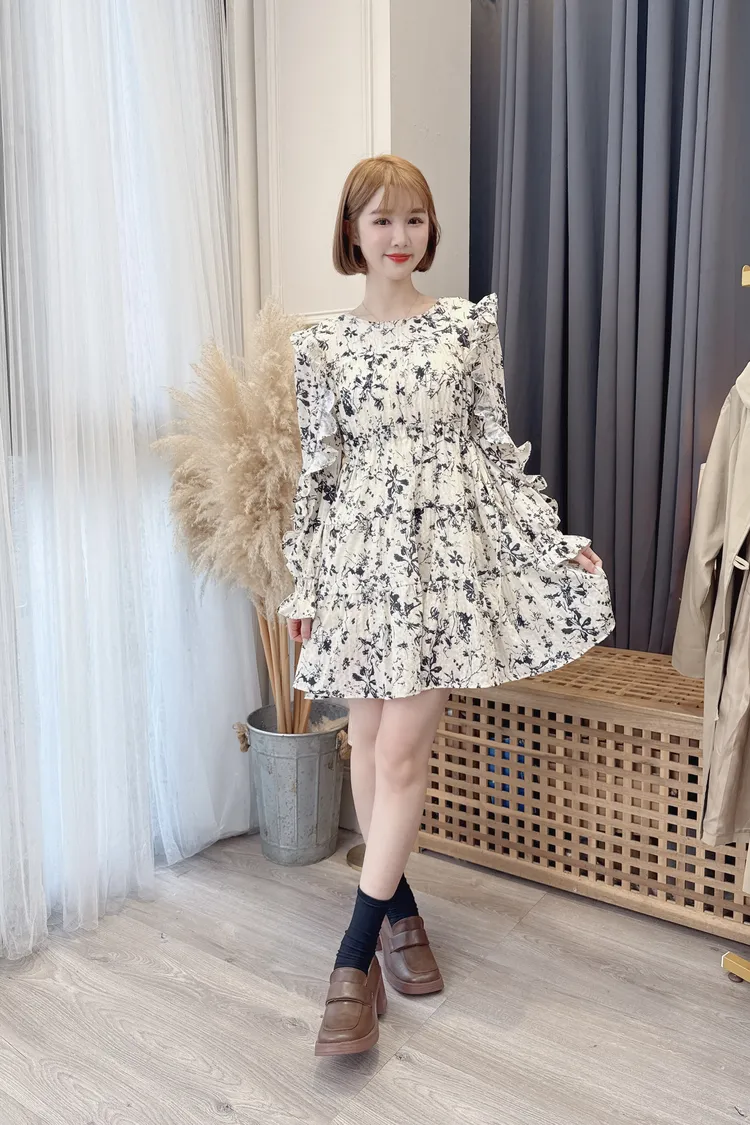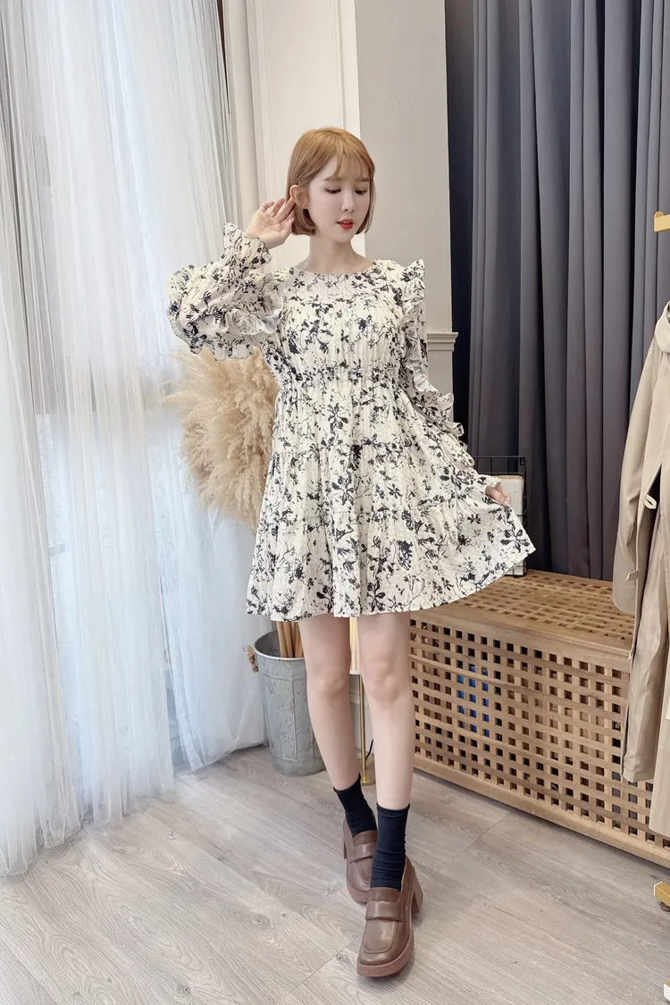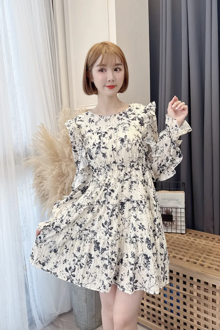 早春荷葉花朵洋裝/1色