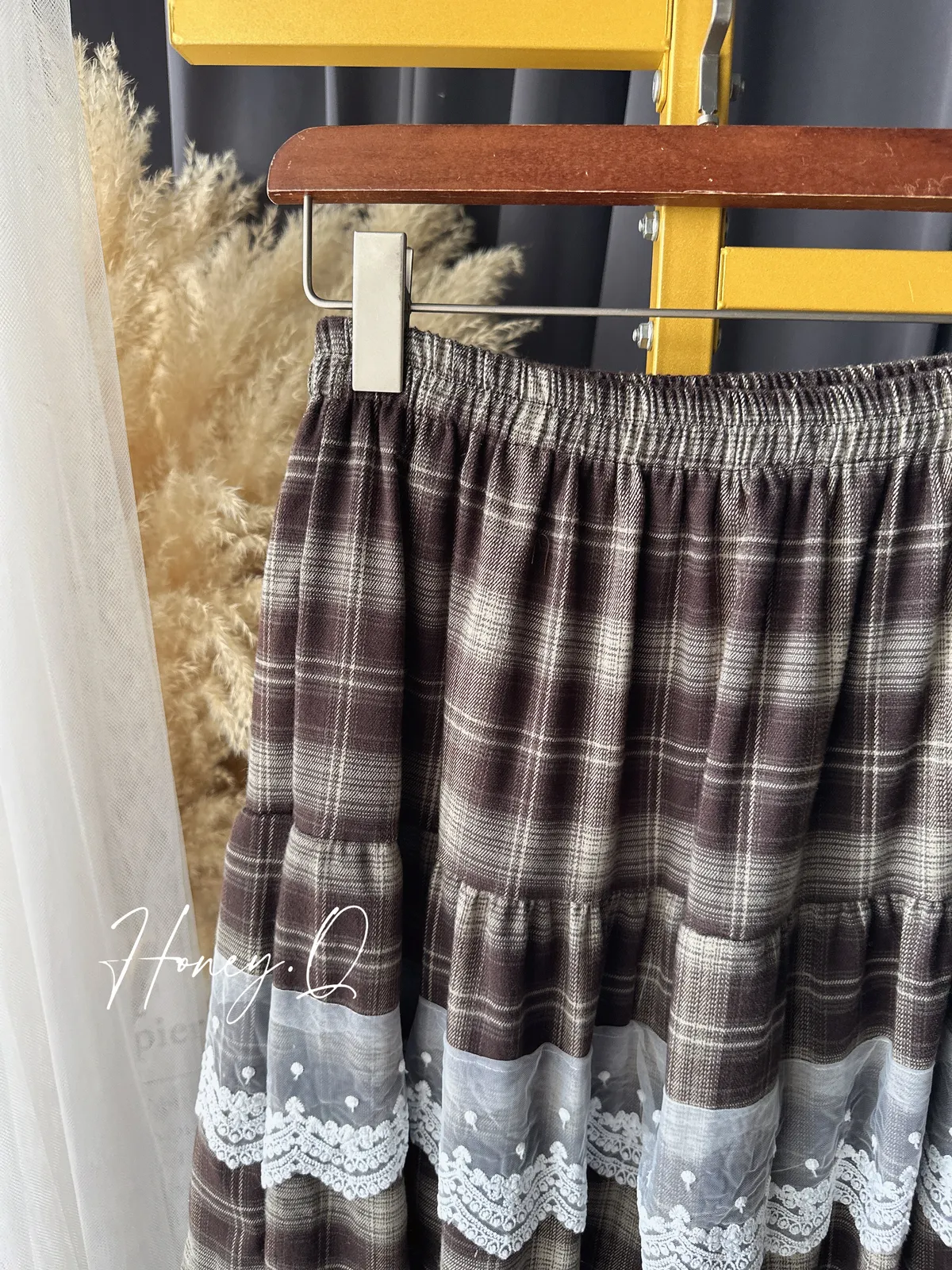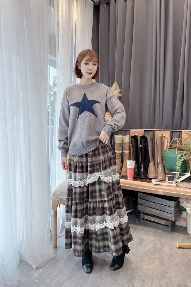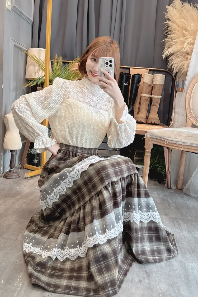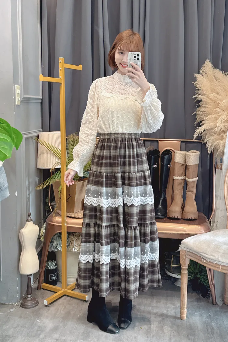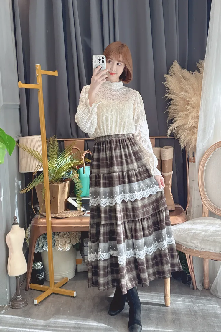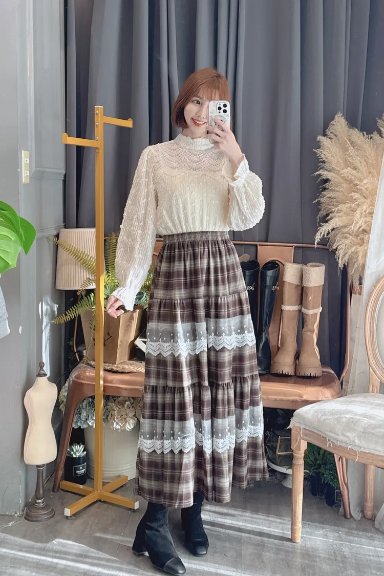 格紋蕾絲拼接長裙/1色