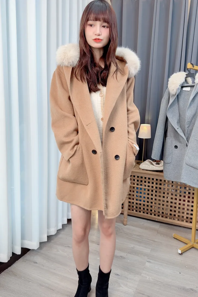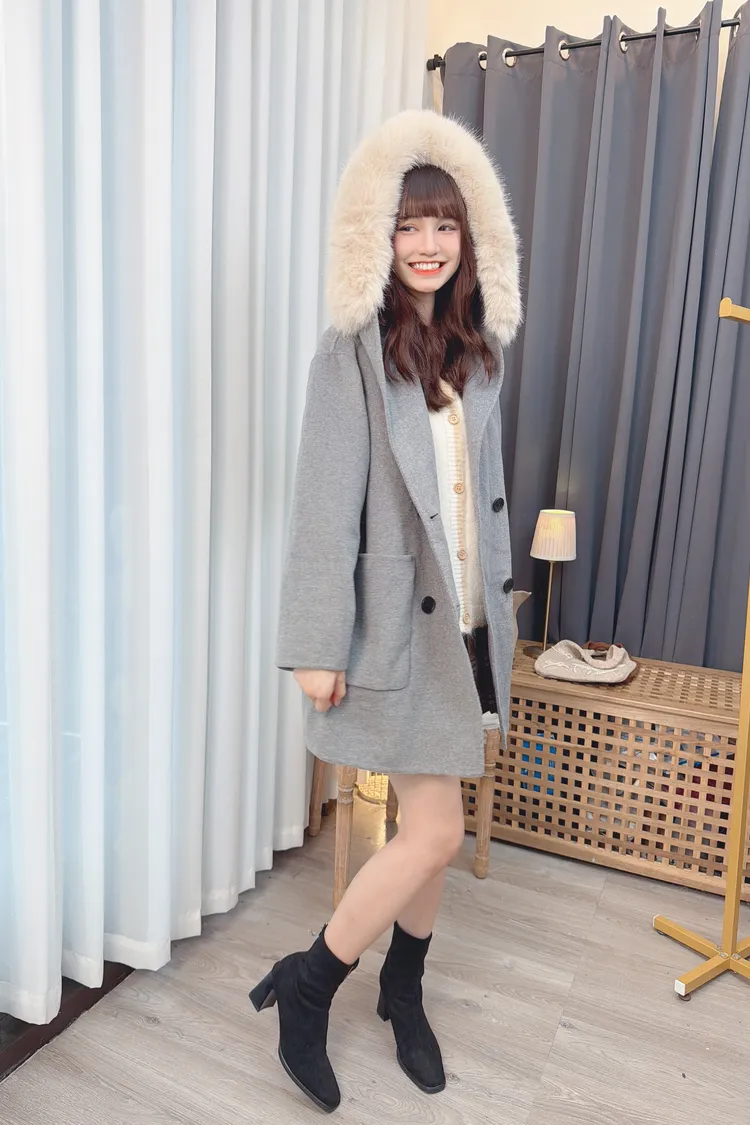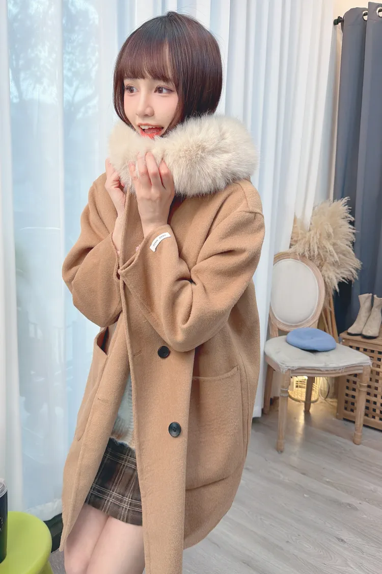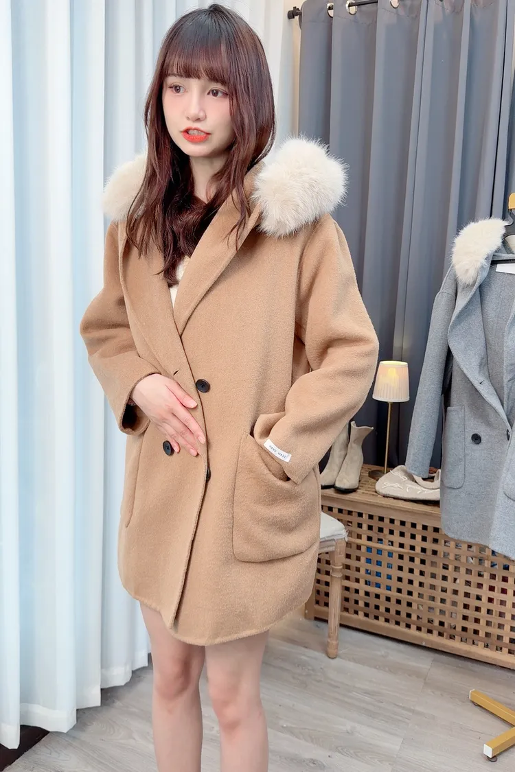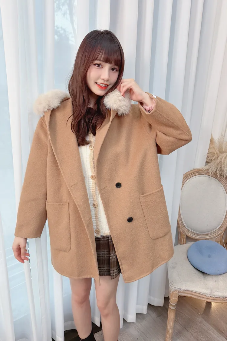 連帽毛毛羊毛大衣外套/2色