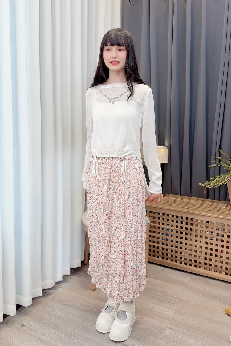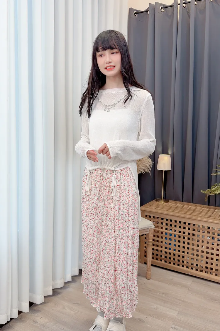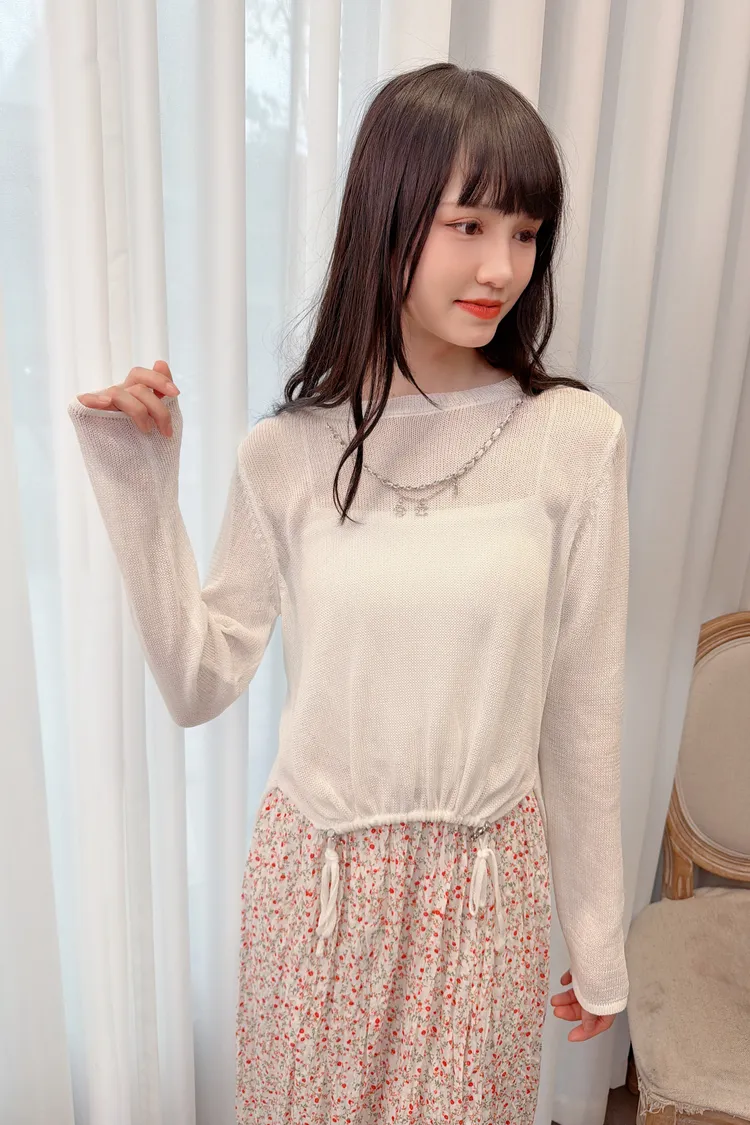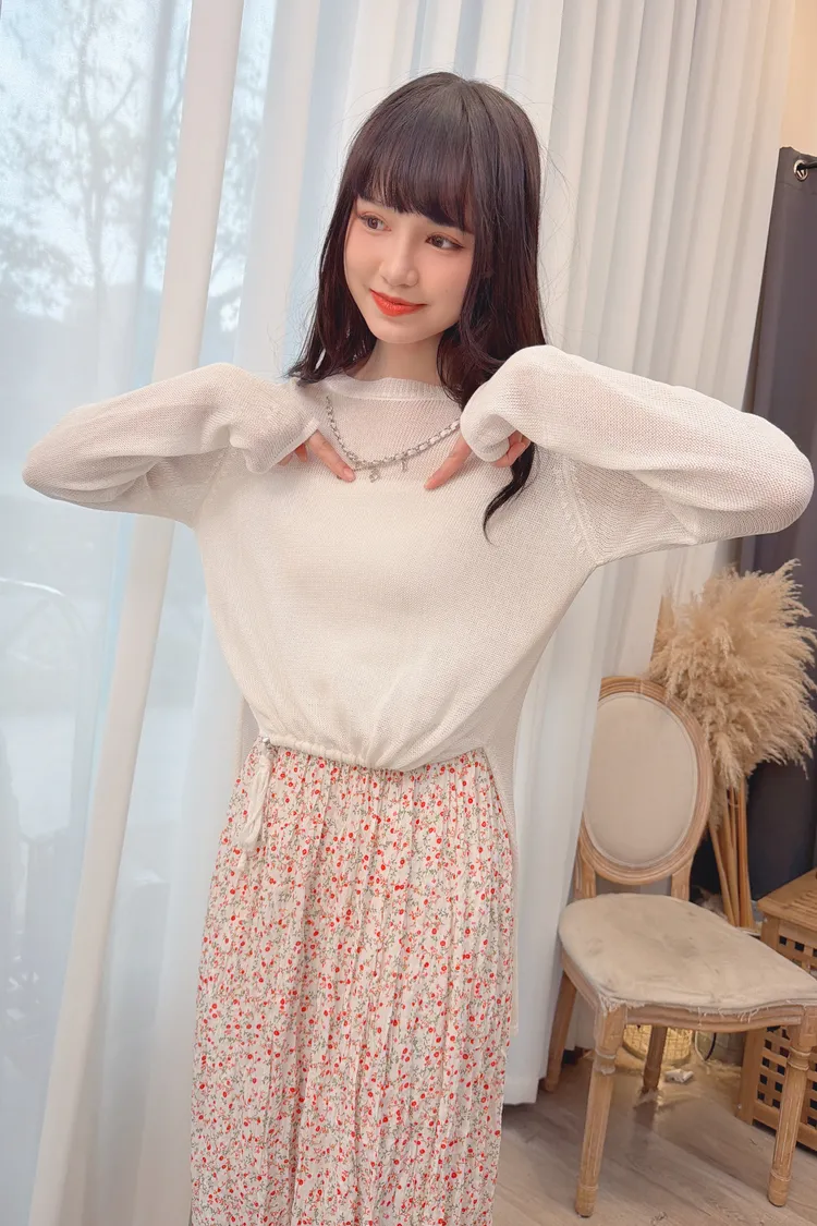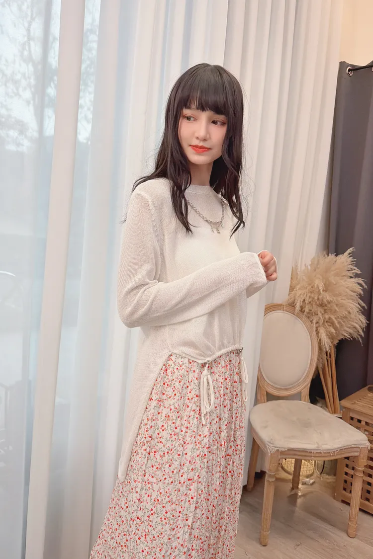 前鏈條造型前短後長針織上衣/1色