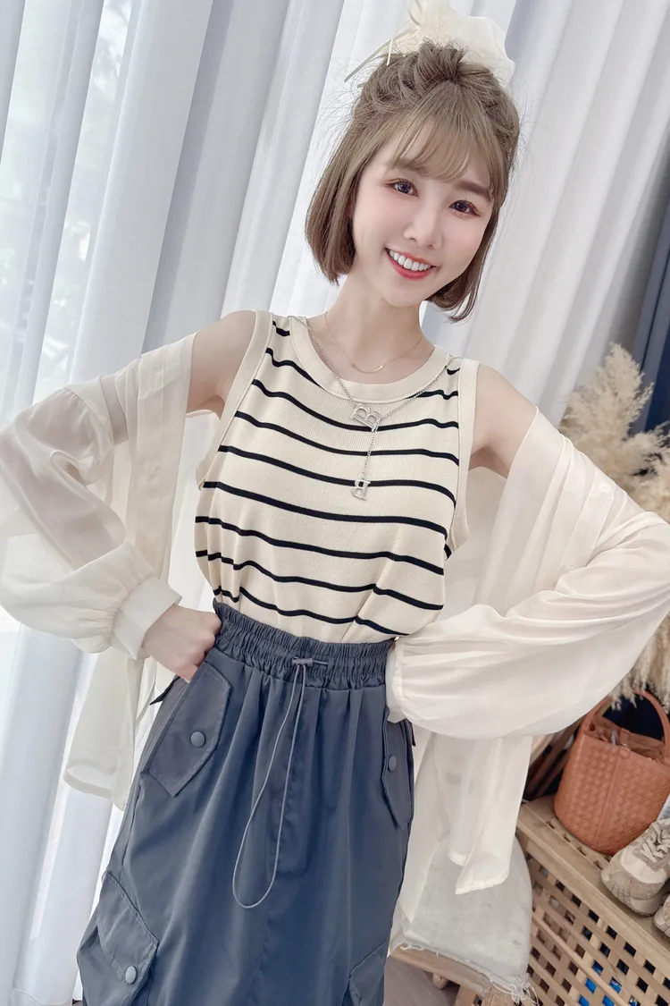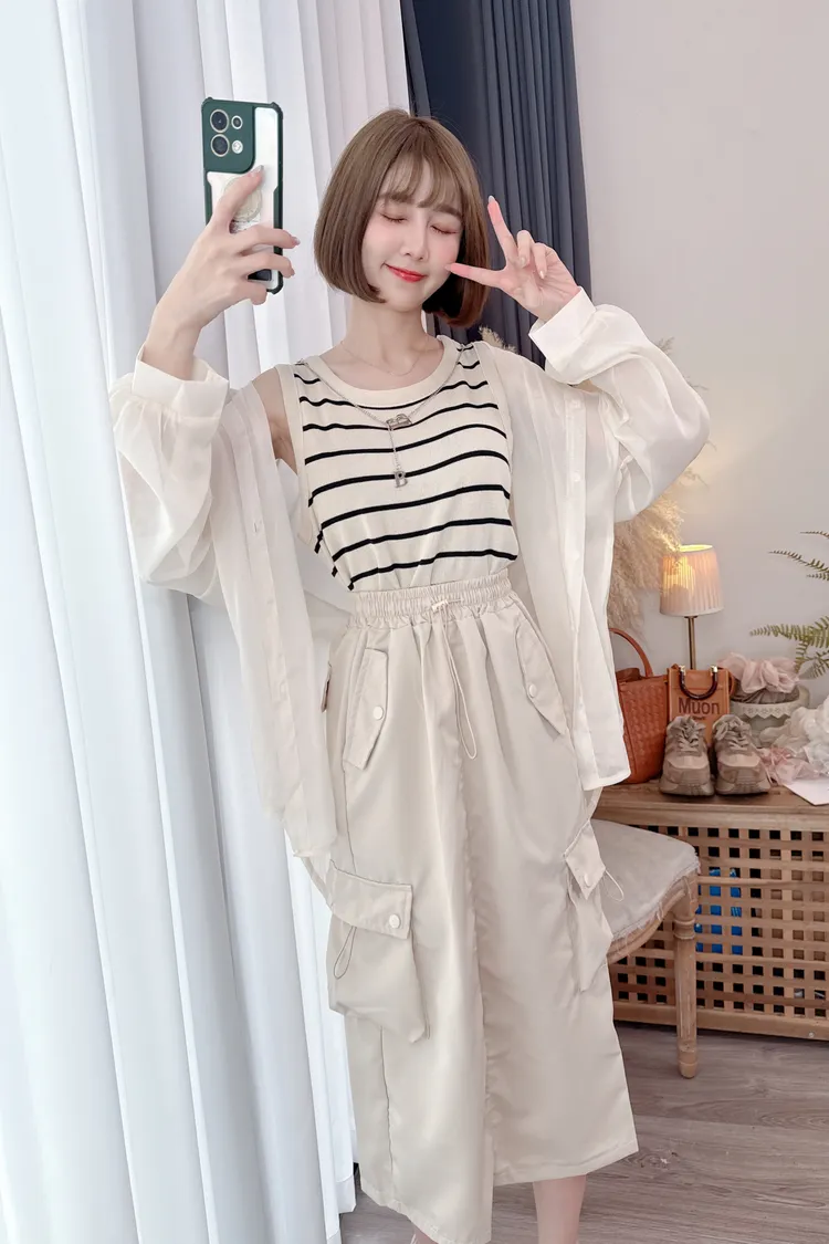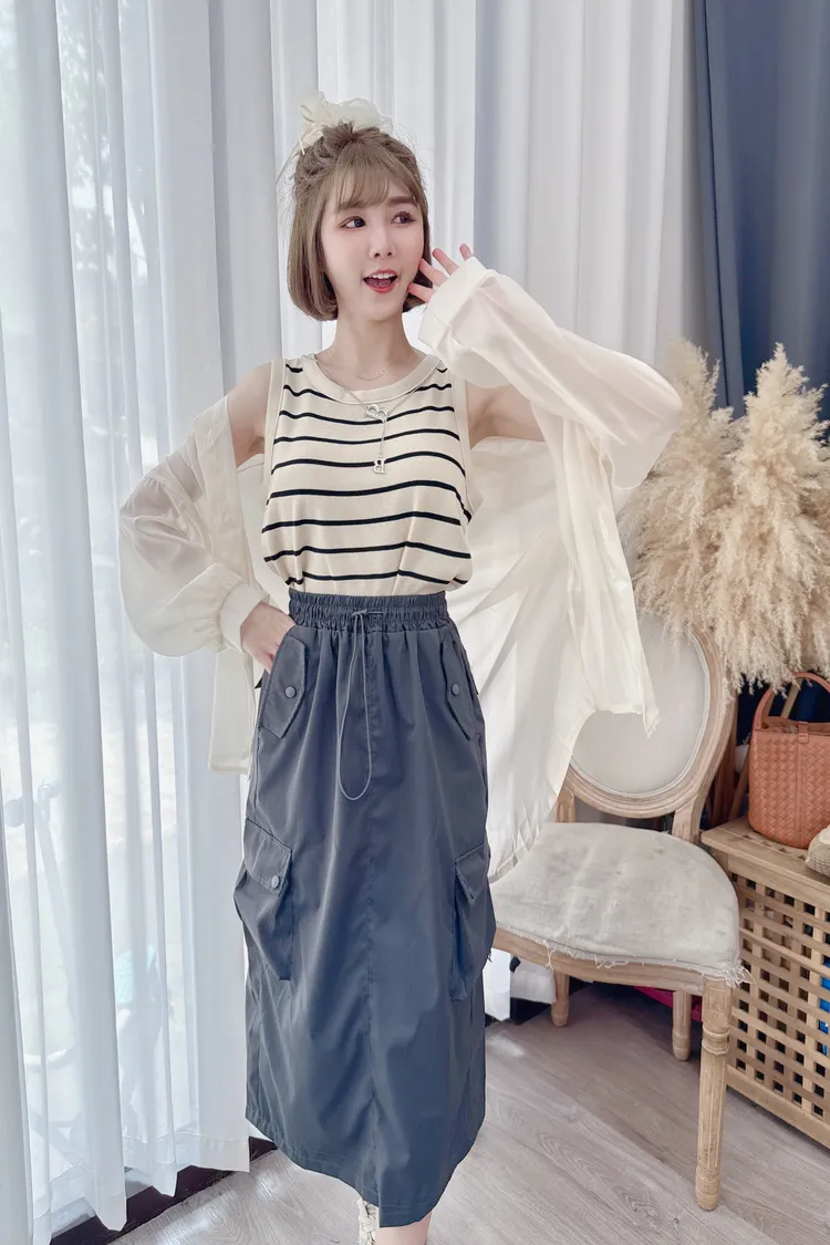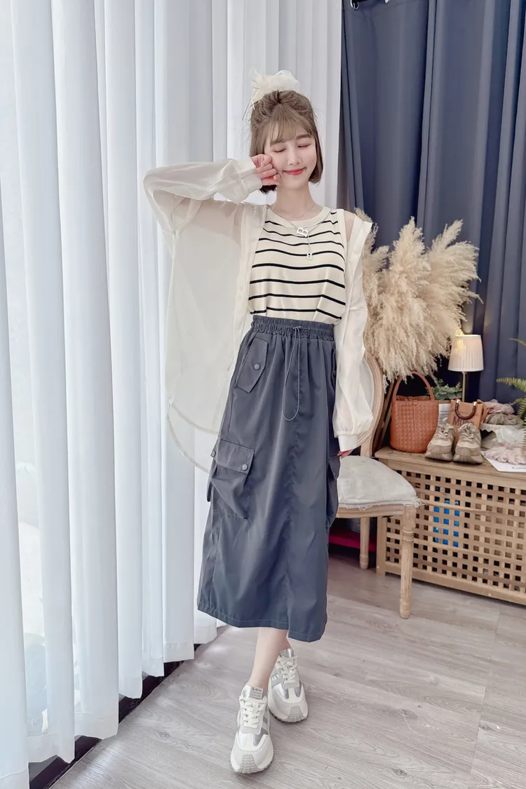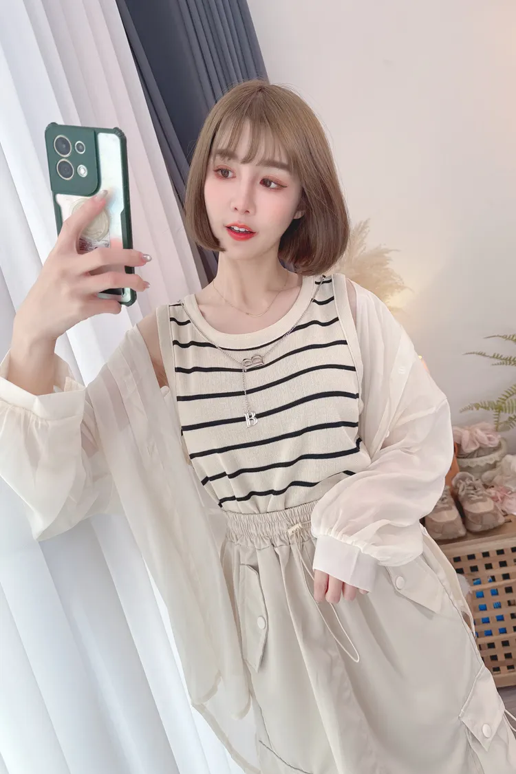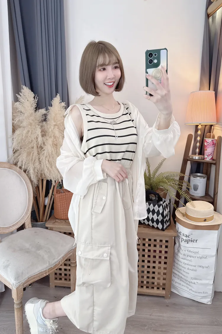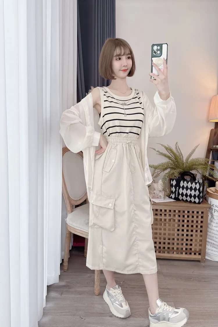✔️套裝三件組含 罩衫/背心/裙子顏色自由搭配下單請留言備註✨背心 胸寬50長約49 (含可拆的項鍊)/有彈性罩衫 胸寬64長約70長裙 腰圍31-51臀圍52長約79平量公分