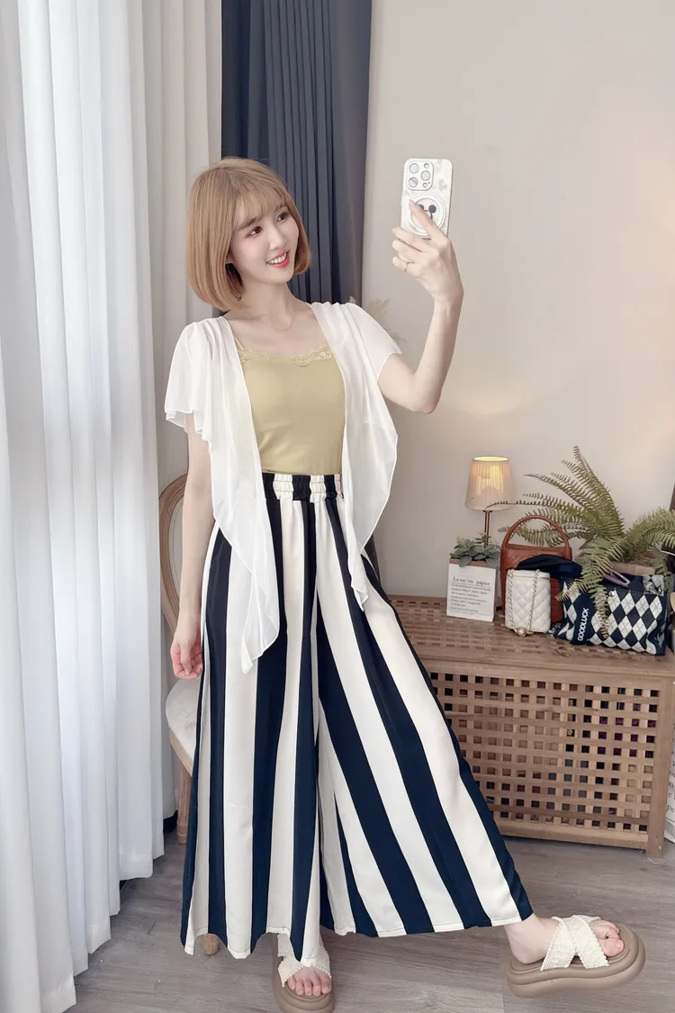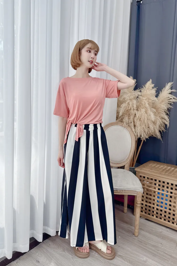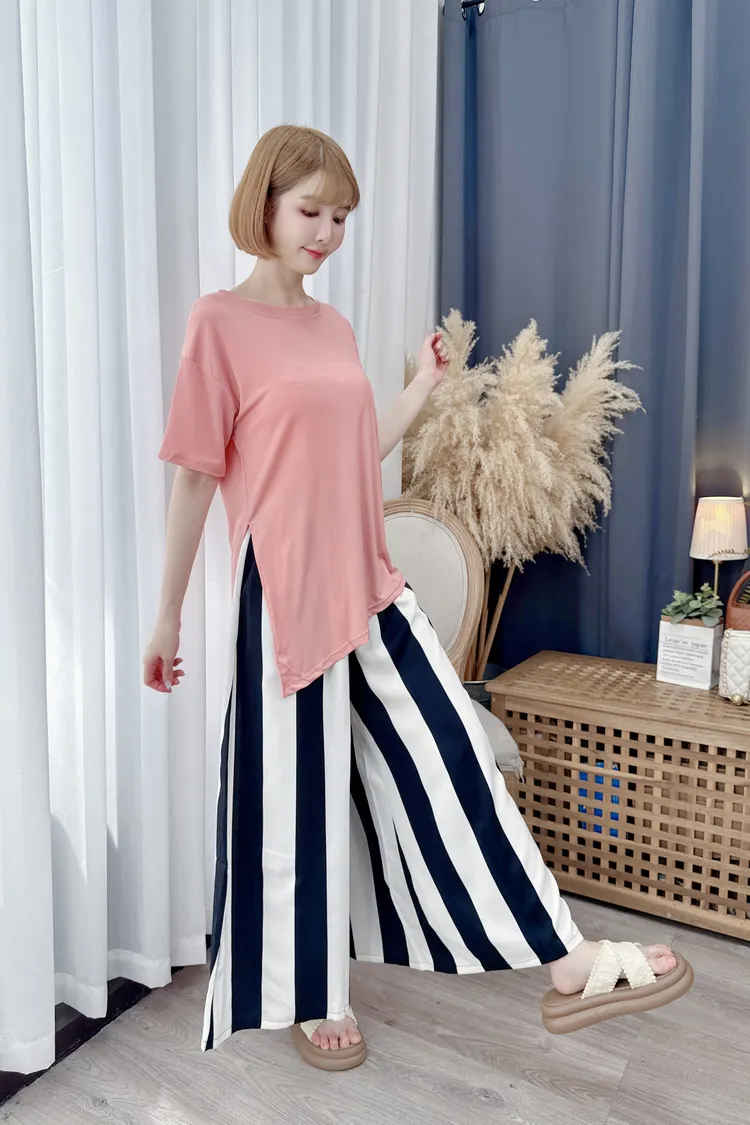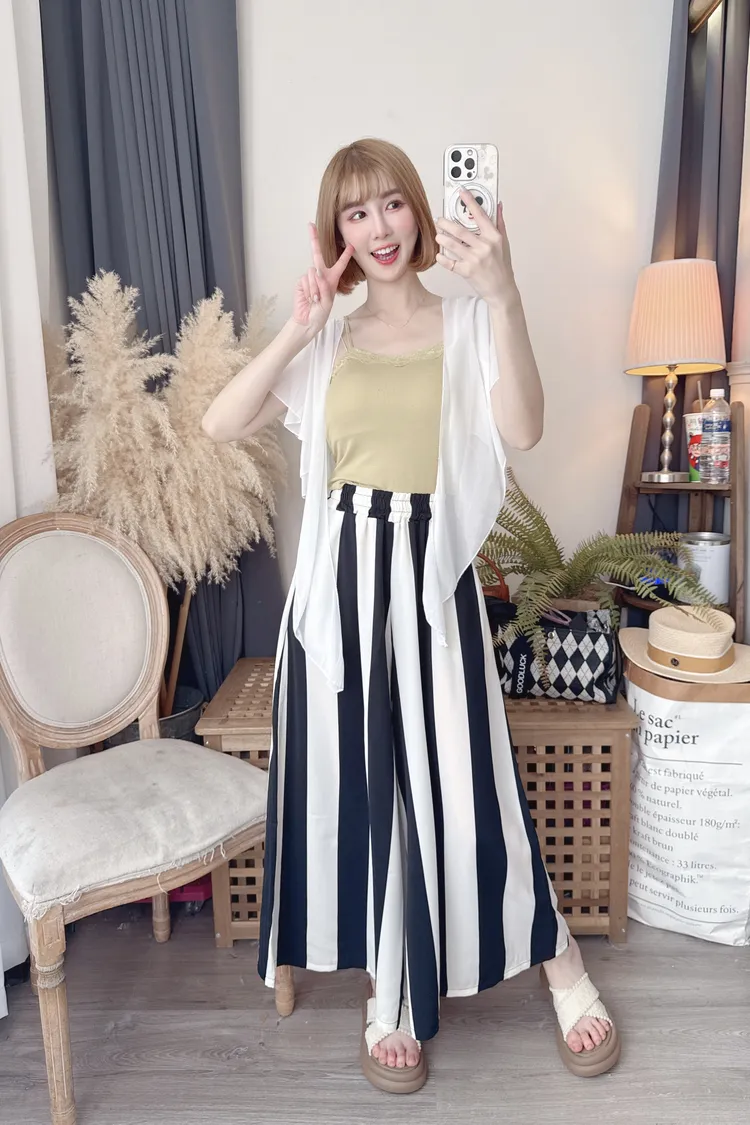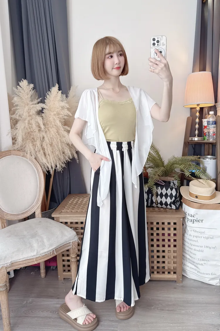 時髦黑白配色寬褲/1色