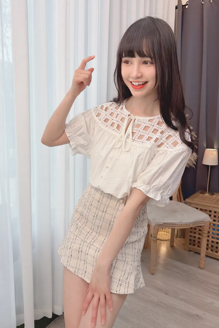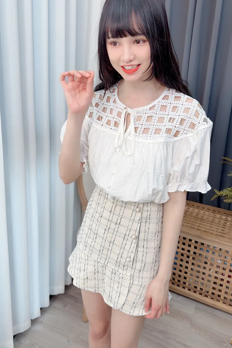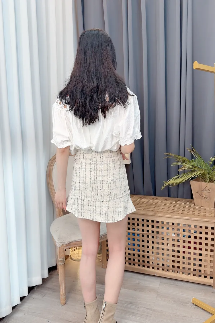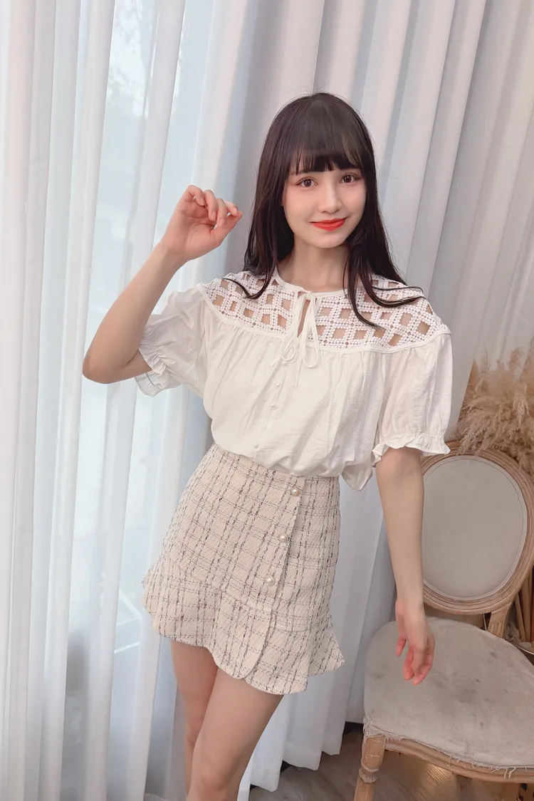 方格拼接造型上衣/2色