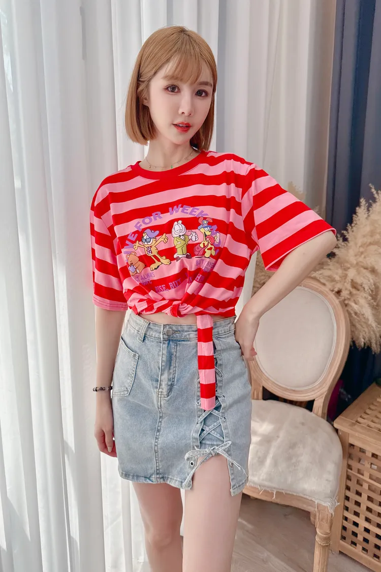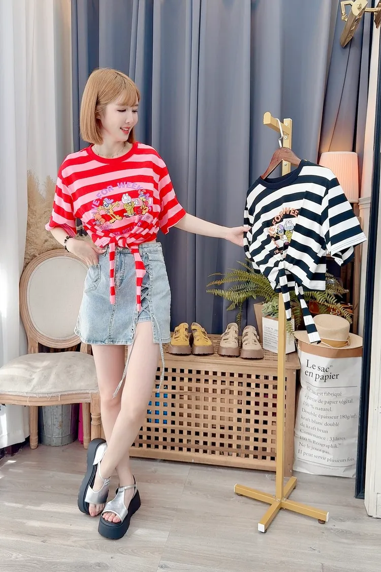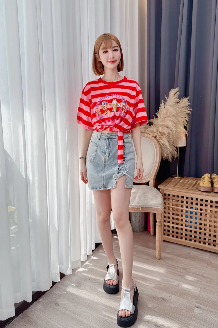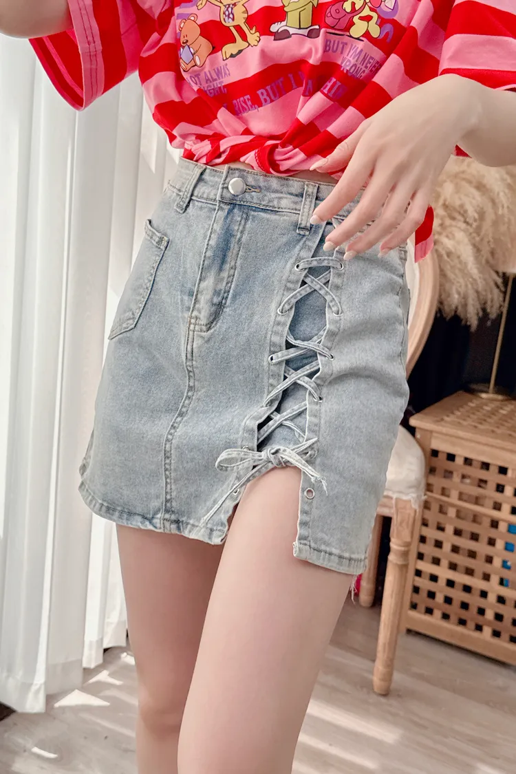 側綁帶造型牛仔裙/1色
