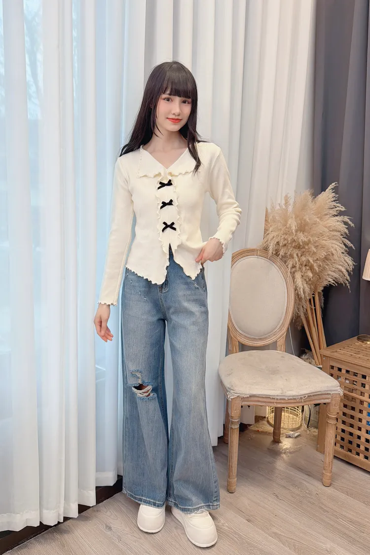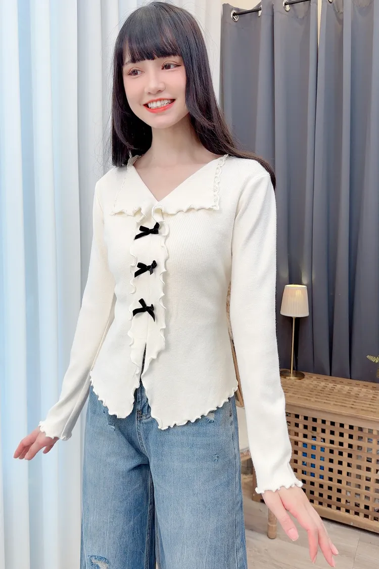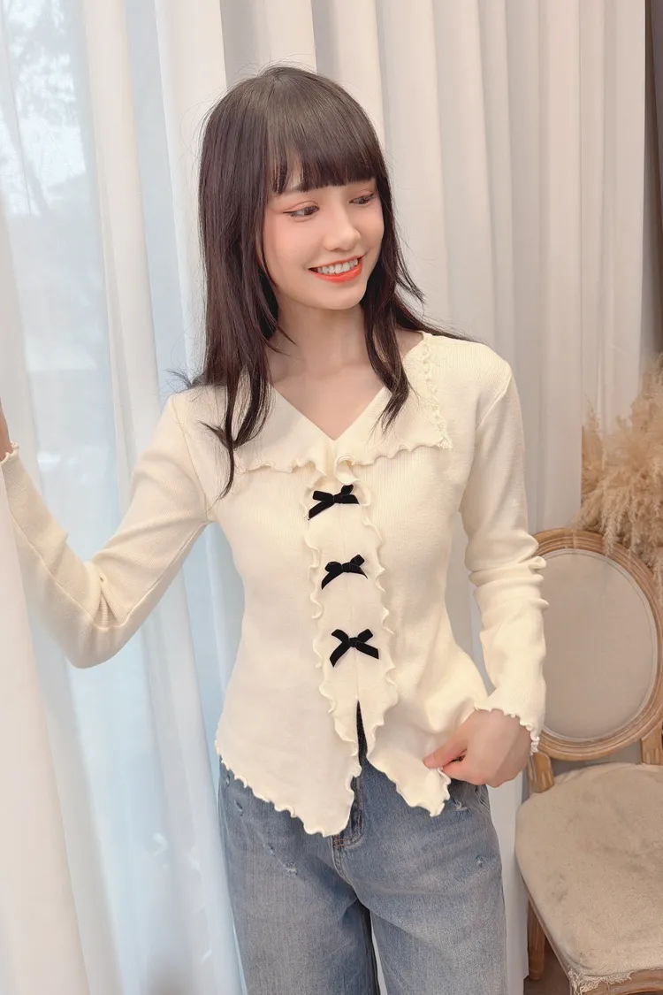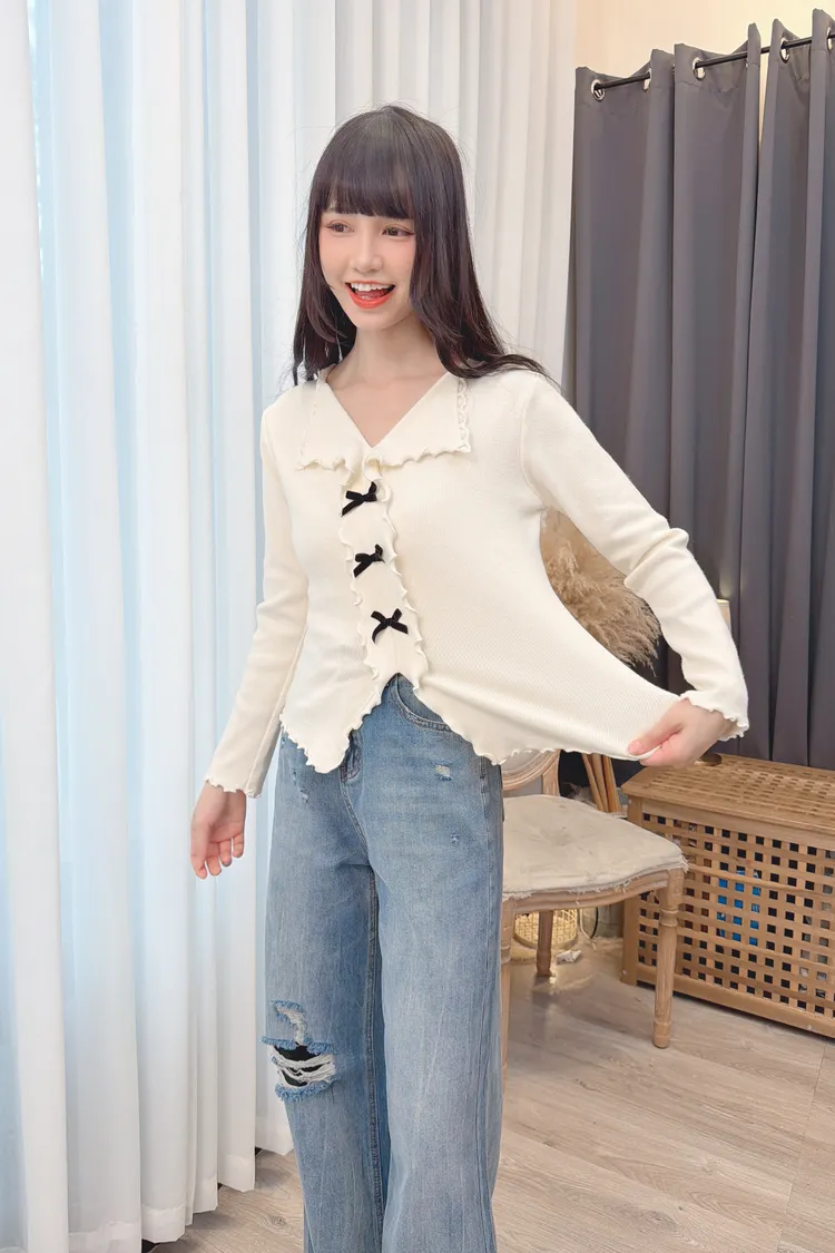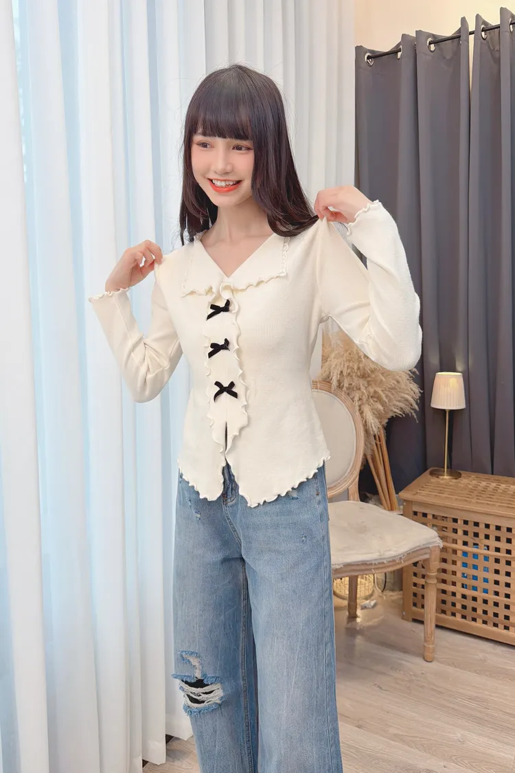 小蝴蝶結木耳邊上衣/2色