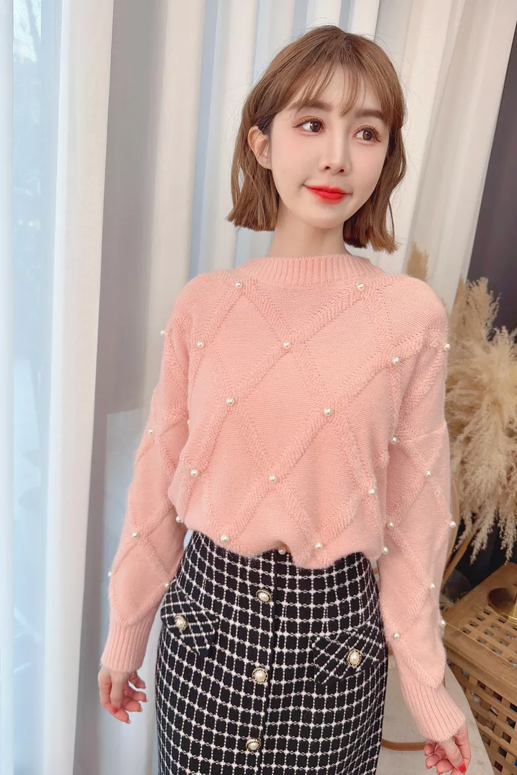 珍珠壓紋針織上衣/2色