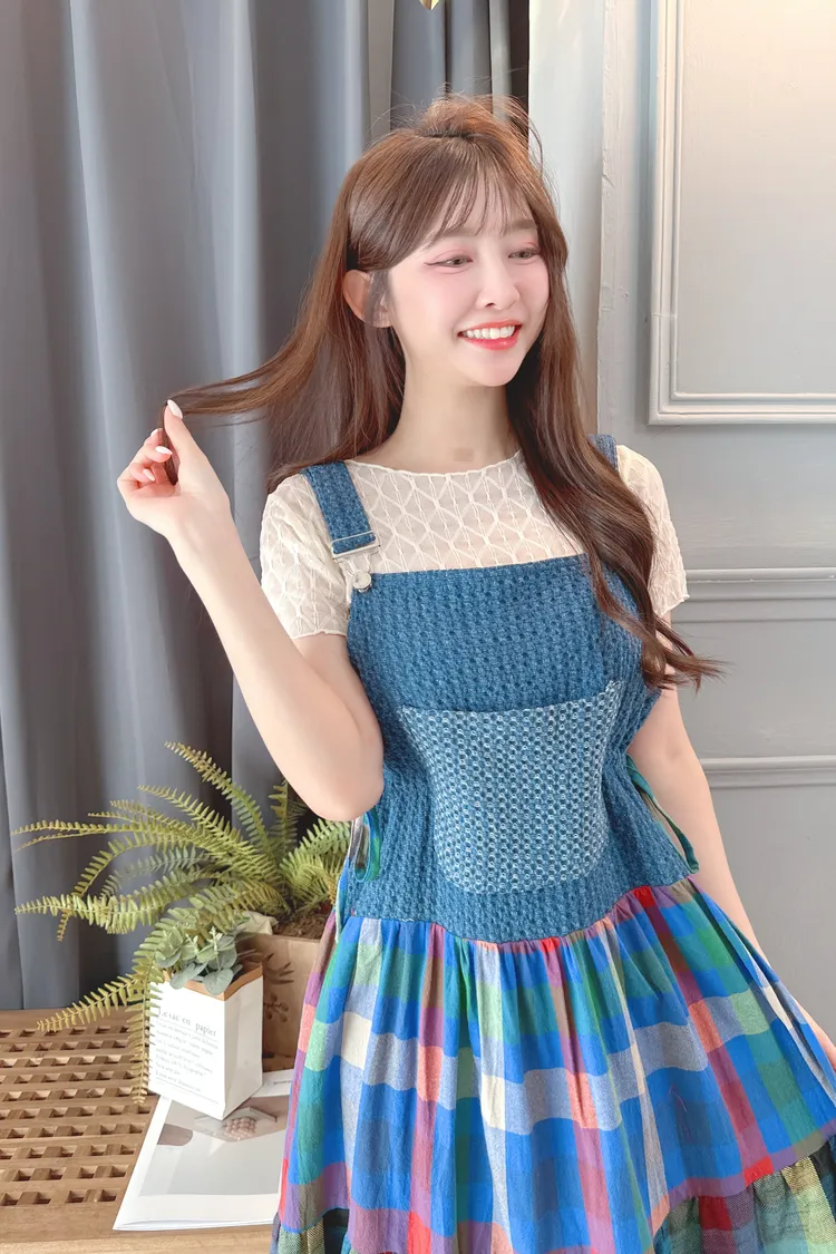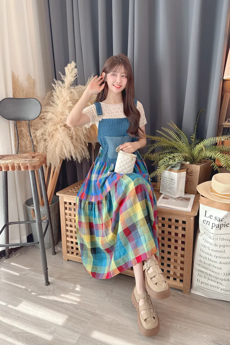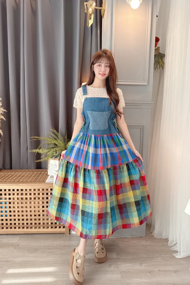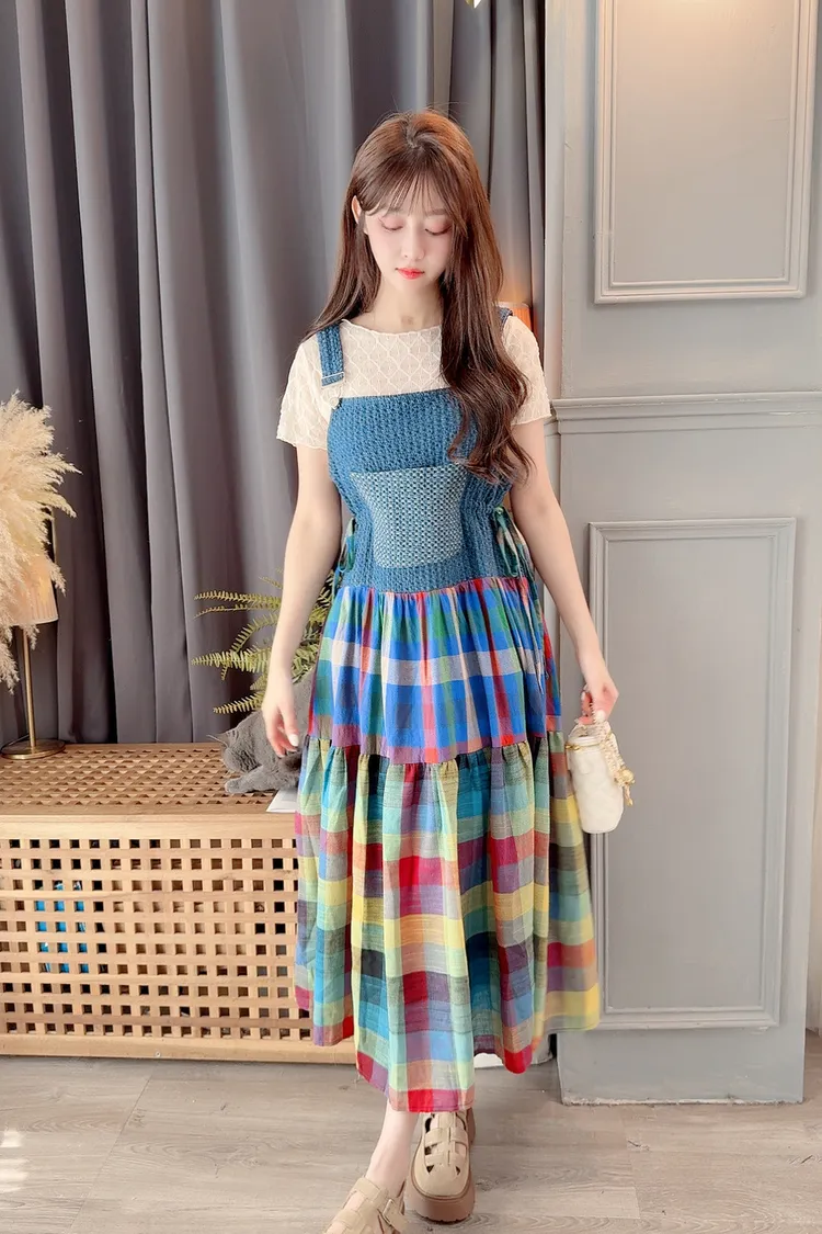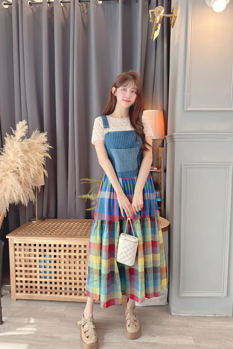 彩色裙襬背心洋裝/1色