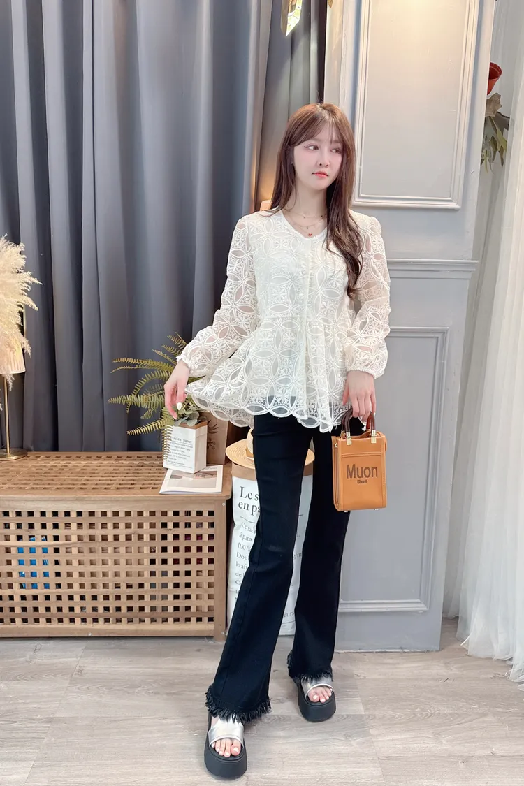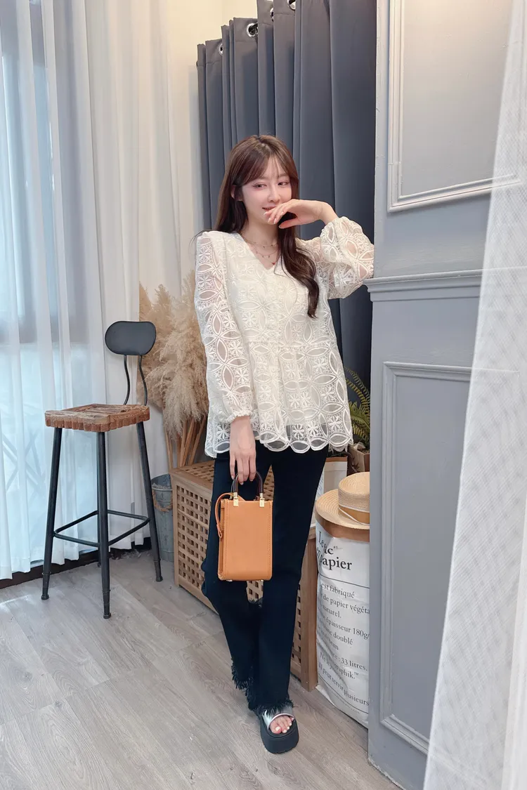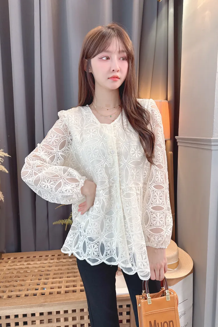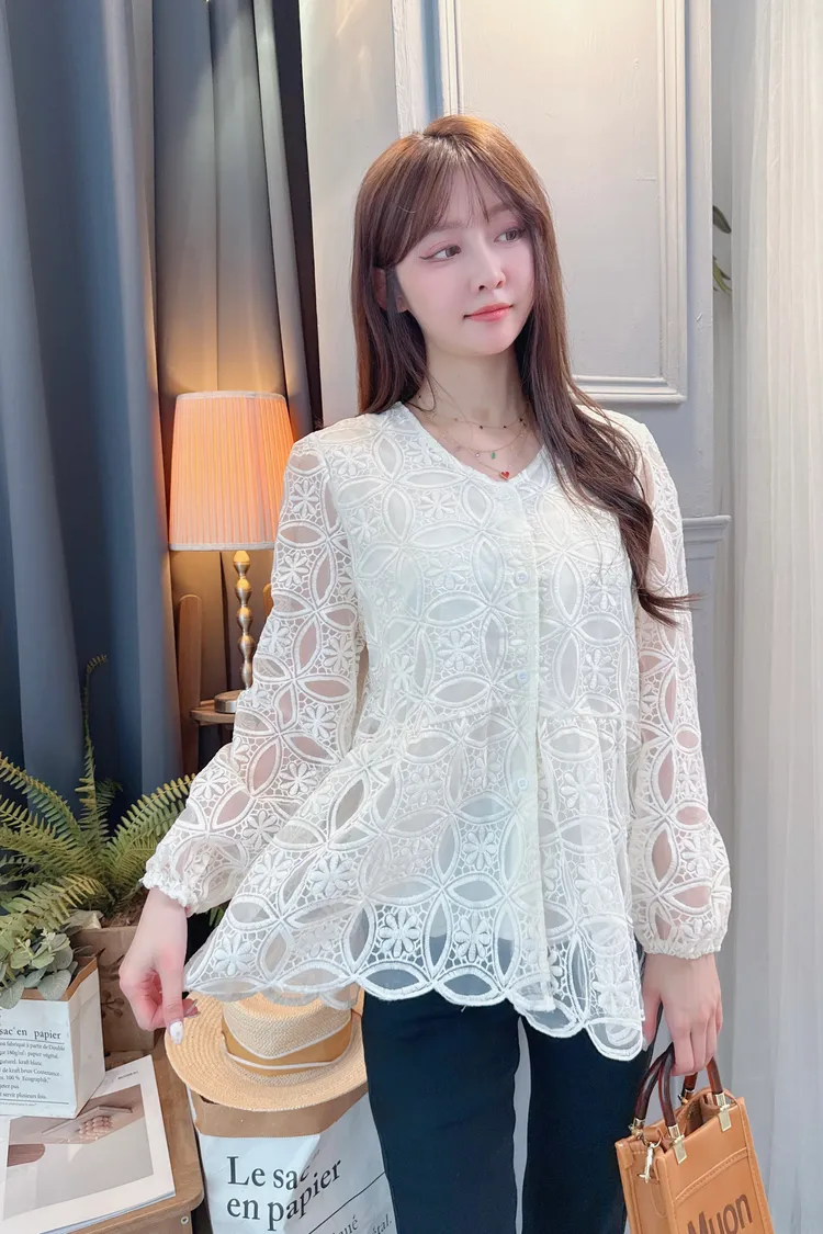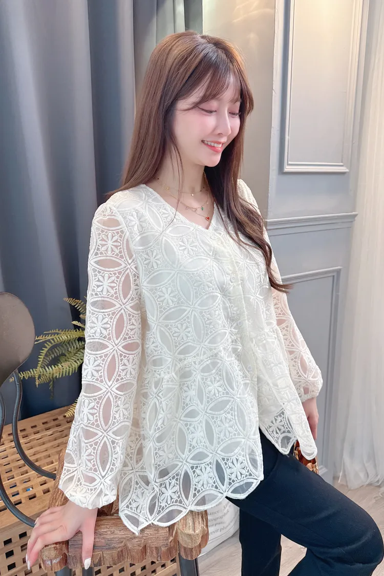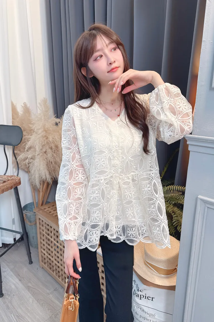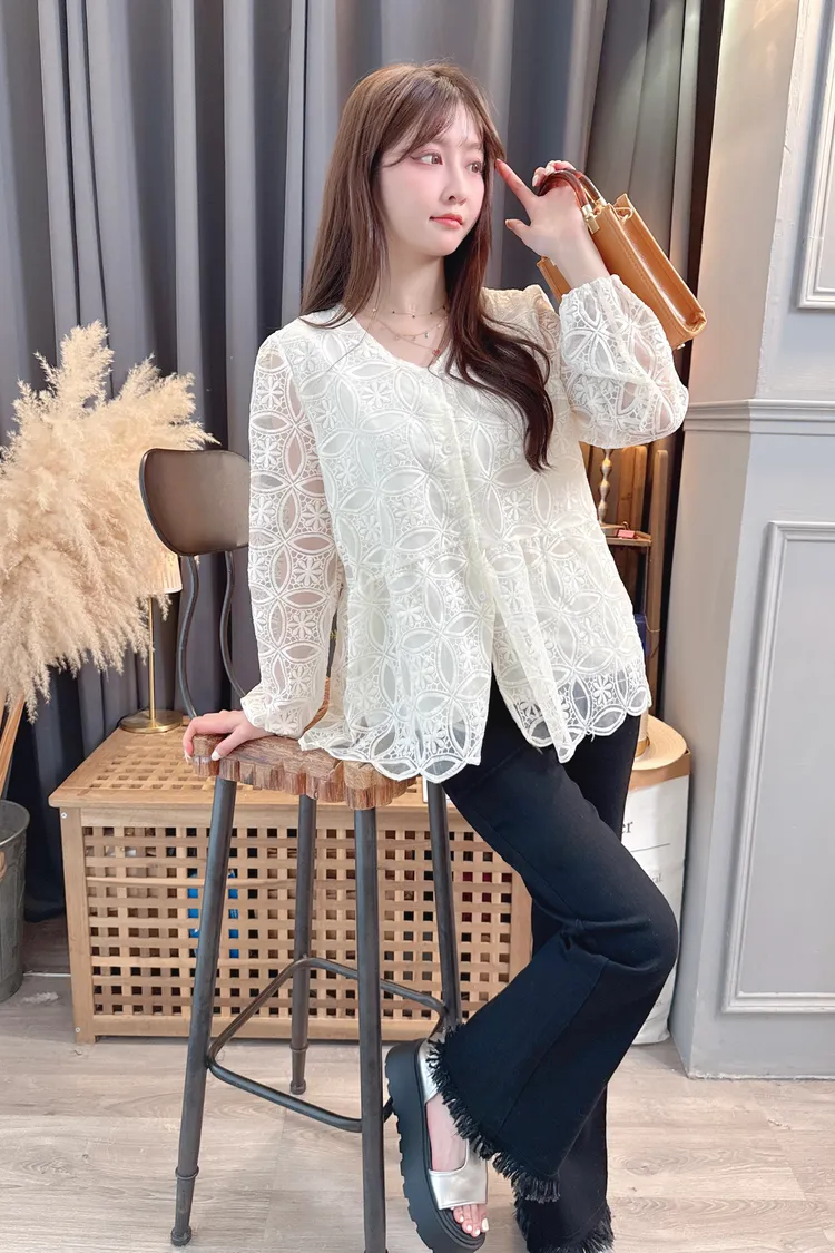挺版圈圈蕾絲長上衣/1色
