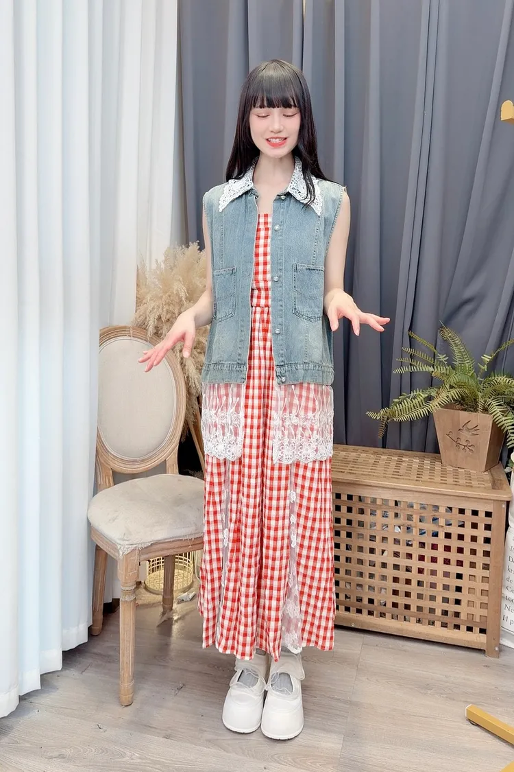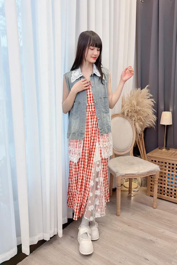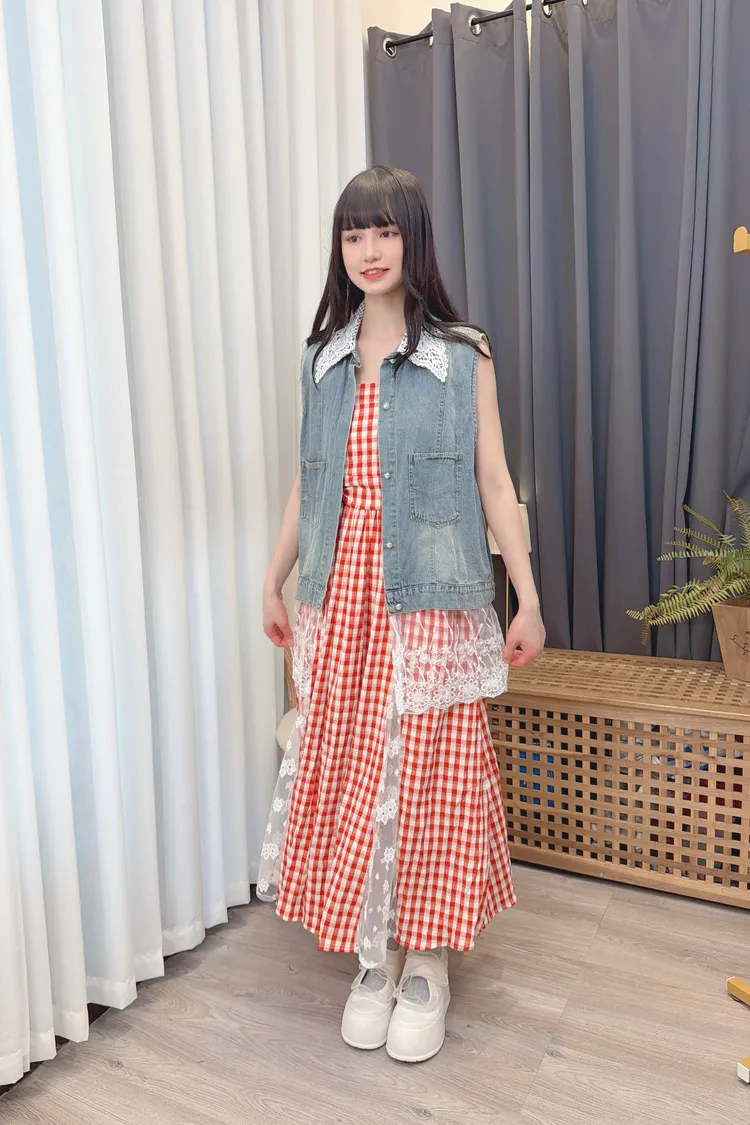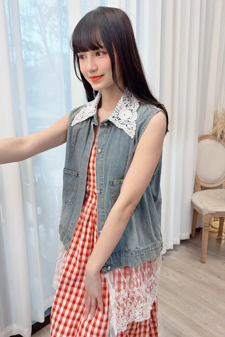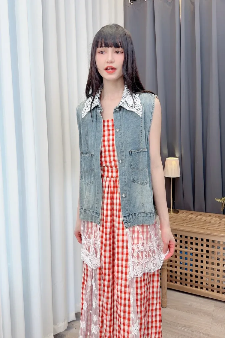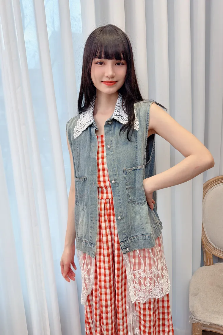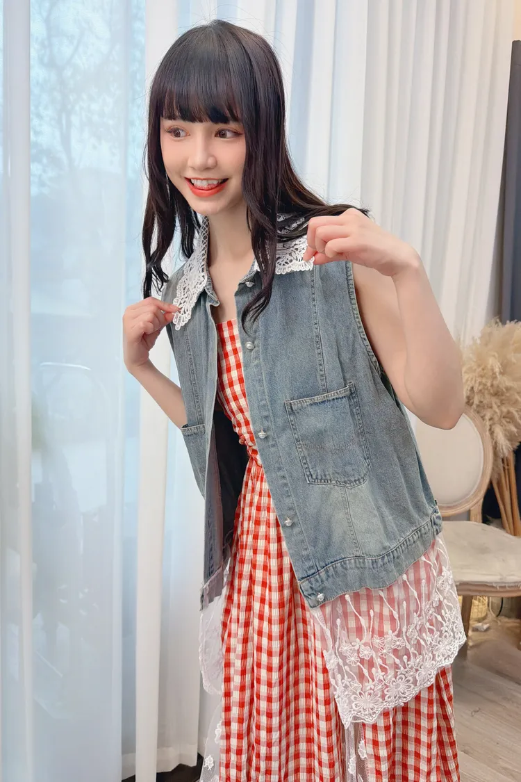 蕾絲拼接牛仔背心/1色