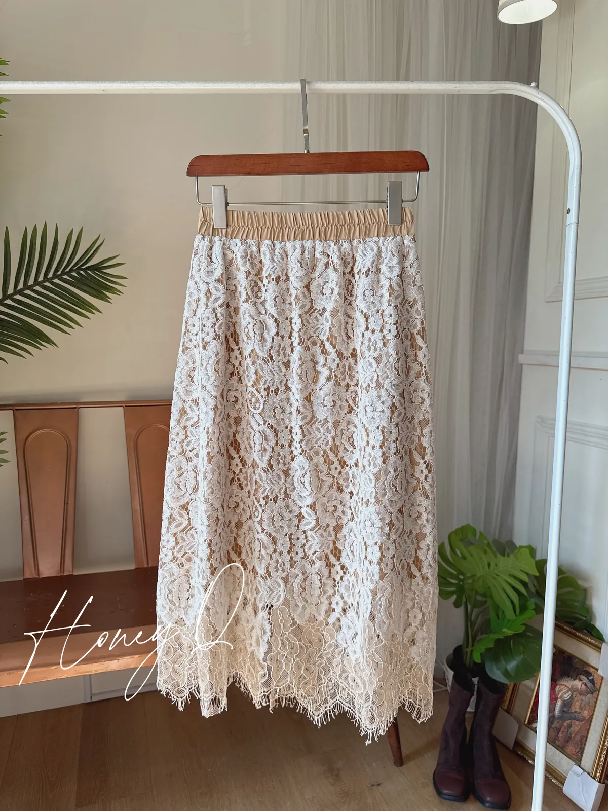 溫柔鬆緊腰蕾絲裙/1色