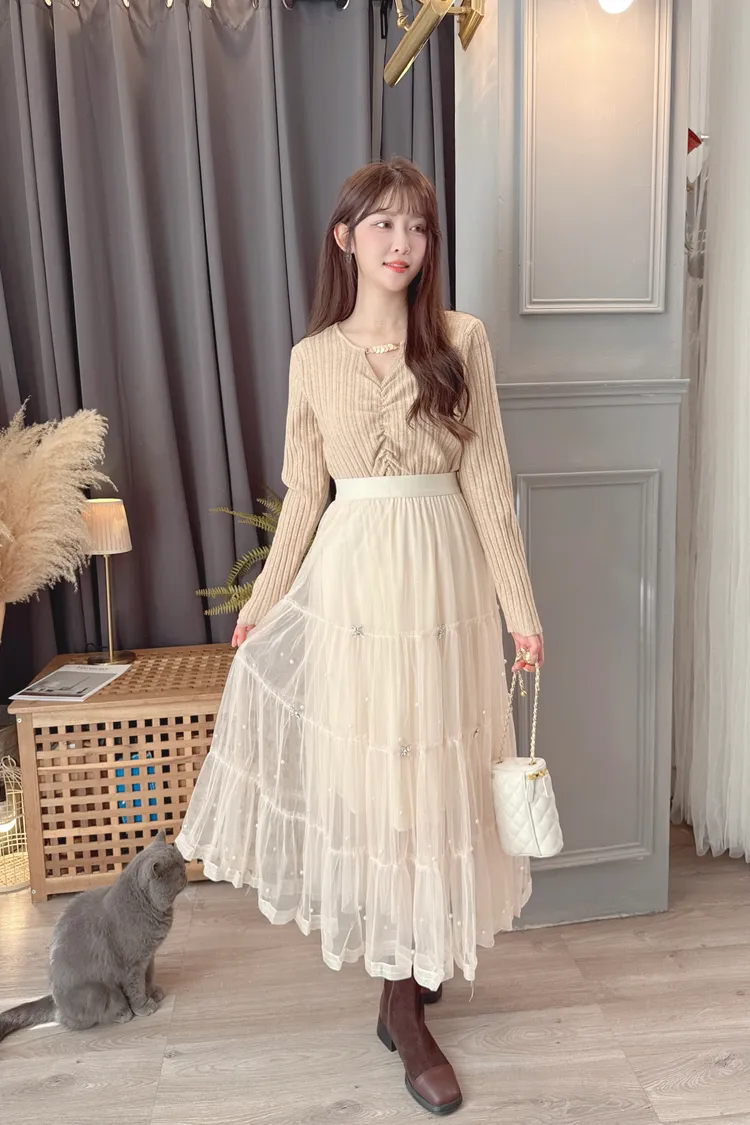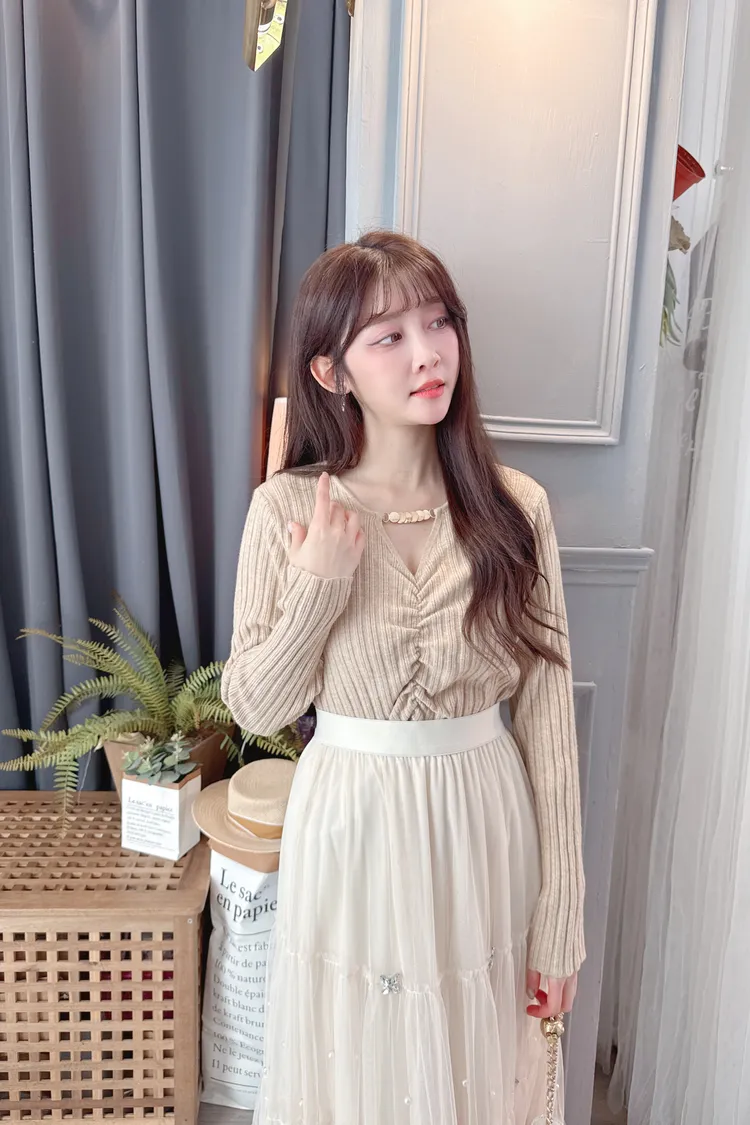 領口五金設計螺紋上衣/2色