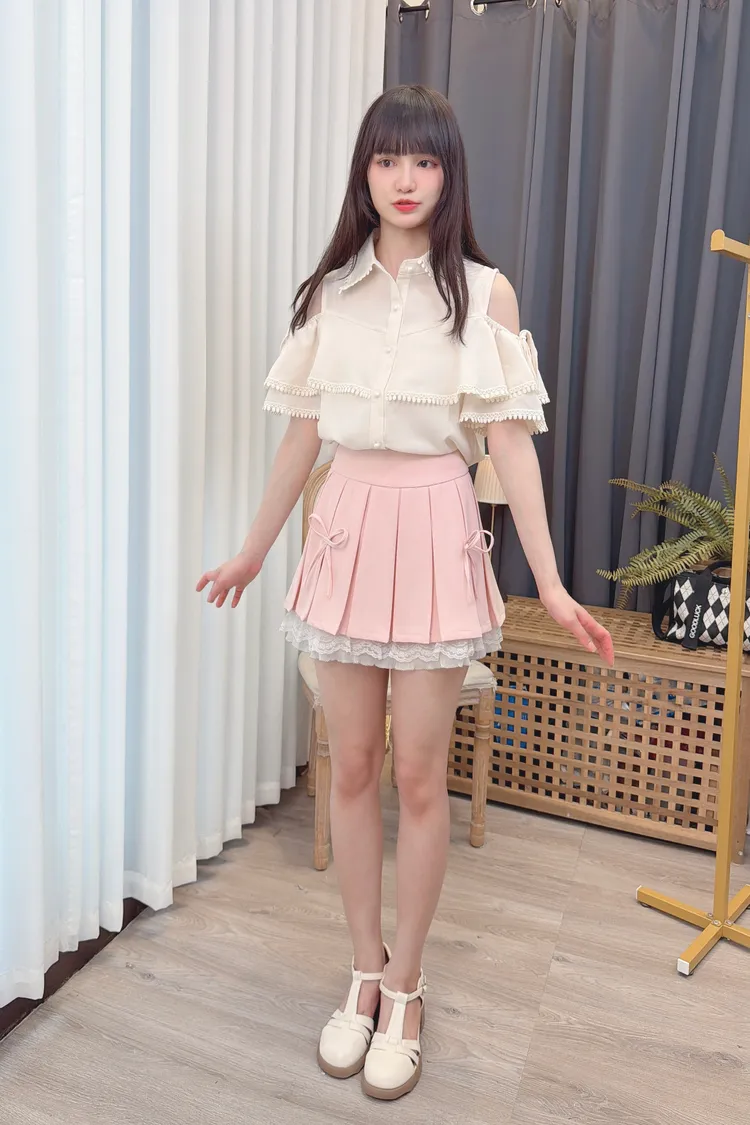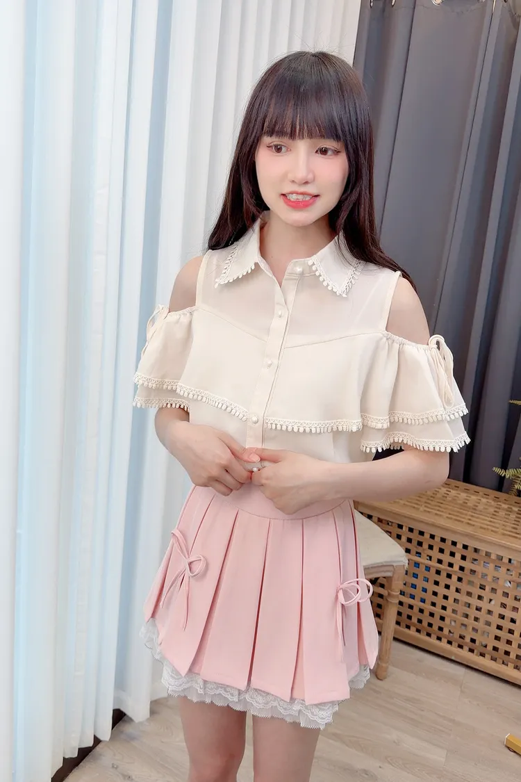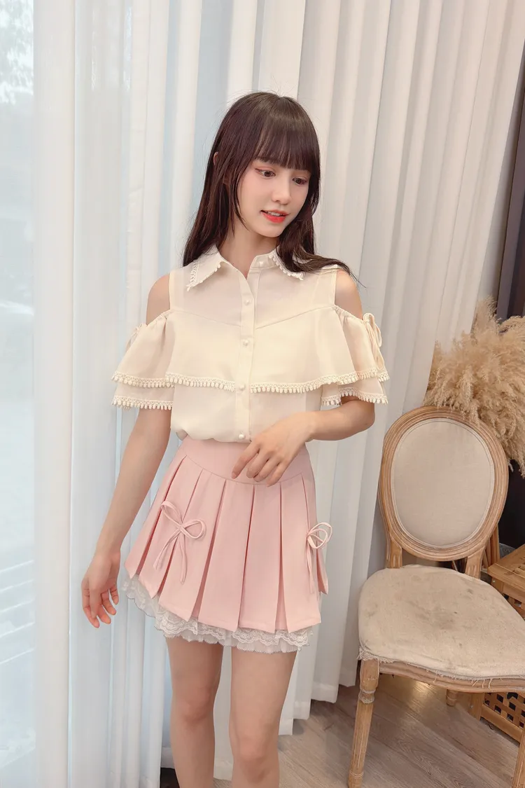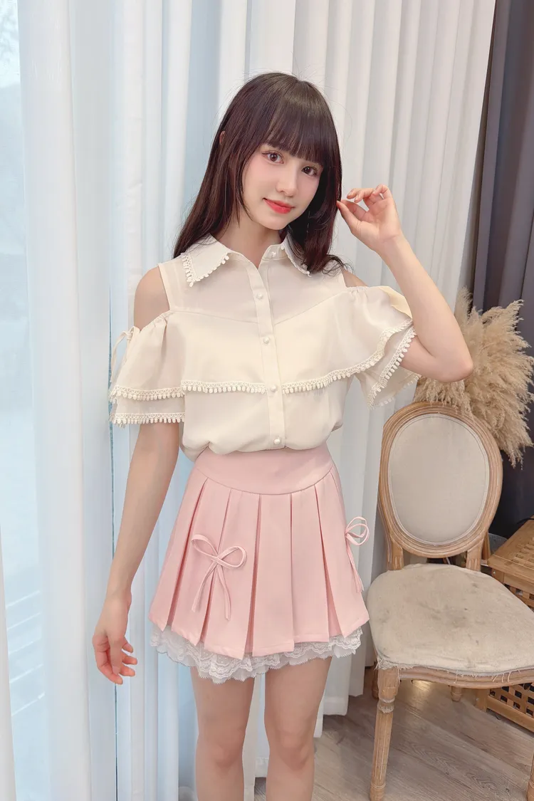 荷葉露肩雪紡上衣/1色