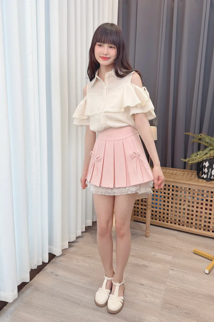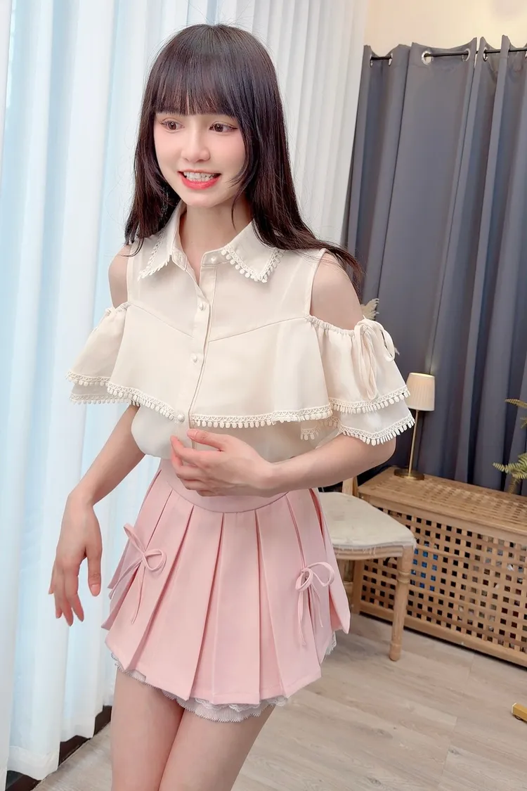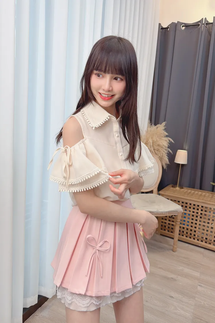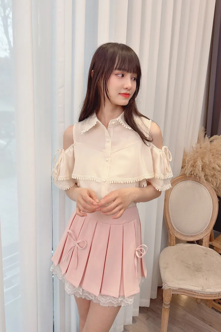 荷葉露肩雪紡上衣/1色