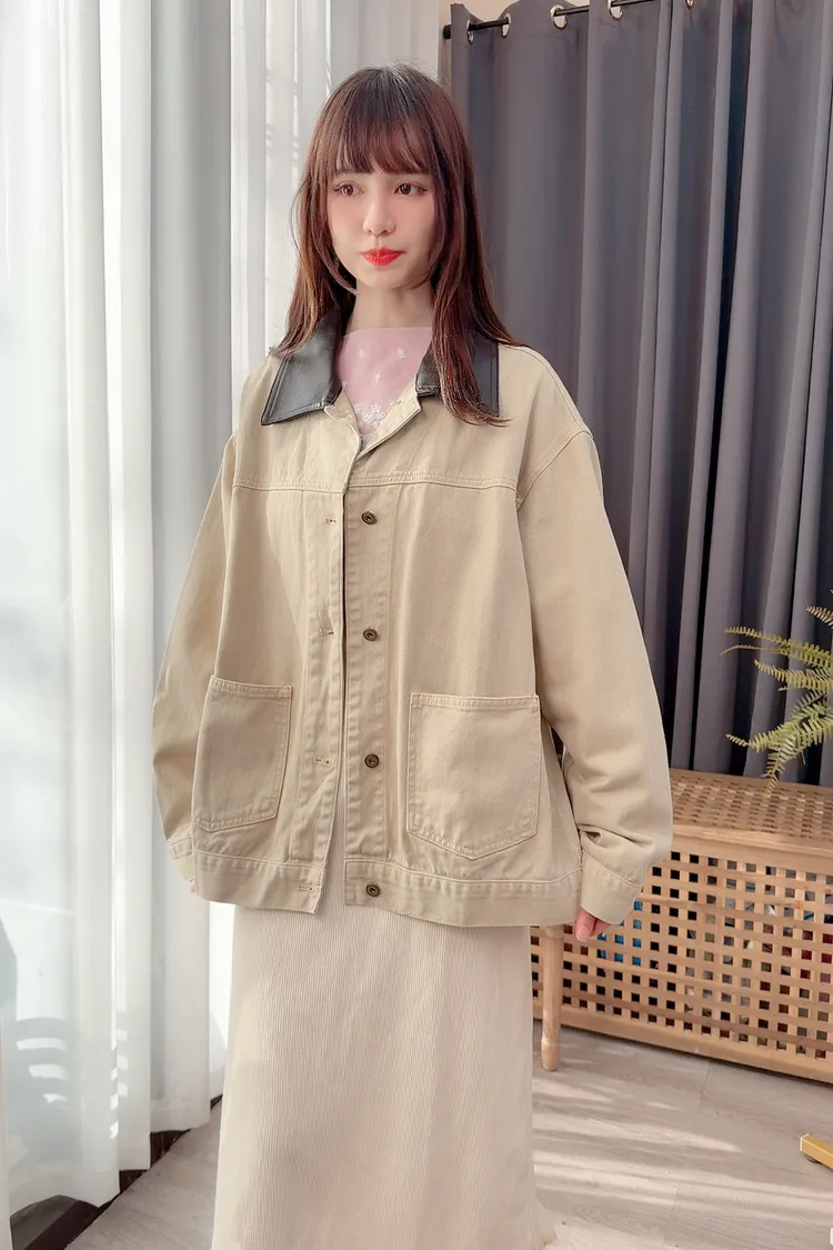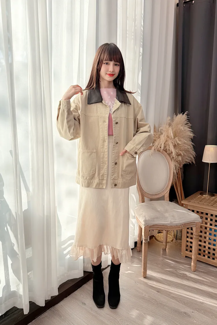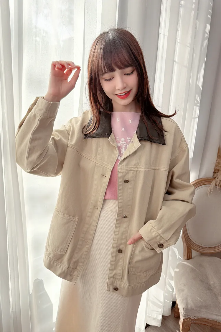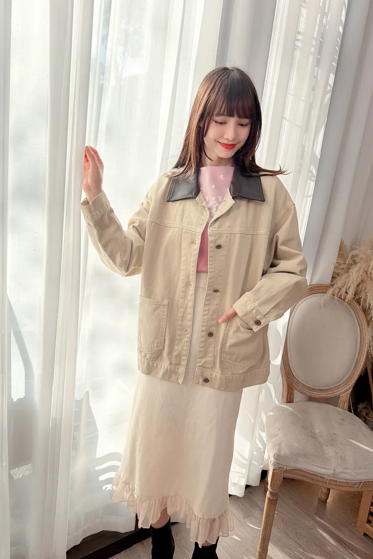 領配色牛仔外套/1色