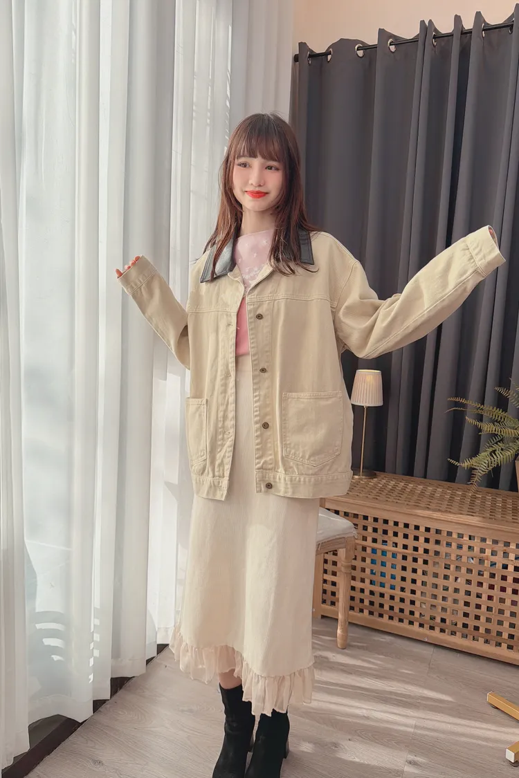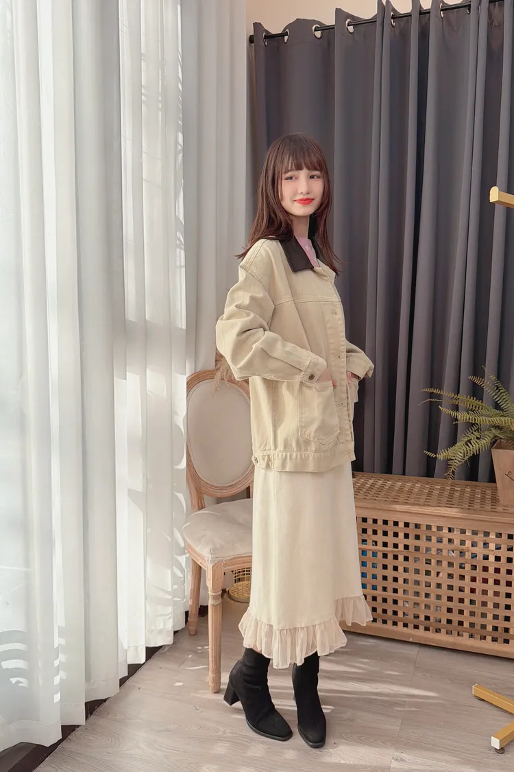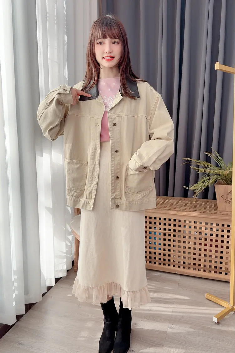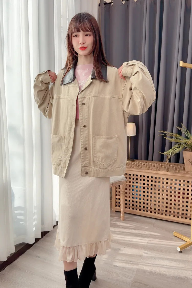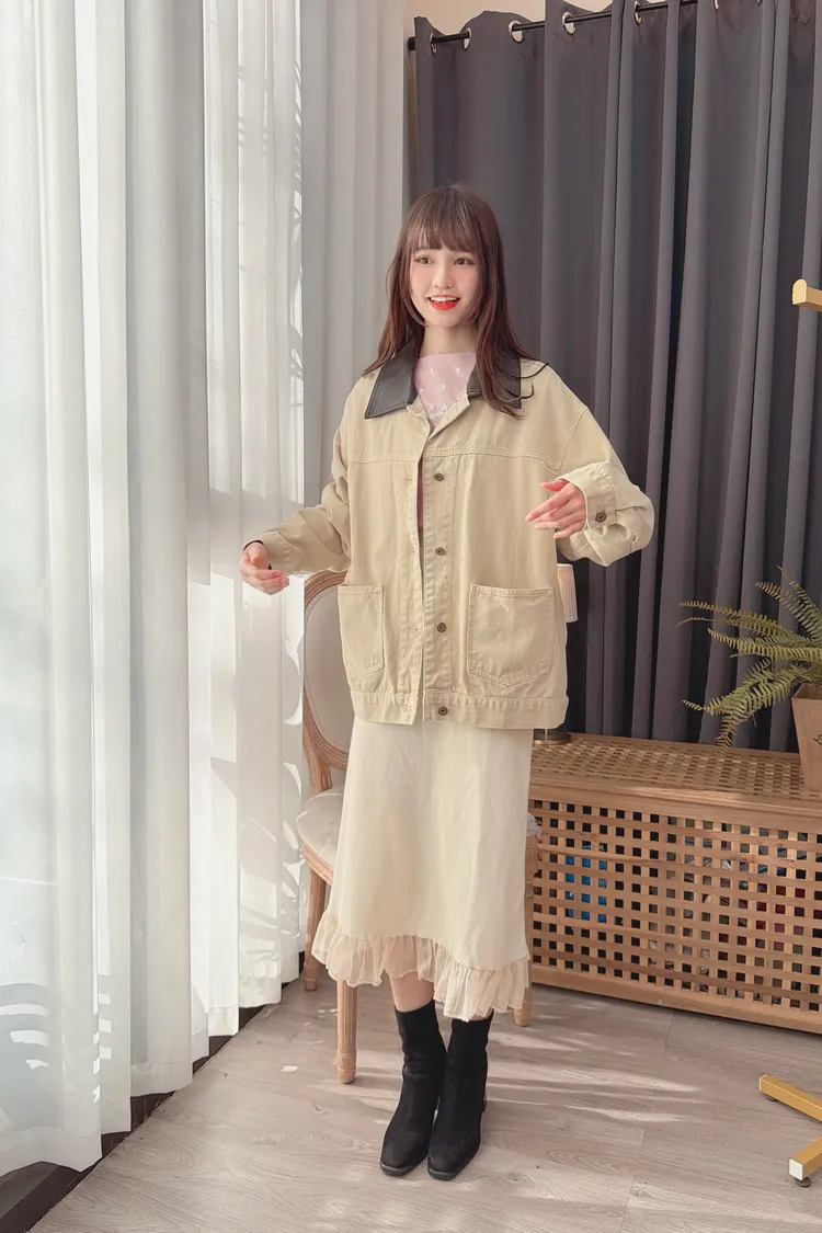 領配色牛仔外套/1色