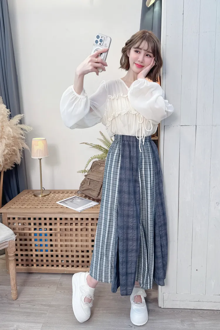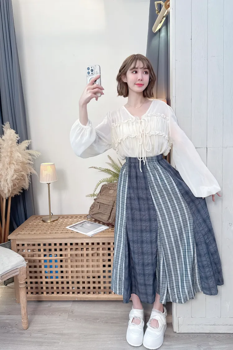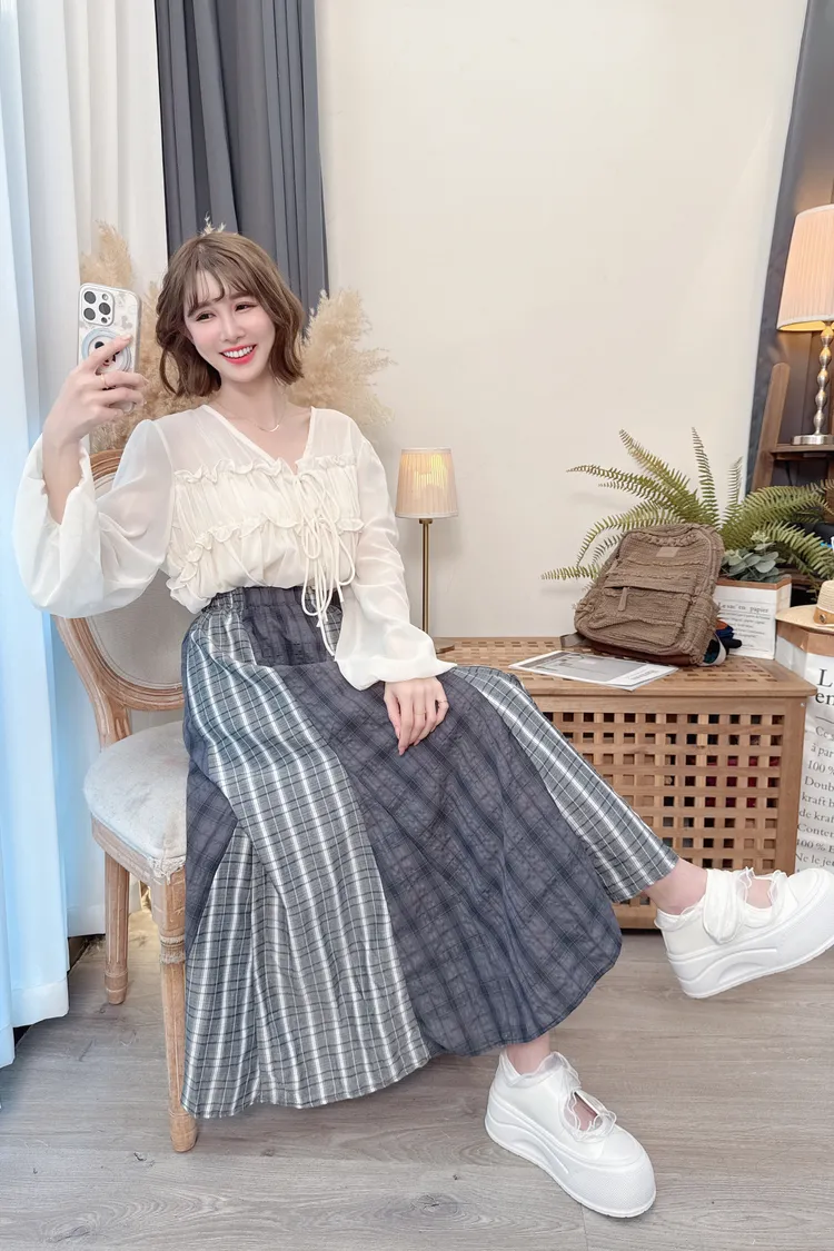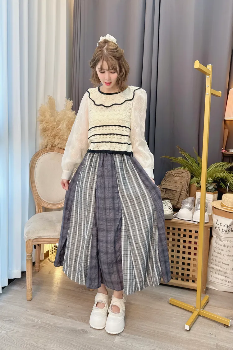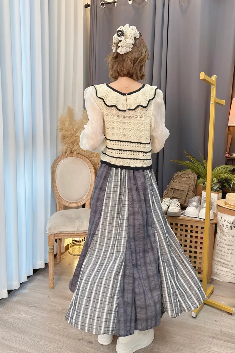 不同格紋拼接長裙/1色