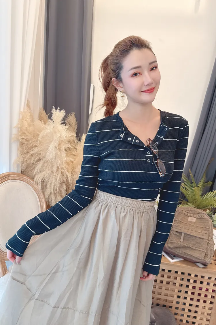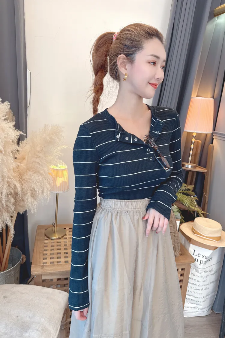 條紋開釦上衣/3色