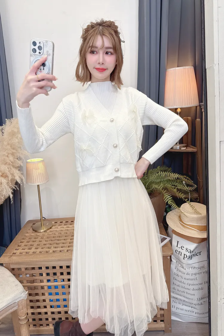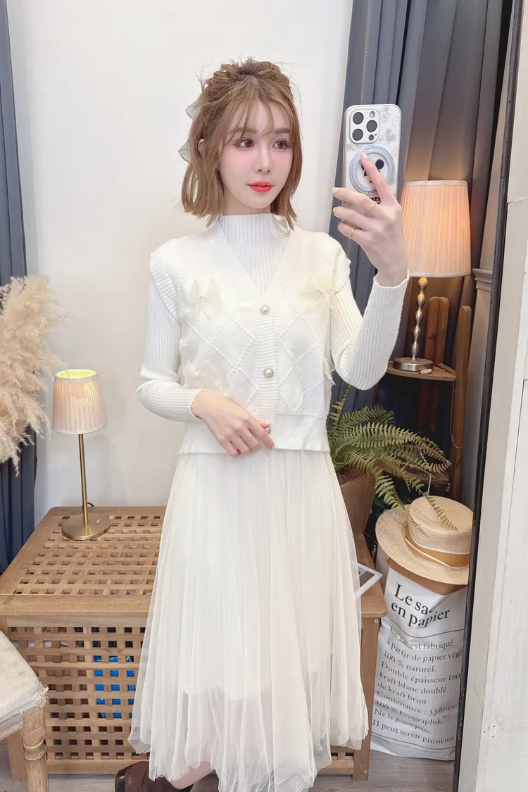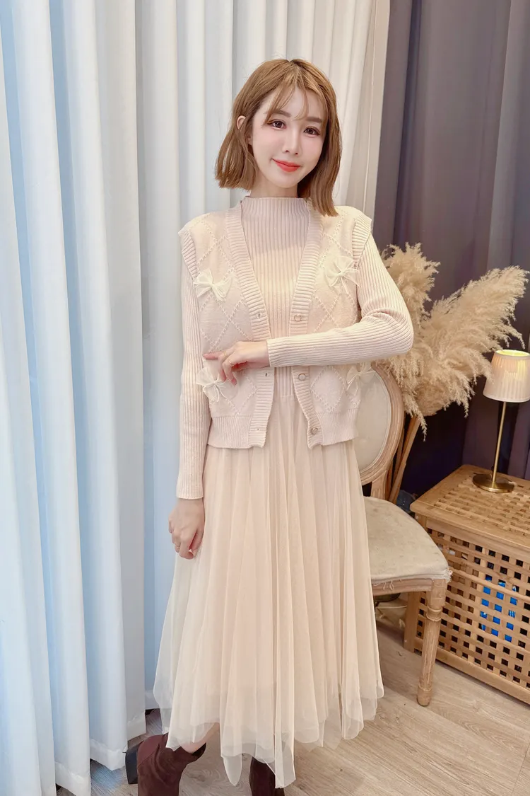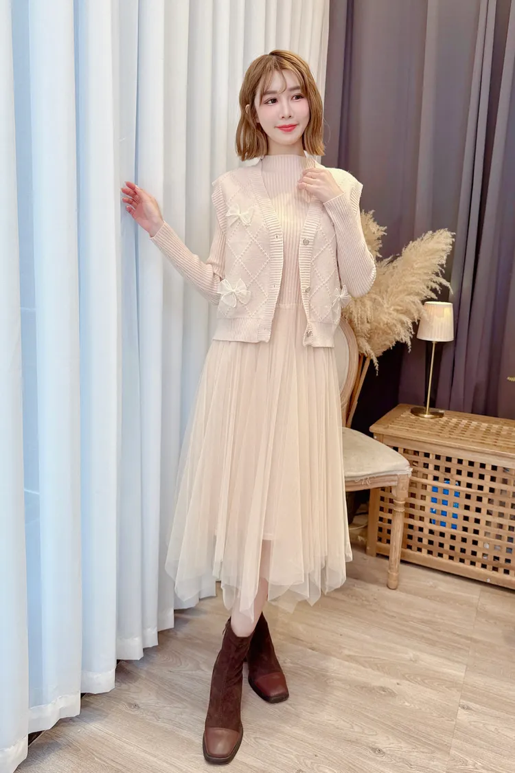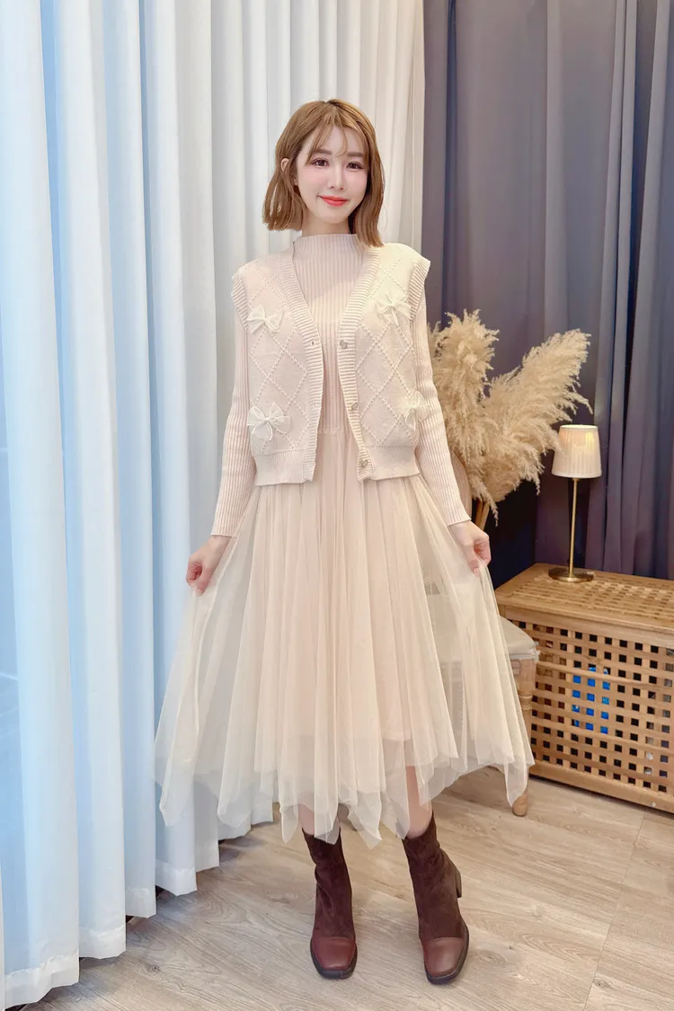 蝴蝶結背心洋裝套組/2色