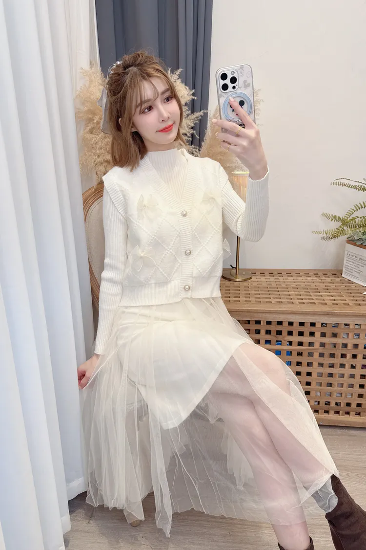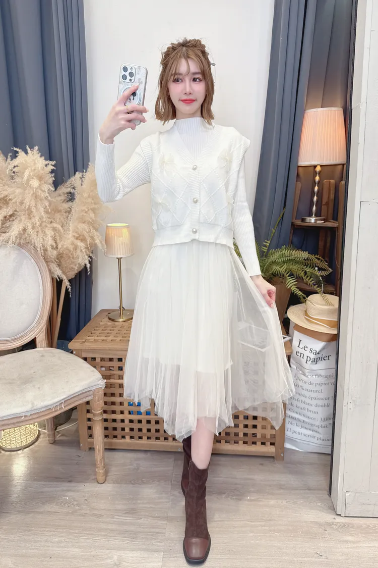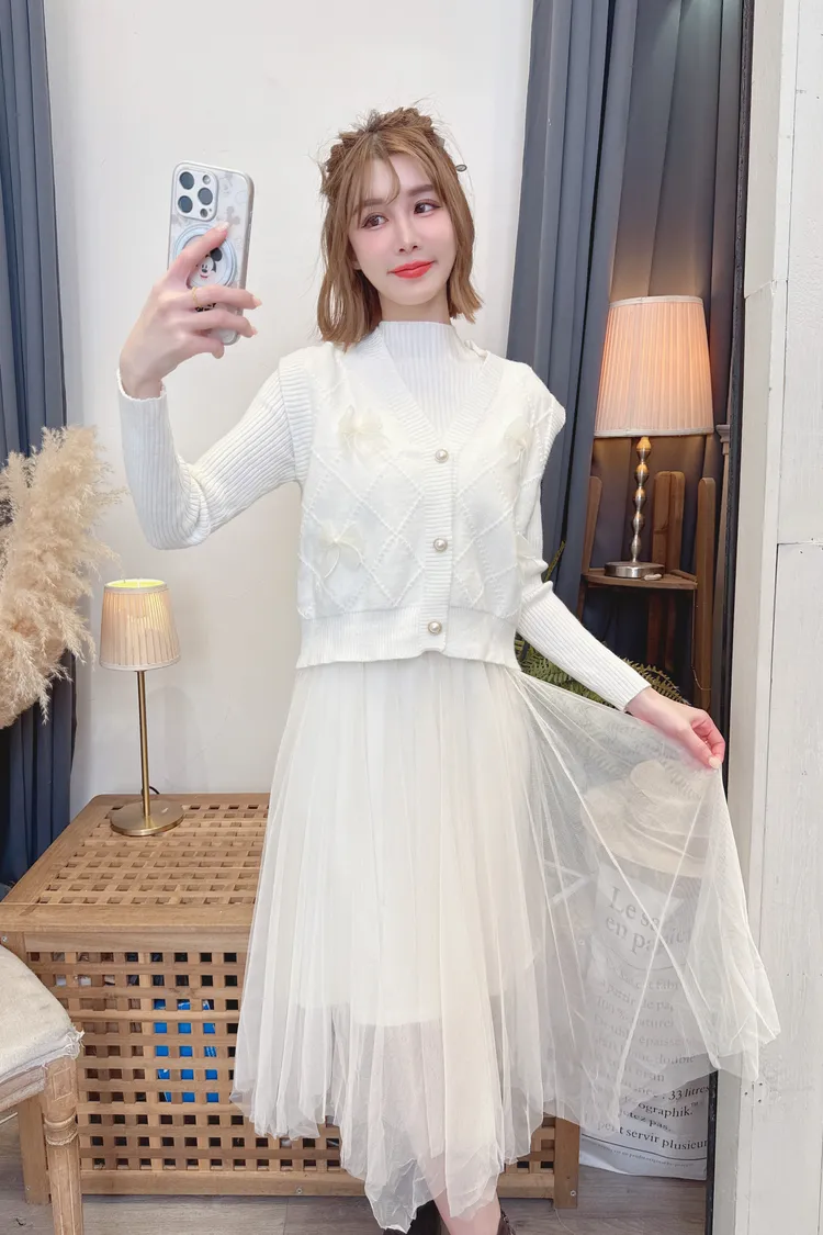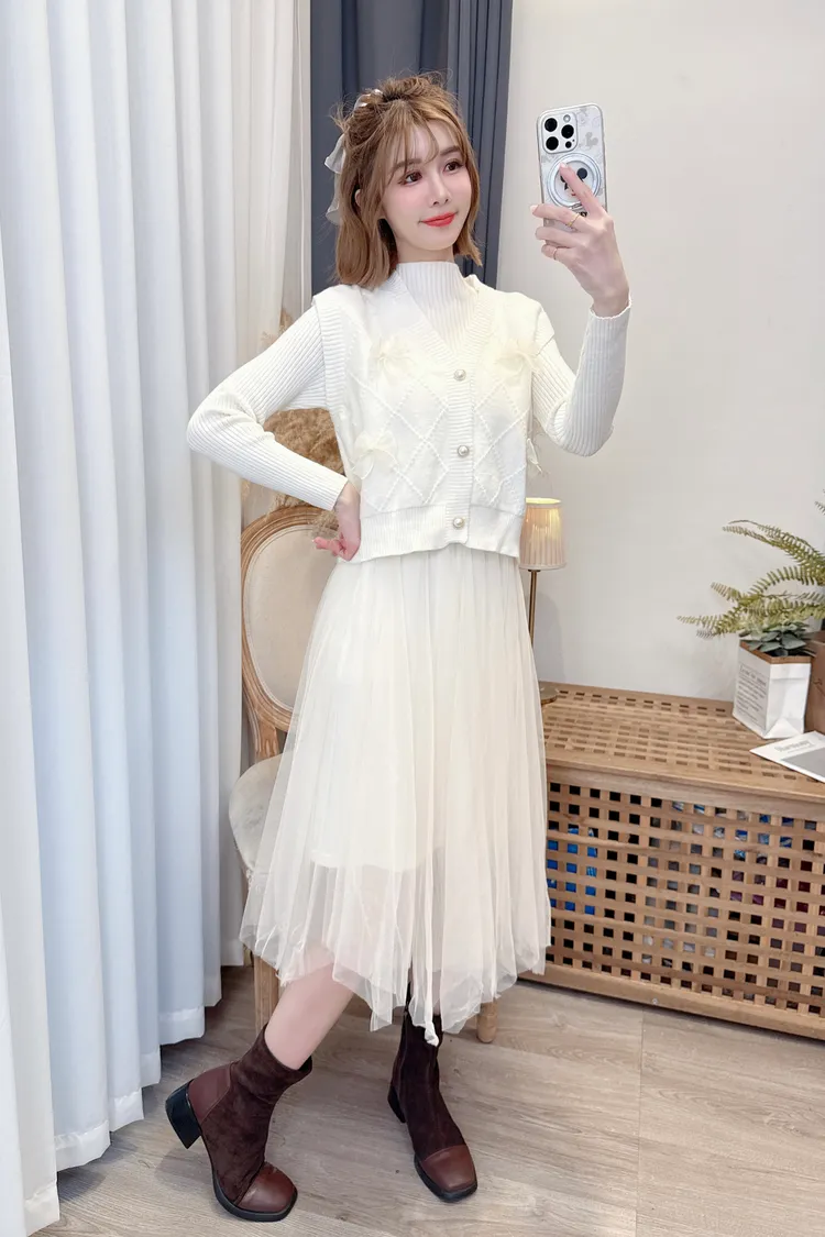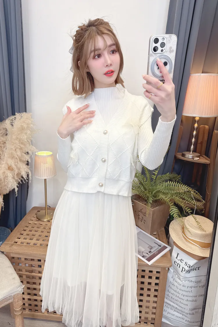 蝴蝶結背心洋裝套組/2色