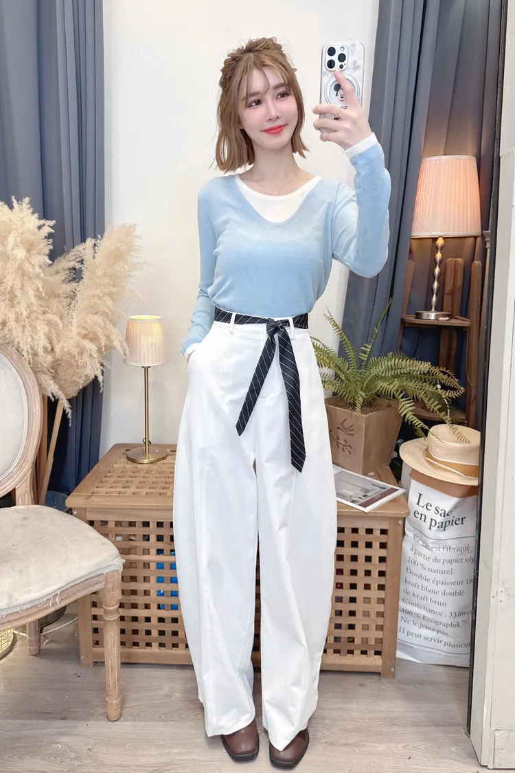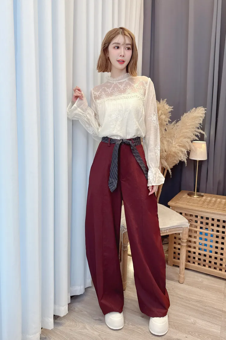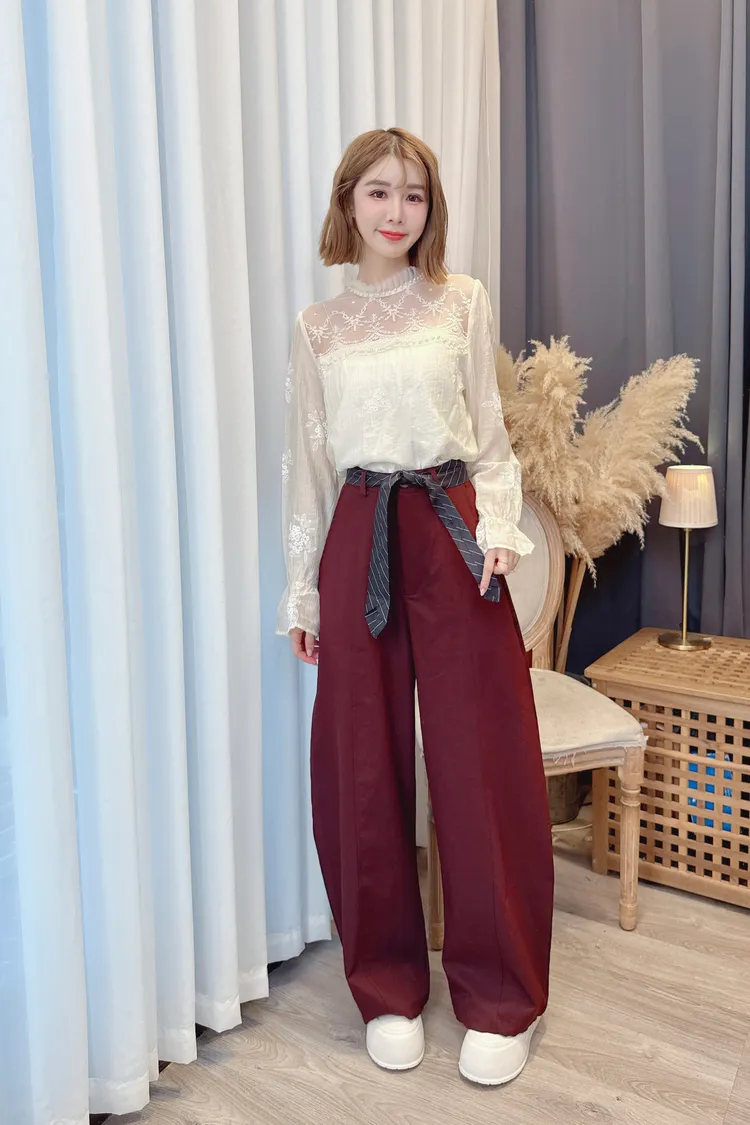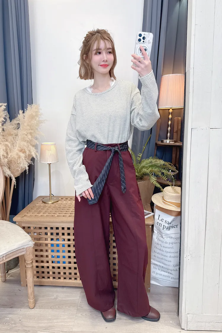 時髦附腰帶寬褲/2色