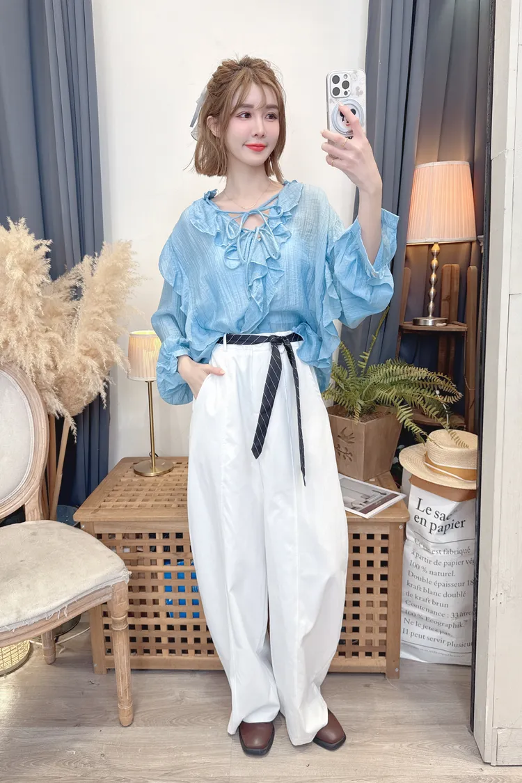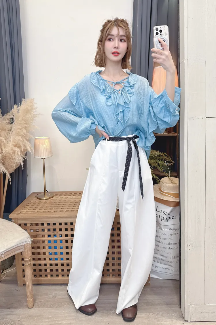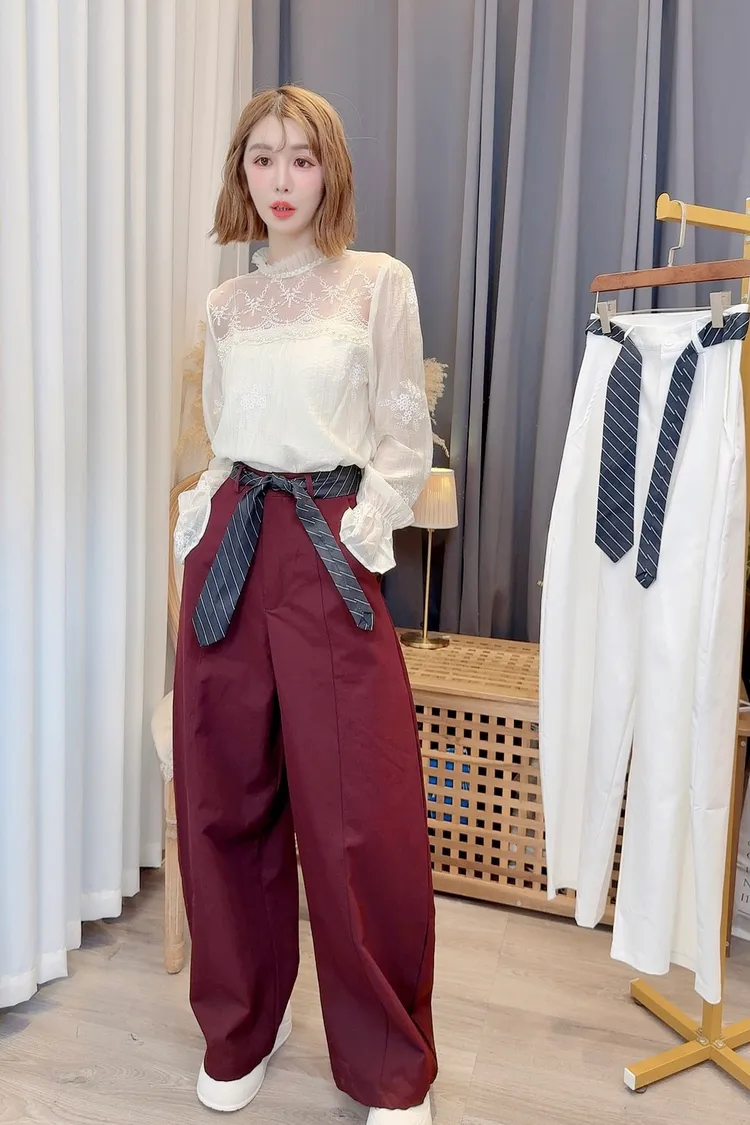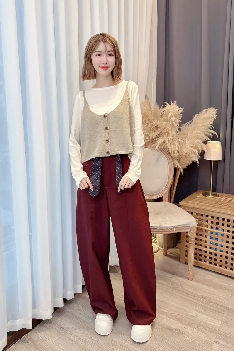 時髦附腰帶寬褲/2色