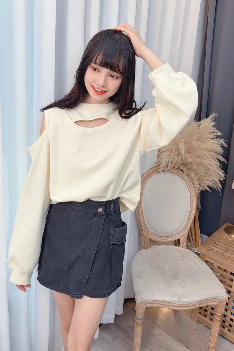 挖洞造型露肩上衣/2色