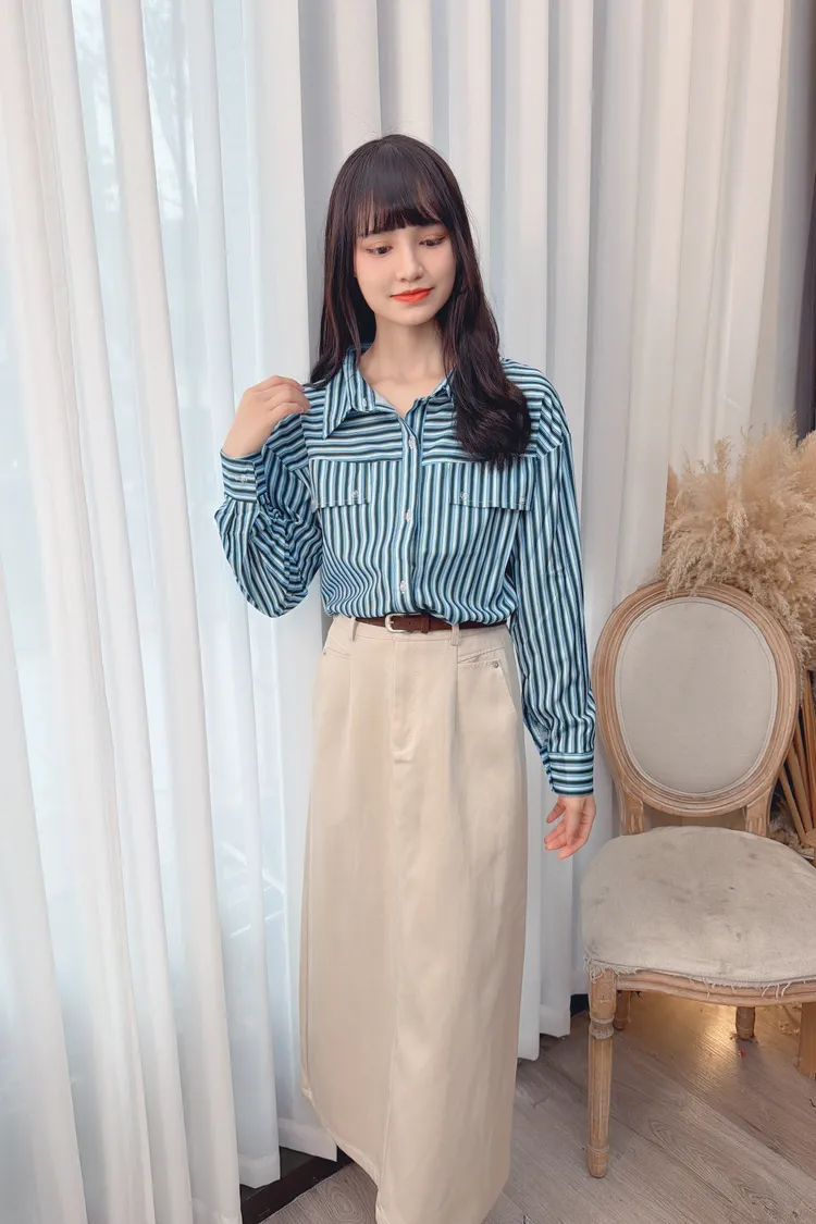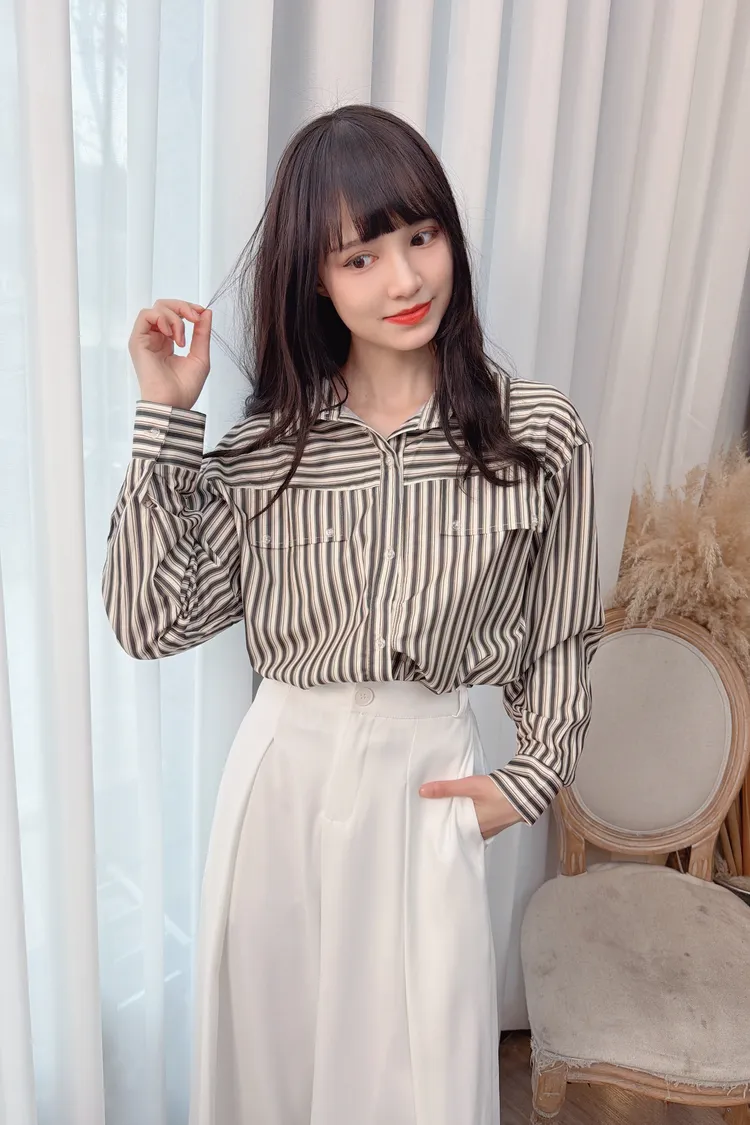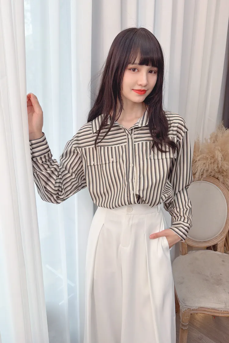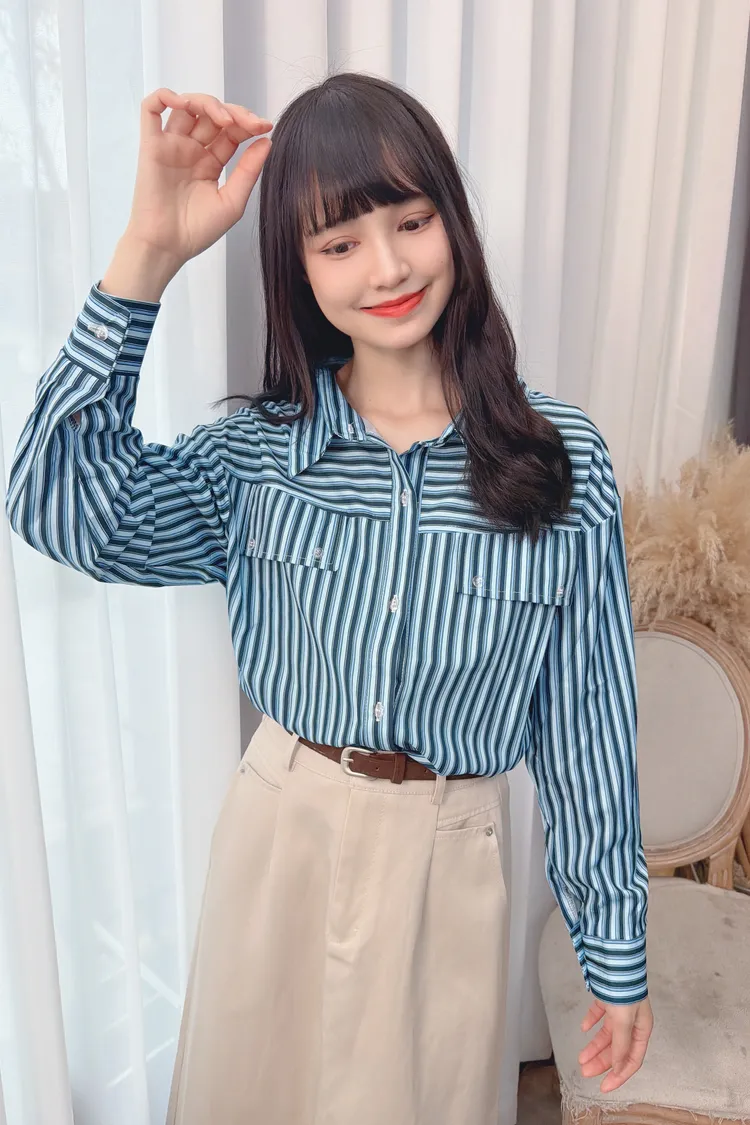 直條下擺縮口上衣/2色