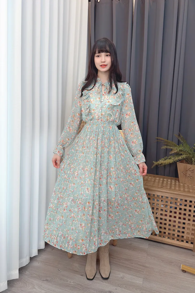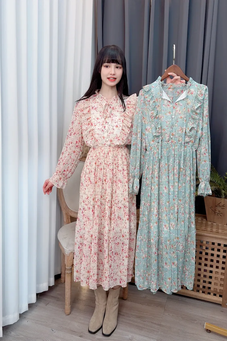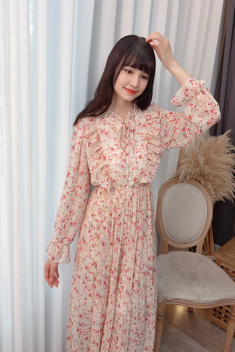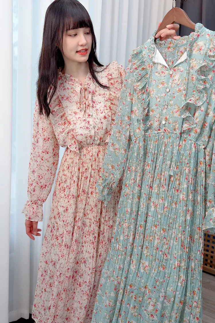 碎花荷葉雪紡長洋/2色