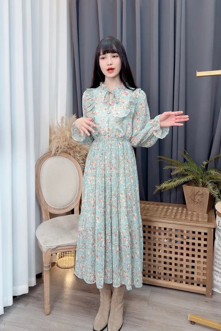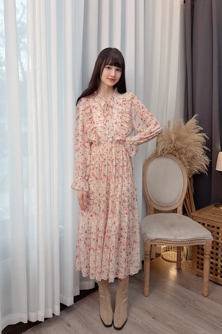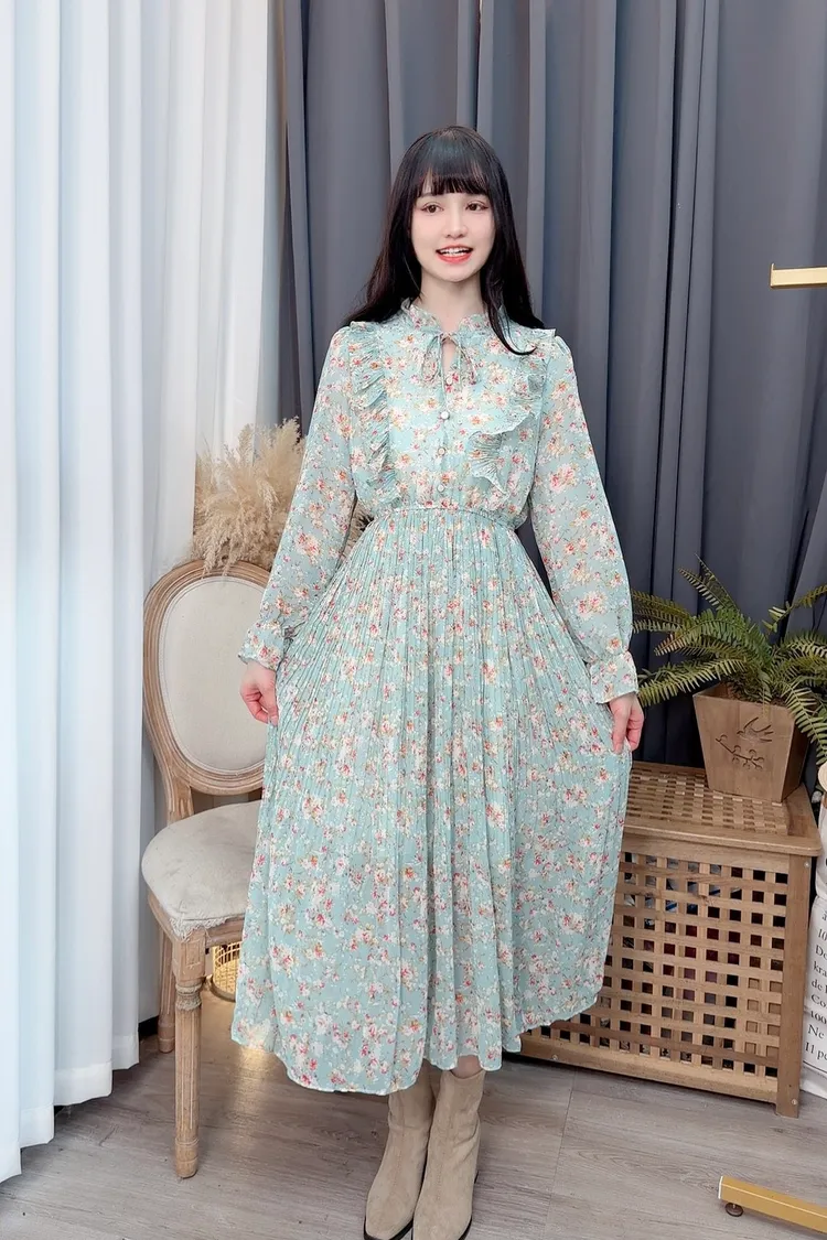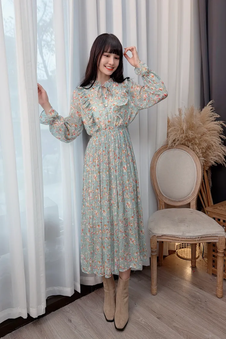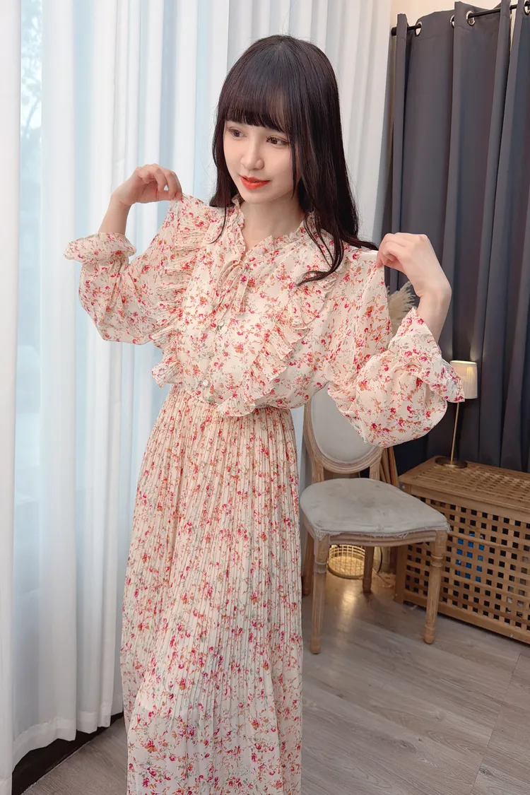 碎花荷葉雪紡長洋/2色